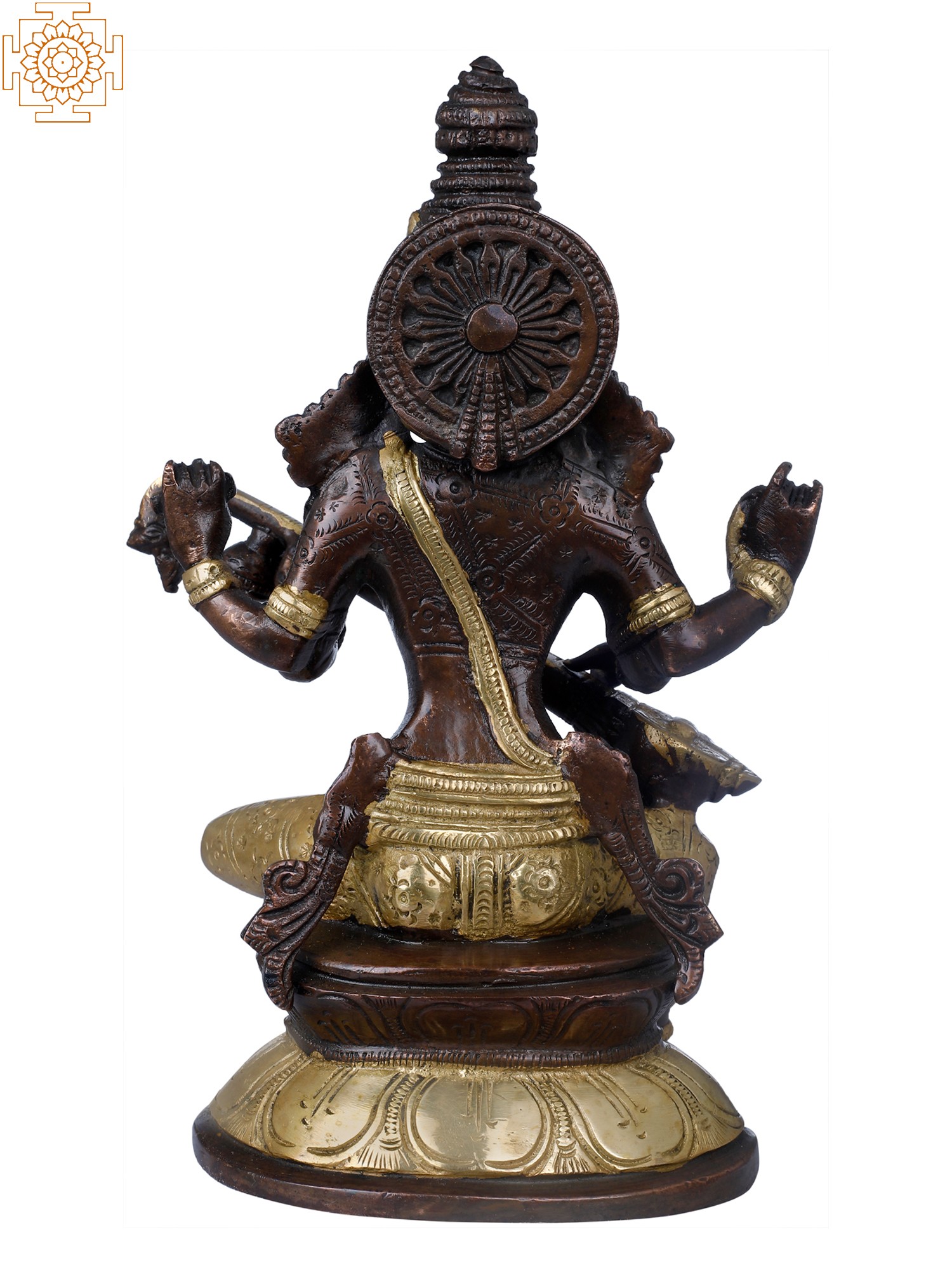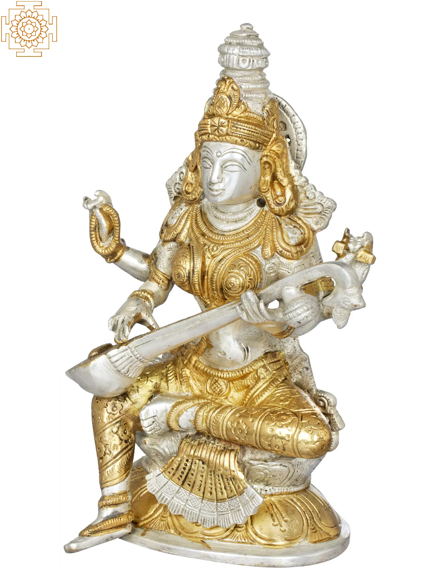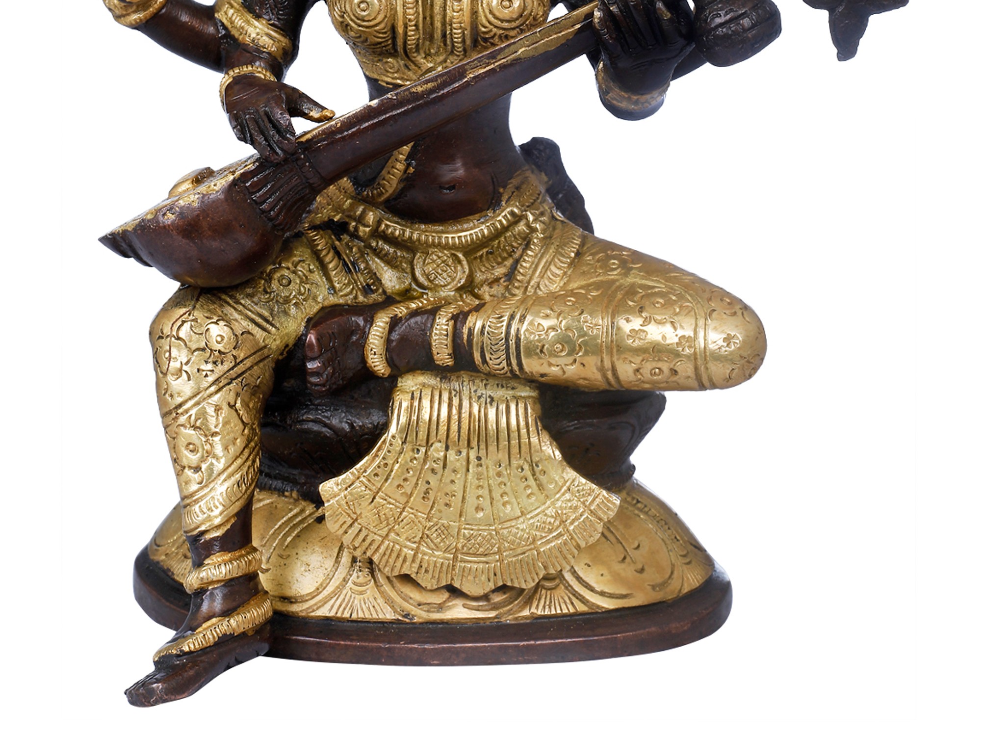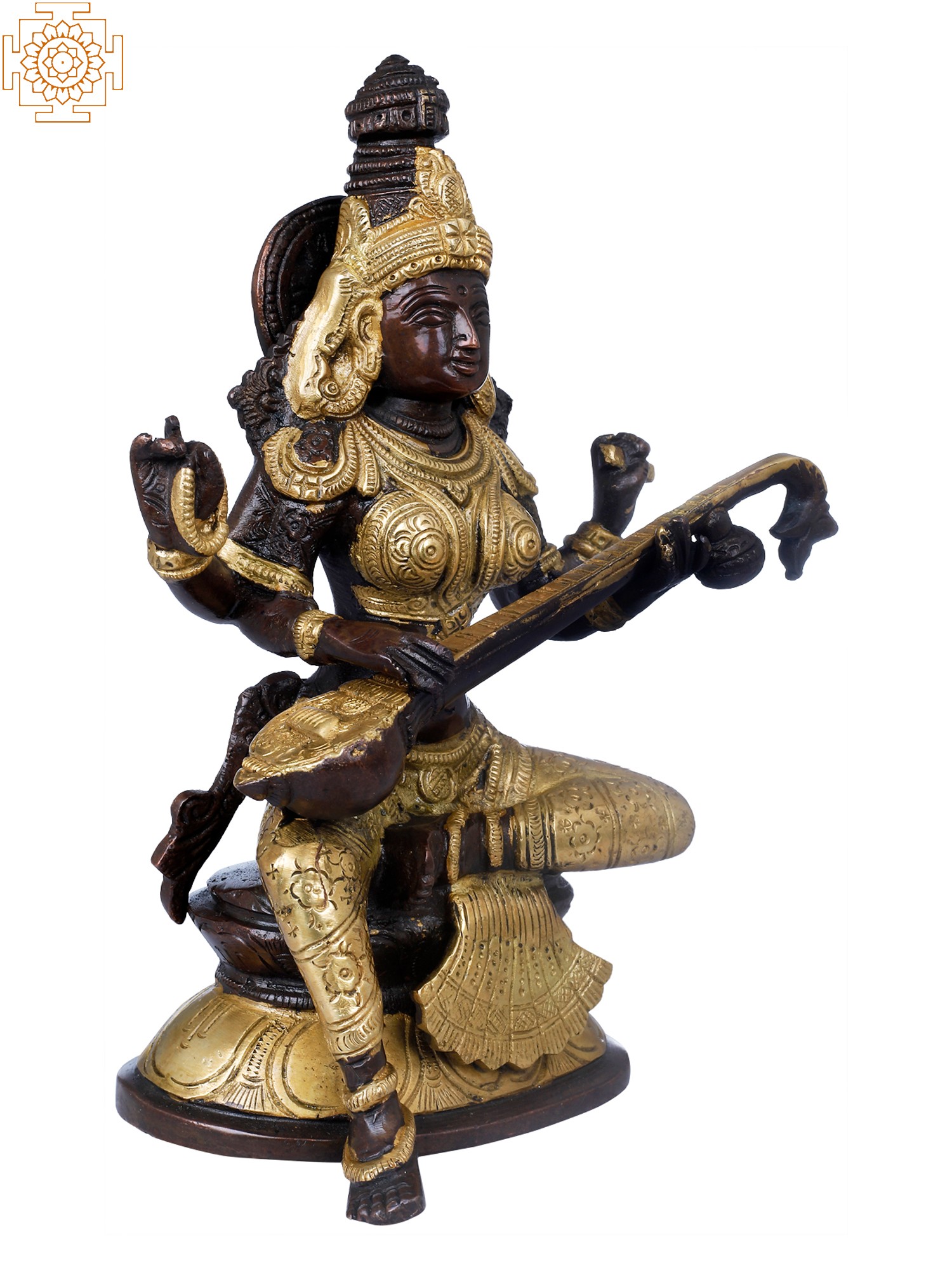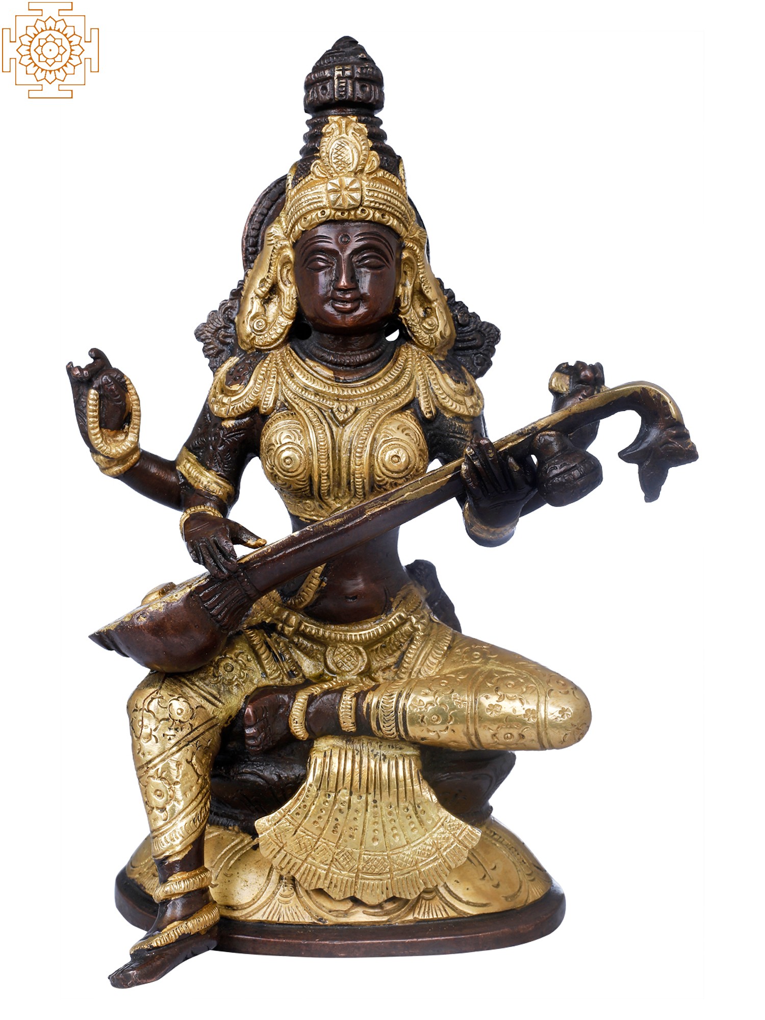 8" Brass Goddess Saraswati Idol Seated on Lotus | Handmade | Made in India