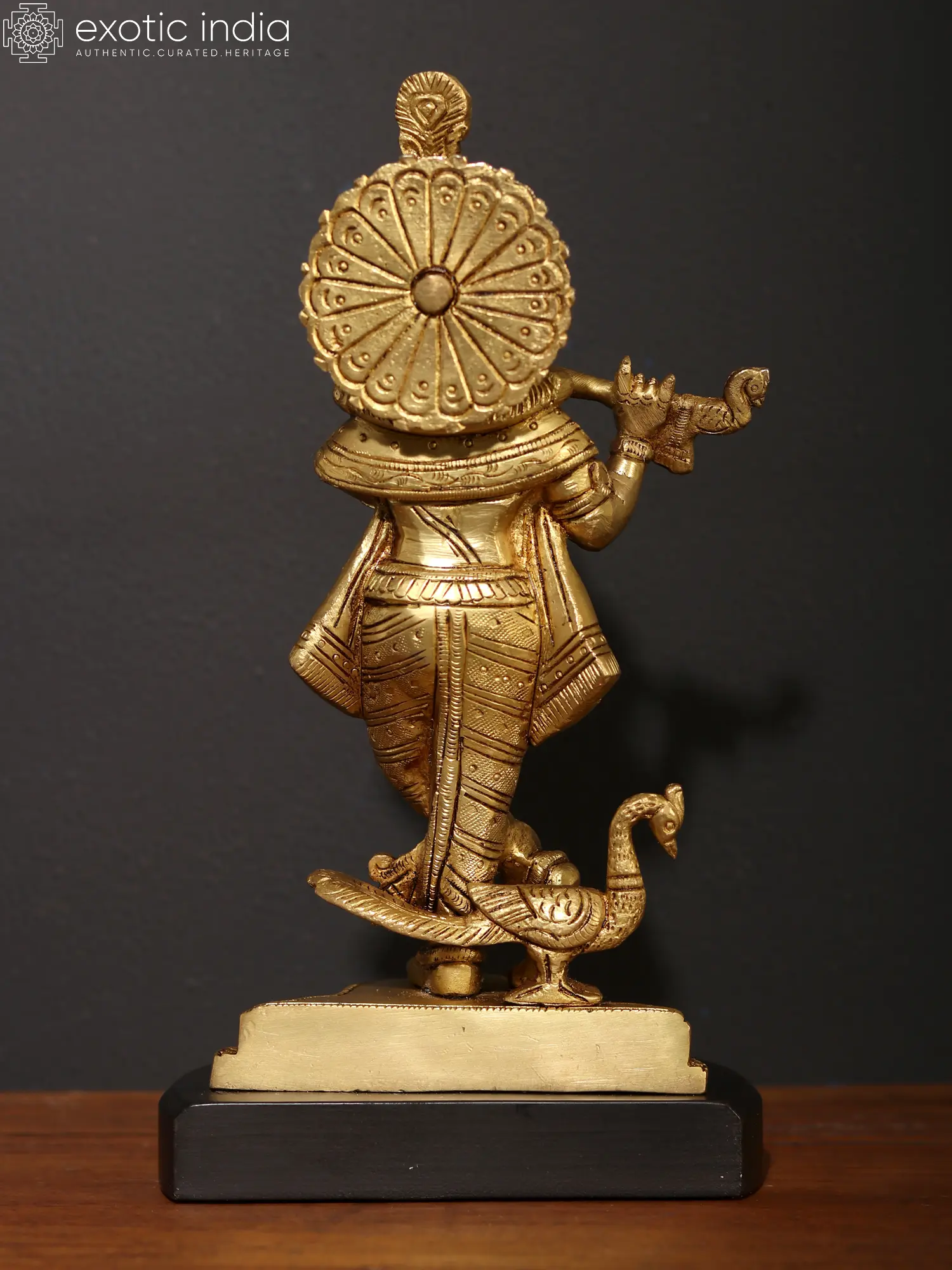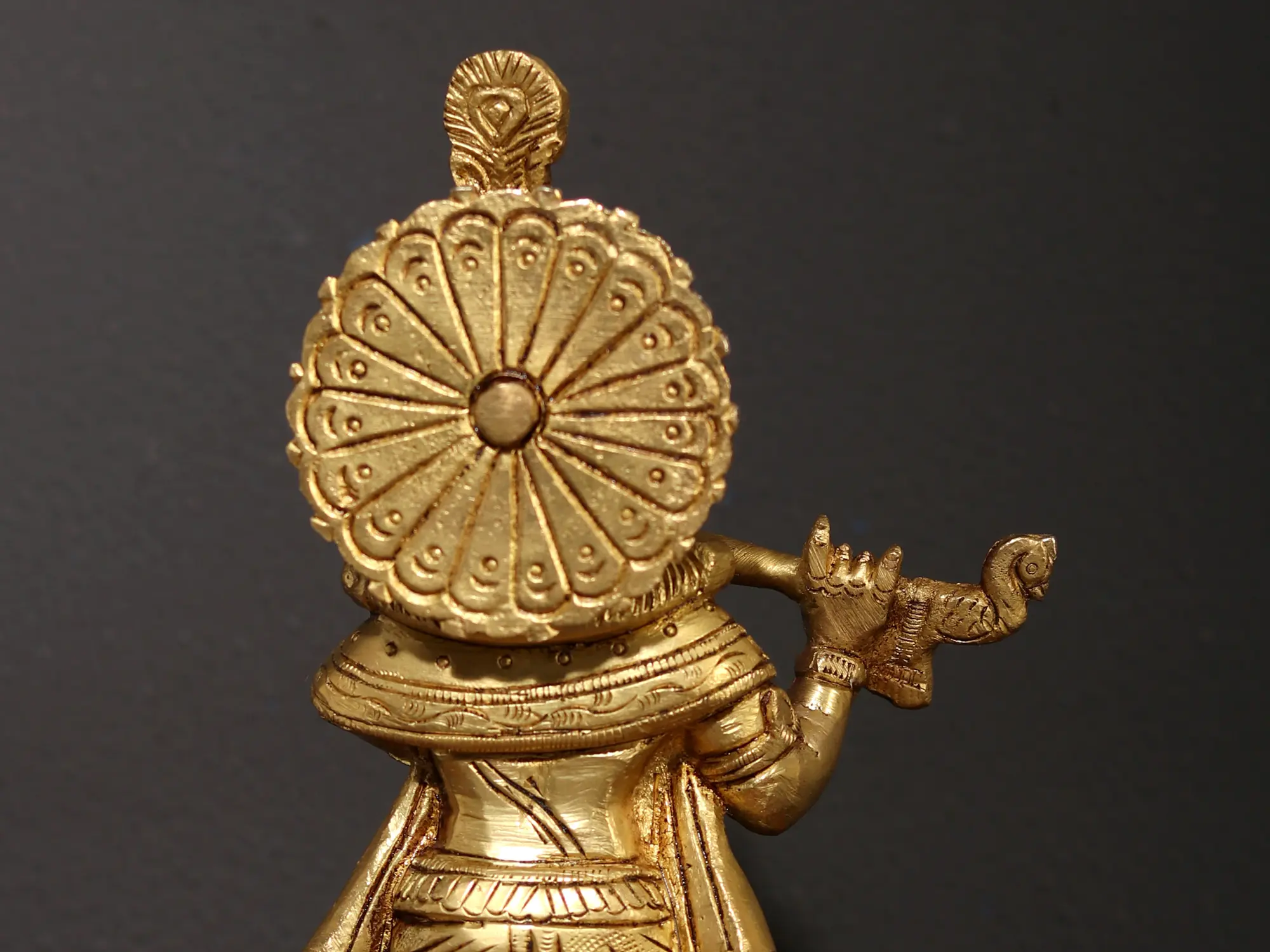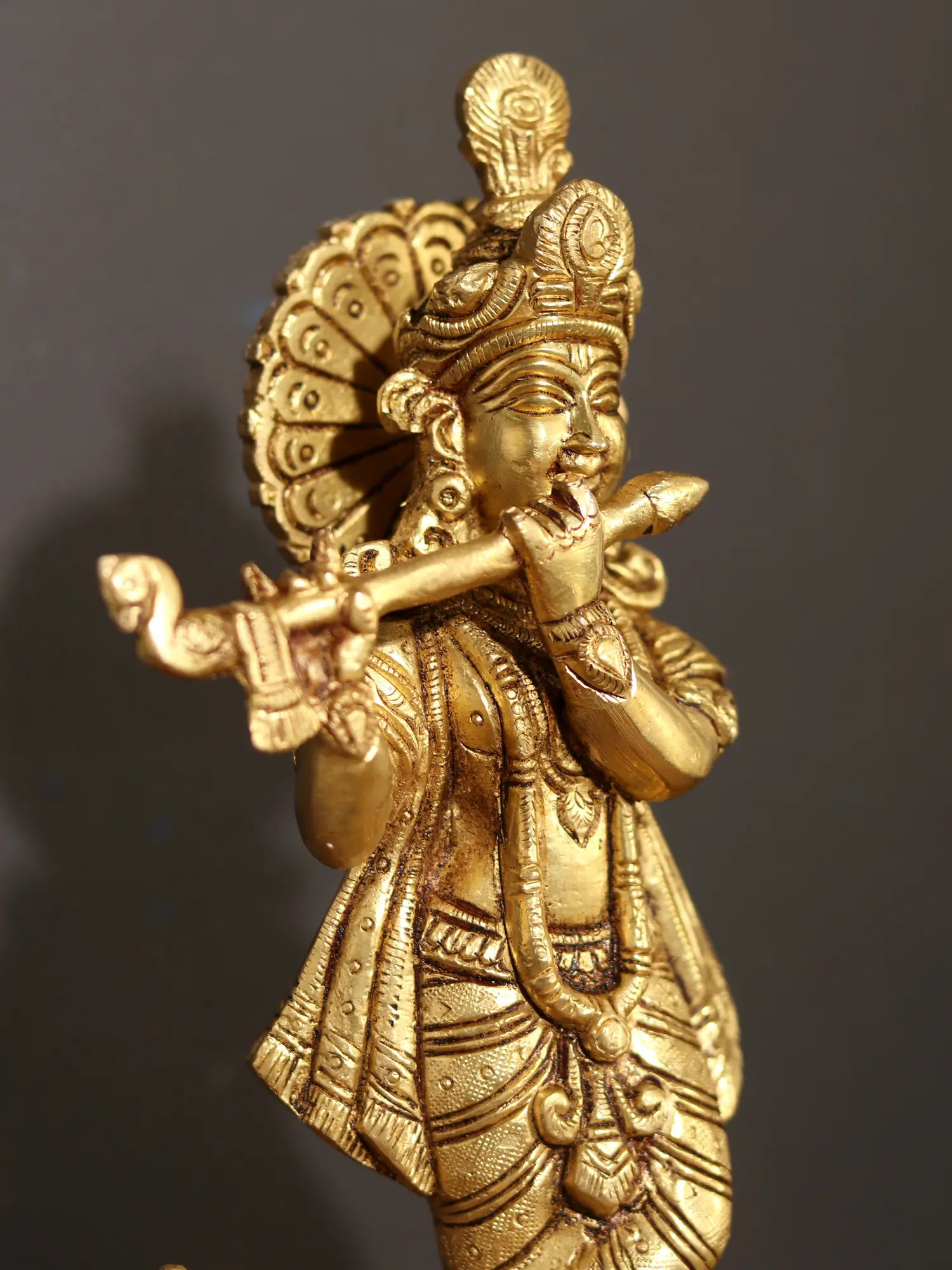 Superfine Standing Lord Krishna Brass Statue Playing Flute
