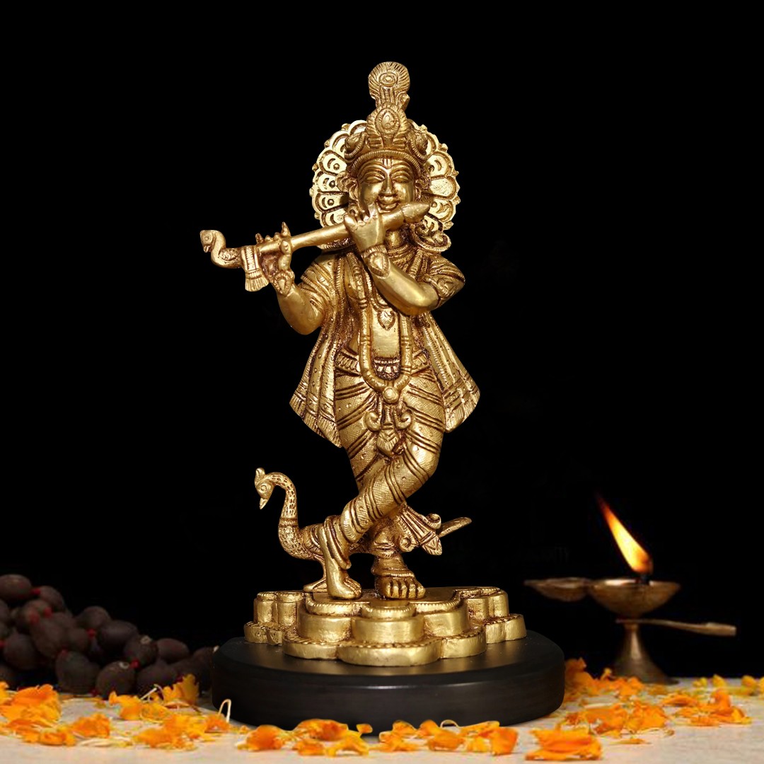 16" Murli Krishna Brass Statue | Handmade | Made in India