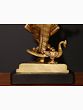 This exquisite 8-inch brass statue captures the essence of Lord Krishna, the beloved Hindu deity, in a moment of serene musical devotion. Depicted playing his enchanting flute, Krishna stands gracefully on a meticulously crafted wood base, accompanied by a peacock – symbols of his divine charm and connection to nature. The intricate detailing of his attire, the delicate curves of the flute, and the lifelike portrayal of the peacock are testaments to the artistry and skill involved in creating this stunning piece. This statue is not merely a decorative item; it's a powerful representation of faith, beauty, and the captivating tales of Krishna's life.