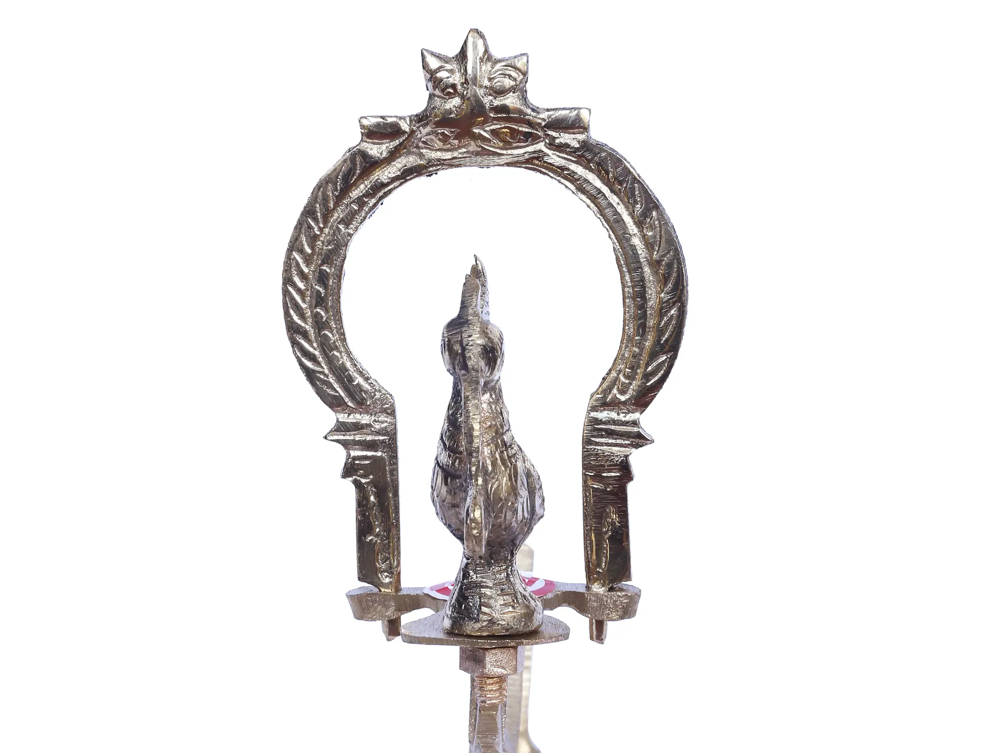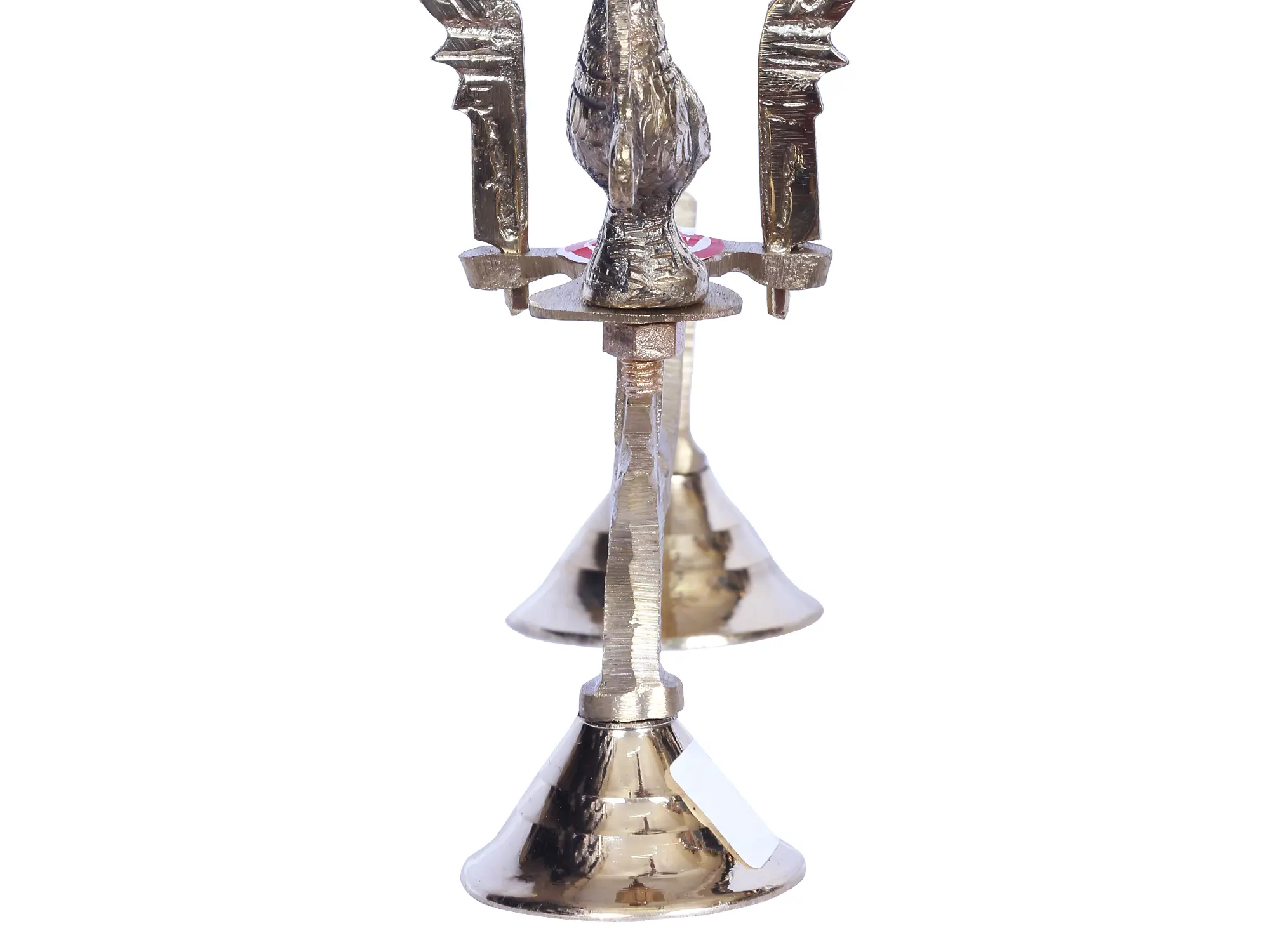 This brass lamp is an essential component of the sixteen-step Shodash Upchar, which includes the Deeparati, in which the lamp is revolved clockwise in front of the deities. It has a one-of-a-kind Kirtimukha arch construction and a religious emblem of a peacock sitting beneath the arch. Behind the arch, there are five holes where cotton wicks soaked in ghee are inserted and the aarti ceremony is performed. The lamp has a stand similar to conventional lights, but no oil basin. These lamps are thought to be utilized for Shodasha Upchara Shiva Puja Vidhi.