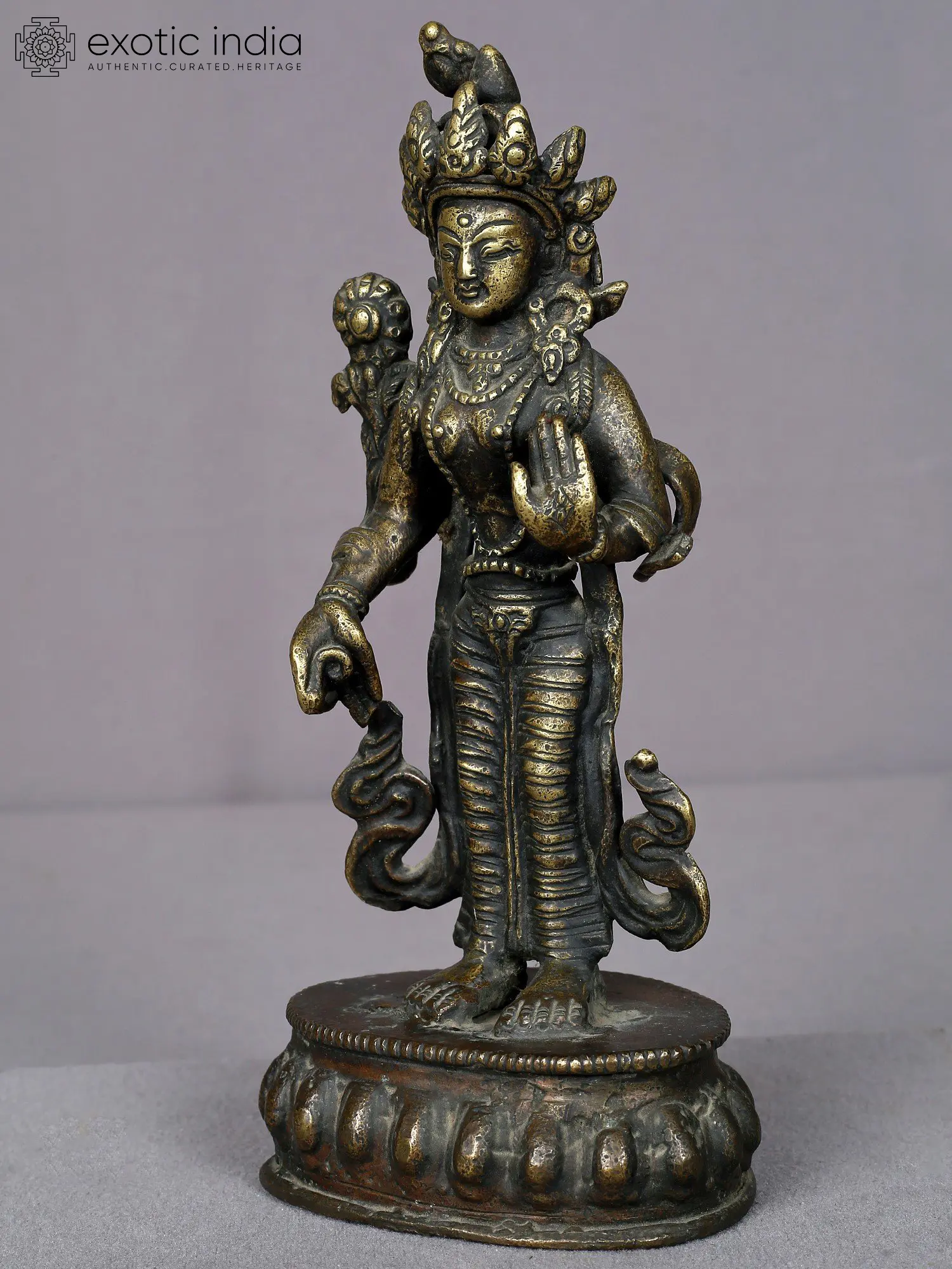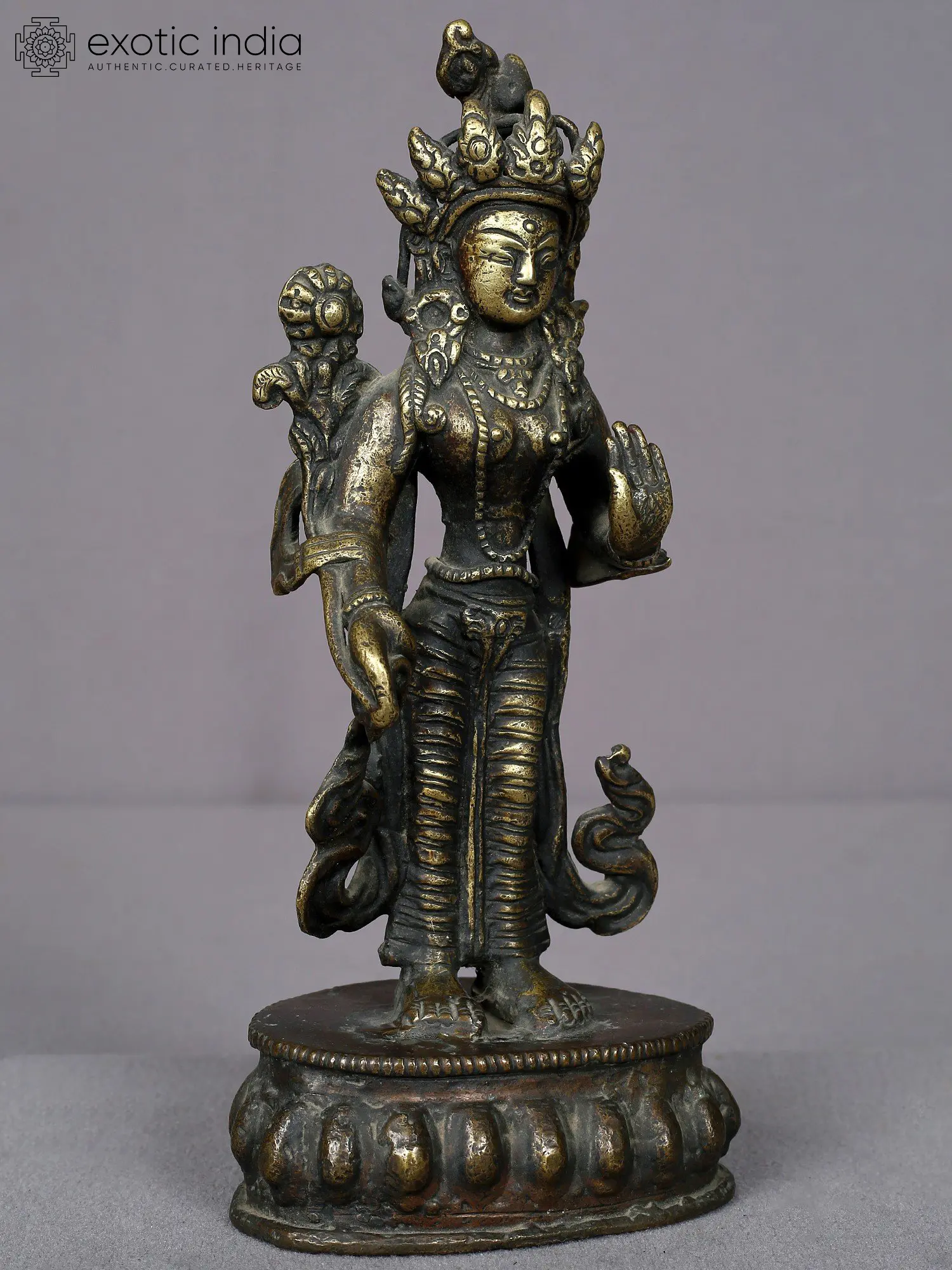 The significance of the standing Goddess Tara lies in her role as a compassionate and nurturing deity. She is often regarded as the "Mother of Liberation" and is believed to guide and protect those who seek her blessings. Tara is associated with qualities such as wisdom, compassion, and the power to overcome obstacles.