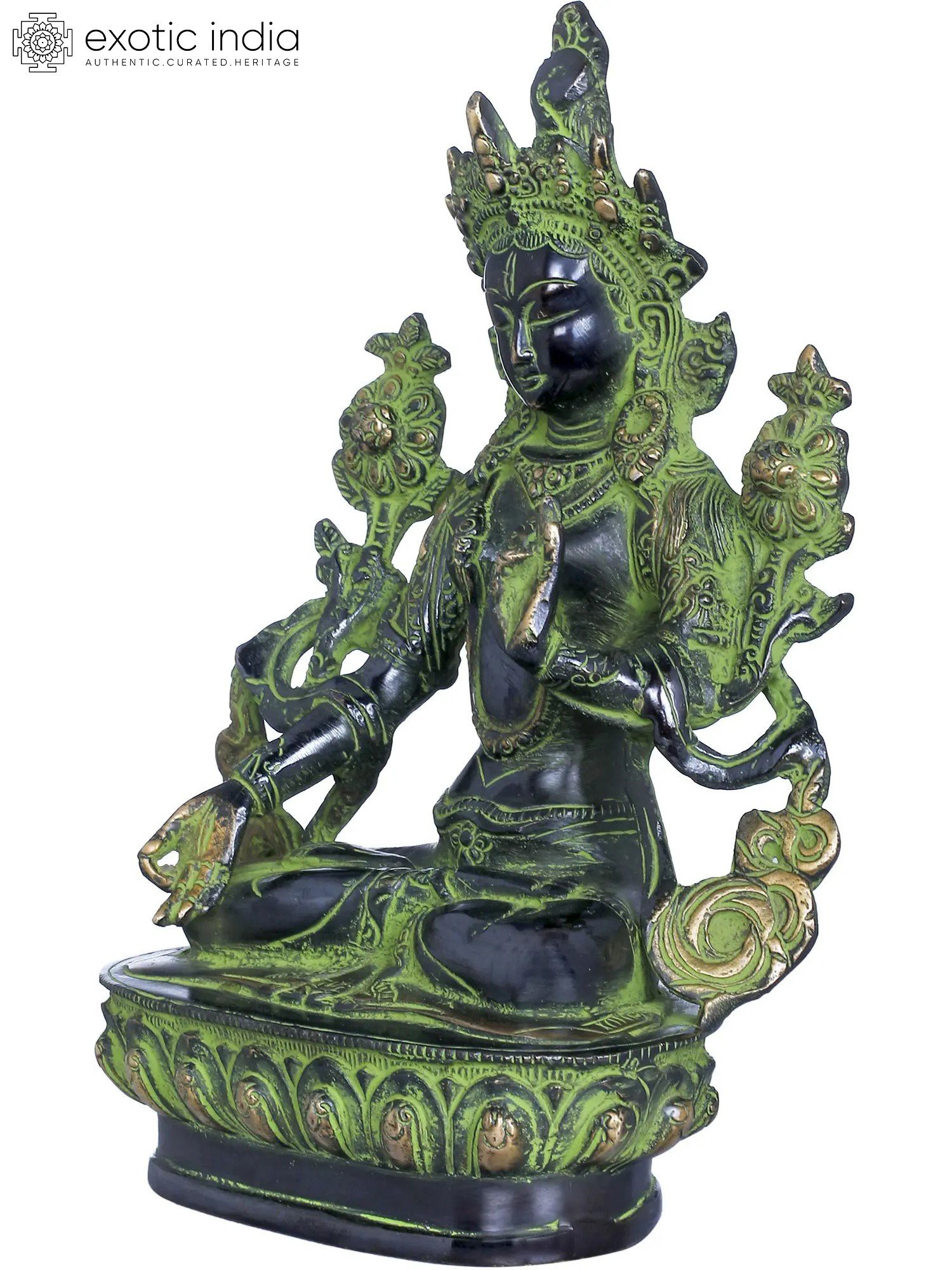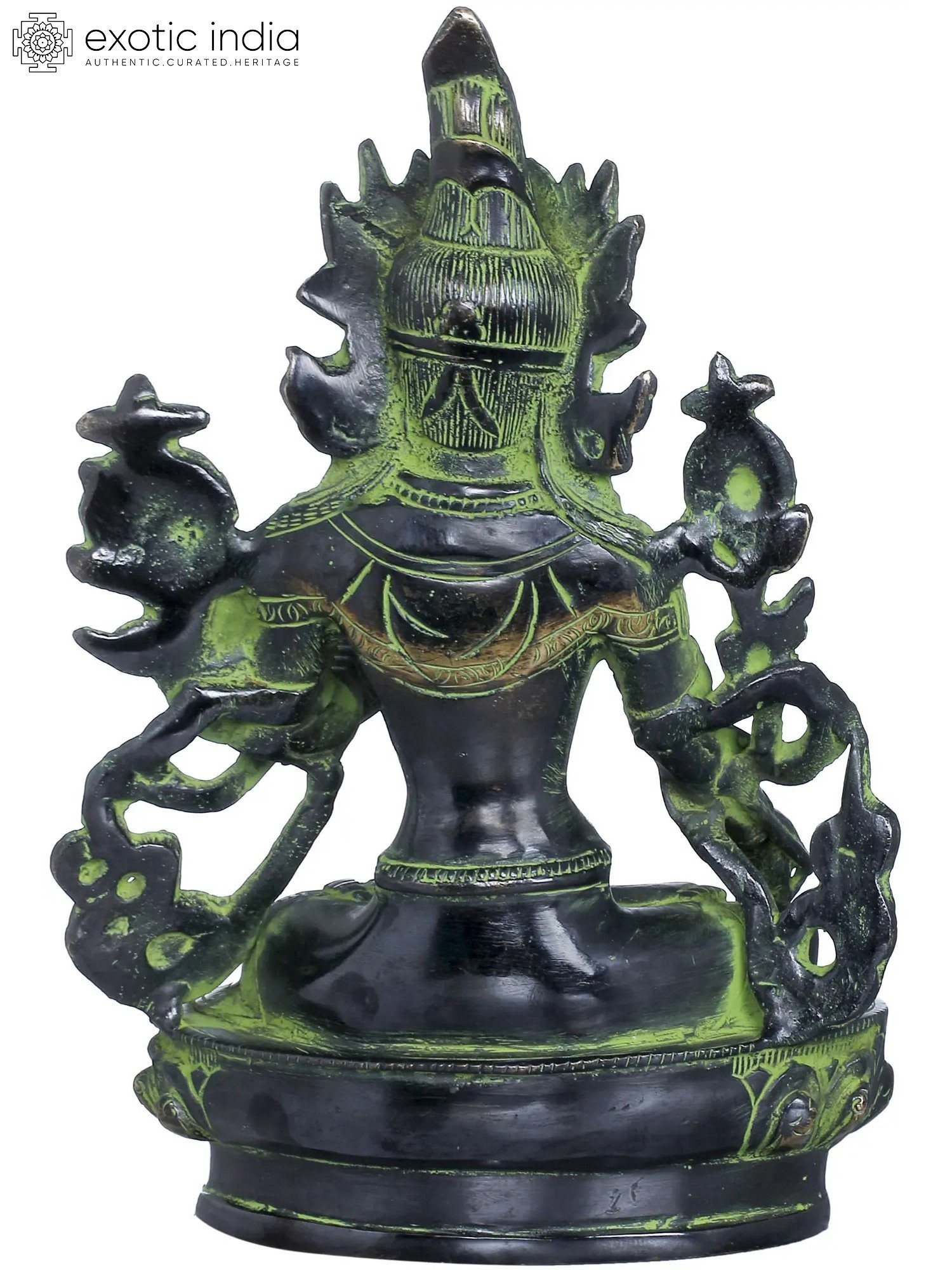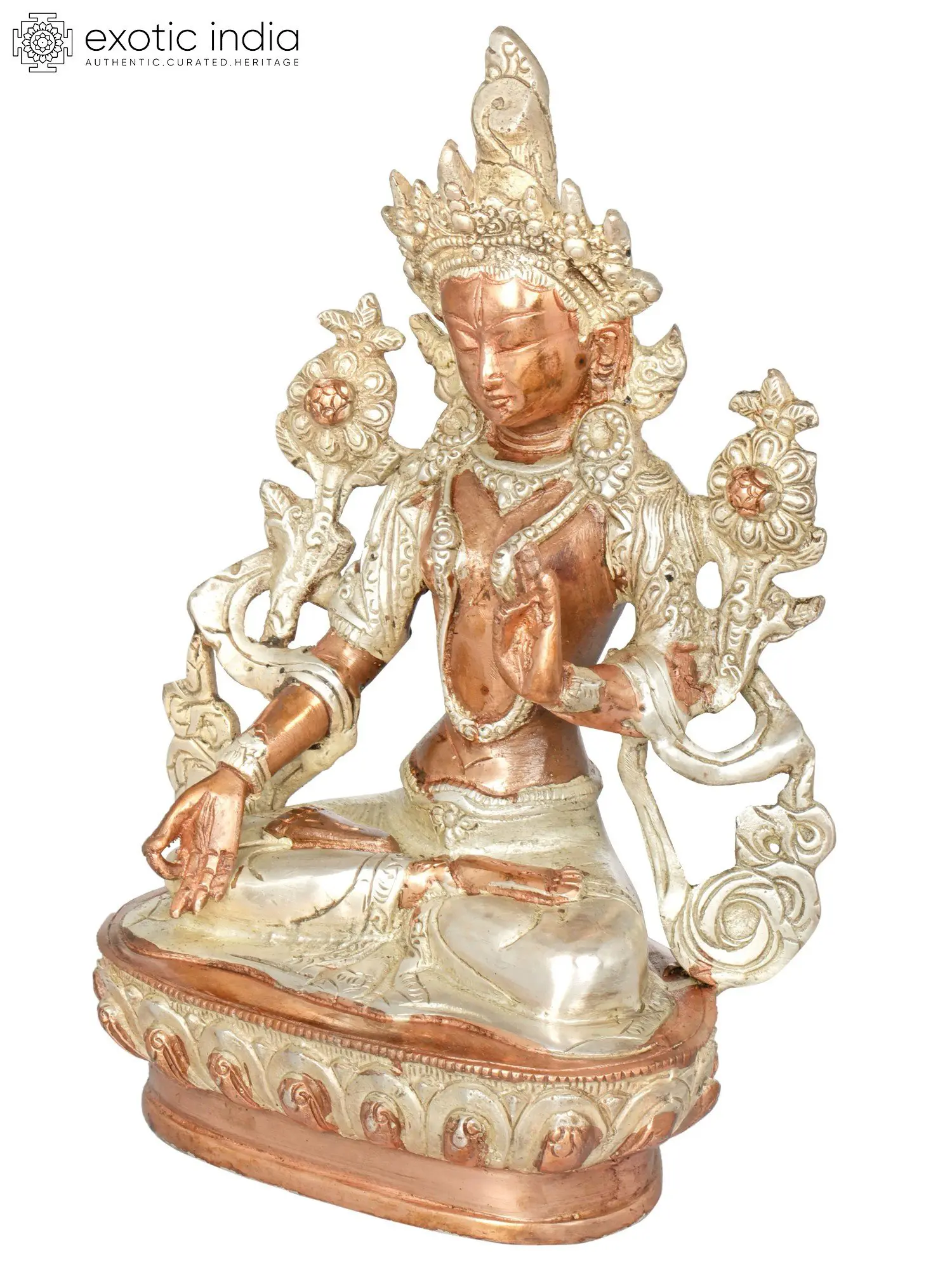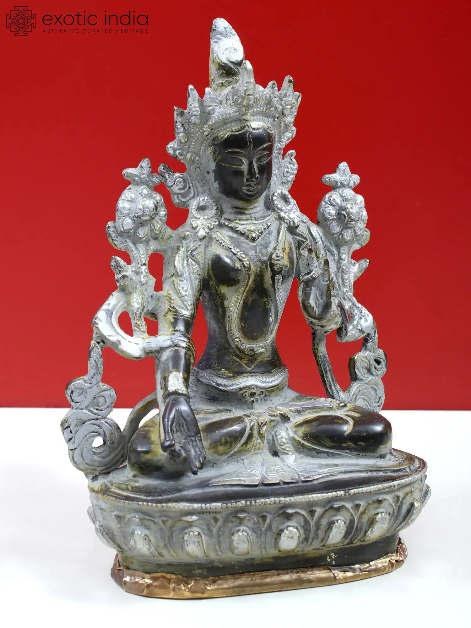 White Tara, a revered bodhisattva in Buddhism, embodies boundless compassion and healing. She is depicted with a serene expression, having seven eyes to perceive suffering in all directions. White Tara's right hand extends in a gesture of granting blessings, and she holds a white lotus symbolizing purity, while her left-hand cradles a crystal mala representing spiritual practice. Devotees recite her mantra for healing and longevity, seeking her compassionate guidance during physical or spiritual challenges. White Tara stands as a symbol of solace, protection, and well-being, embodying the compassionate aspect of enlightenment, especially in Tibetan Buddhism.