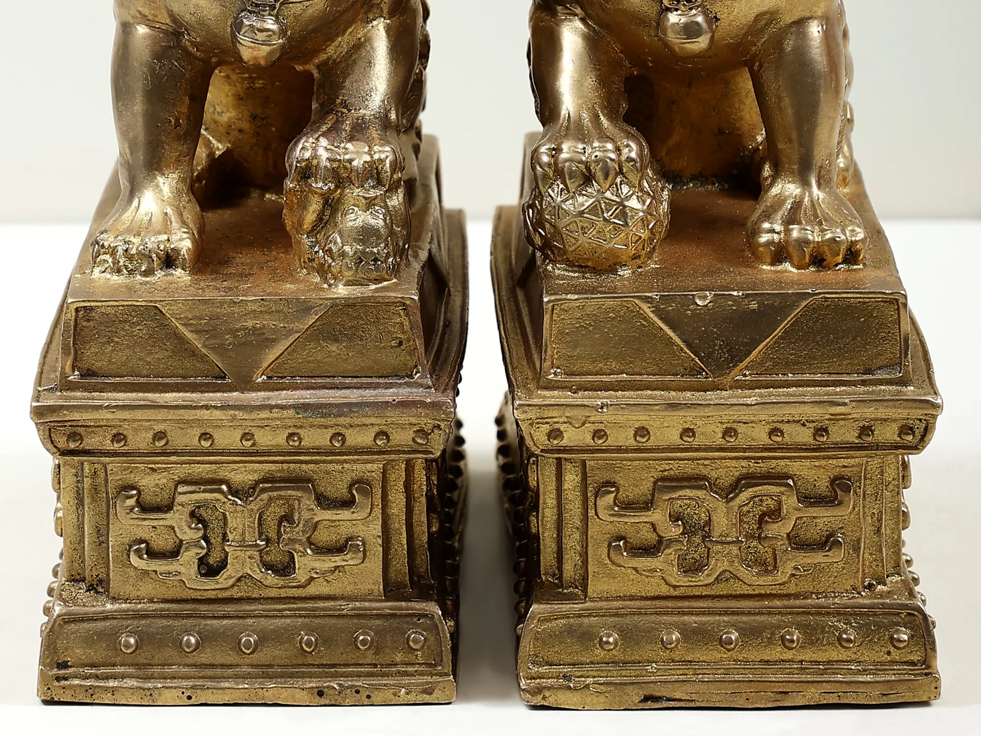 Guard your space with the majestic presence of our Bronze Pair of Chinese Guardian Lions. gorgeously crafted, these lion sculptures embody the traditional symbolism of protection, prosperity, and good fortune. Each detail, from the fierce expressions to the intricately carved manes, reflects the artisan's dedication to capturing the essence of these revered guardians. Place this pair strategically at the entrance of your home or office, allowing the guardian lions to stand as sentinels, warding off negative energy and inviting positive forces into your space.