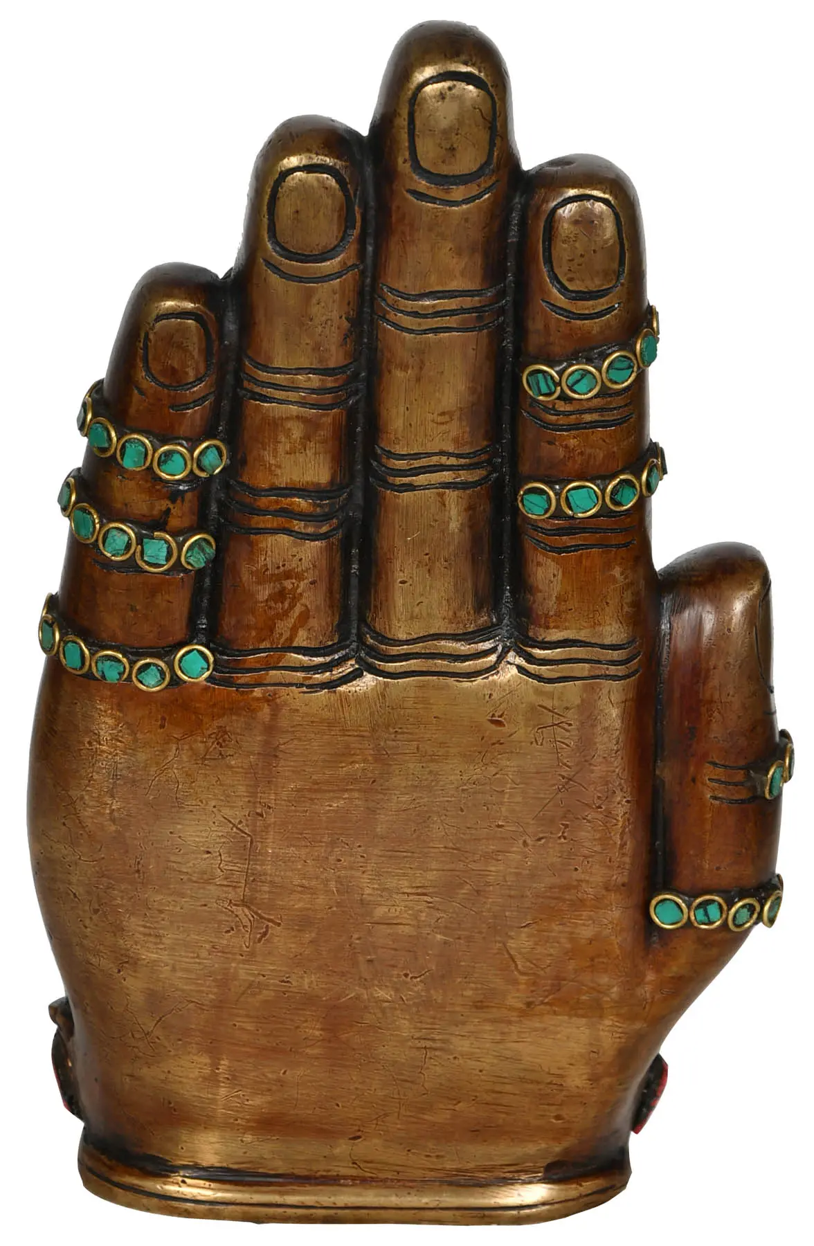 8" Buddha in Hand (Tibetan Buddhist) In Brass | Handmade | Made In India