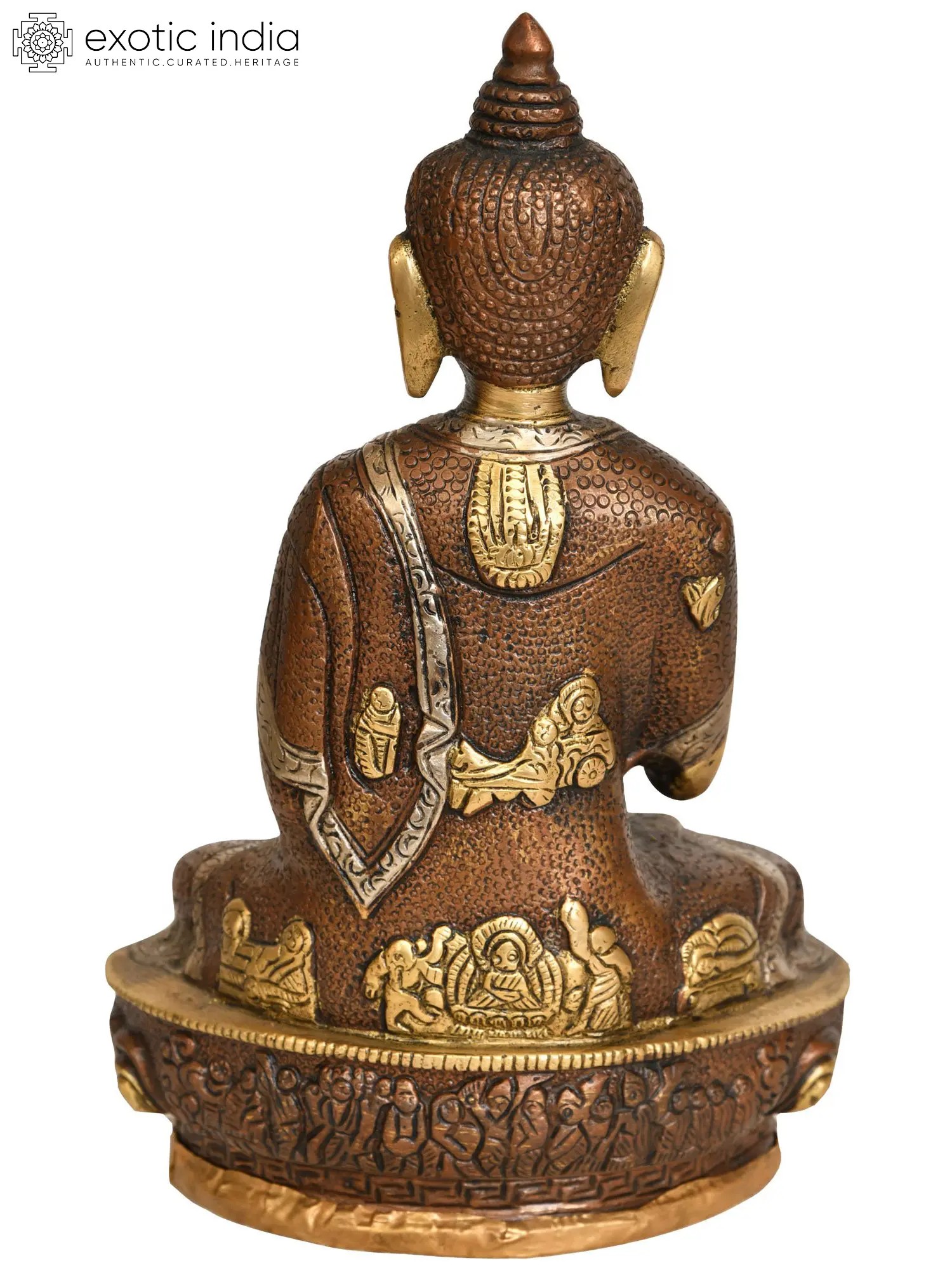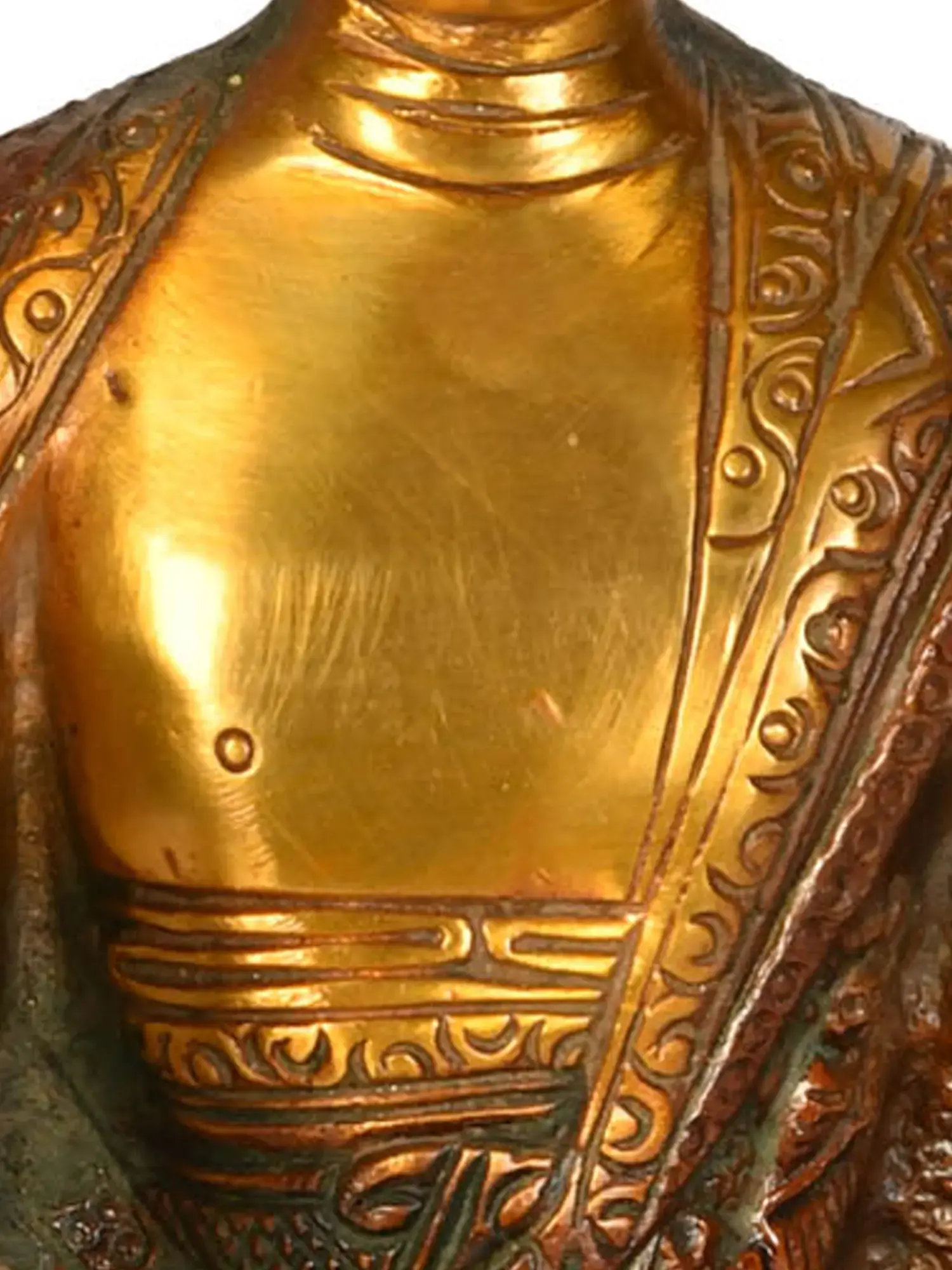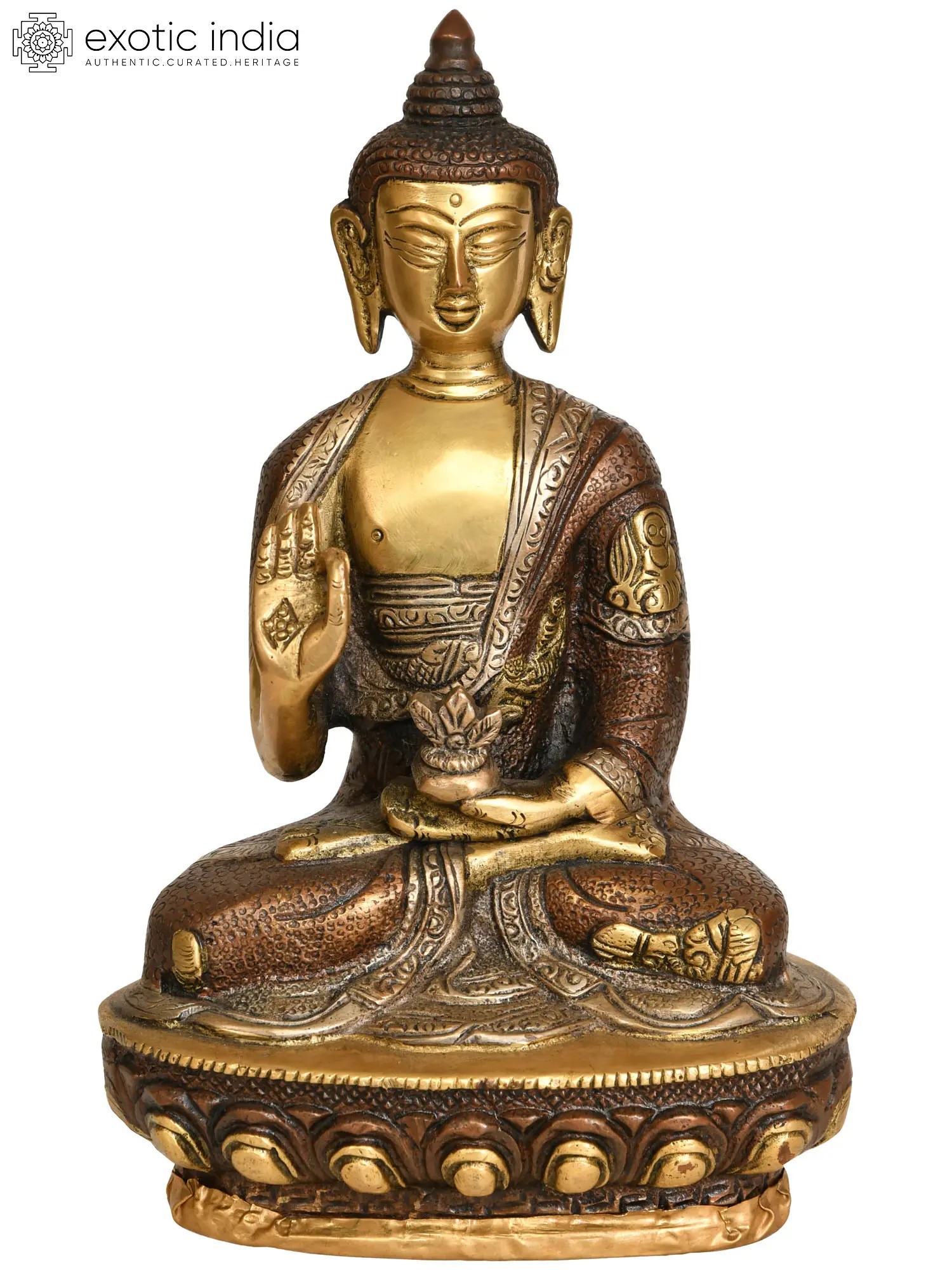 Enrich your spiritual sanctuary with the teachings of the Preaching Buddha, a Tibetan Buddhist deity, presented in this beautifully carved brass statue. The intricately detailed robe symbolises humility and mindfulness, reflecting the importance of compassion in Buddhist philosophy. This statue conveys the timeless wisdom and grace of the Buddha as He imparts His teachings to the world. It serves as a reminder of the path to enlightenment and the significance of sharing spiritual knowledge. Place this masterpiece in your home and immerse yourself in the serenity and enlightenment that the Preaching Buddha brings.