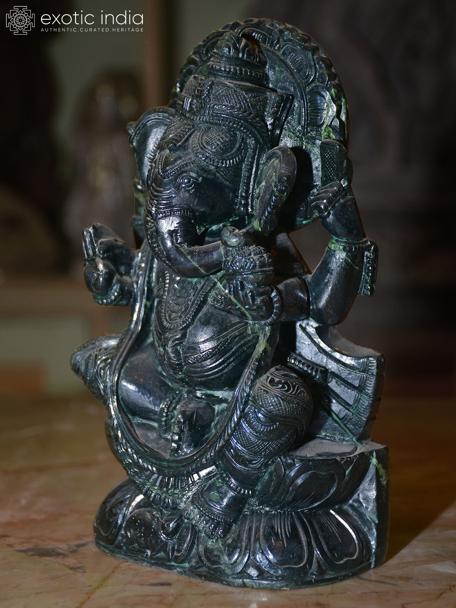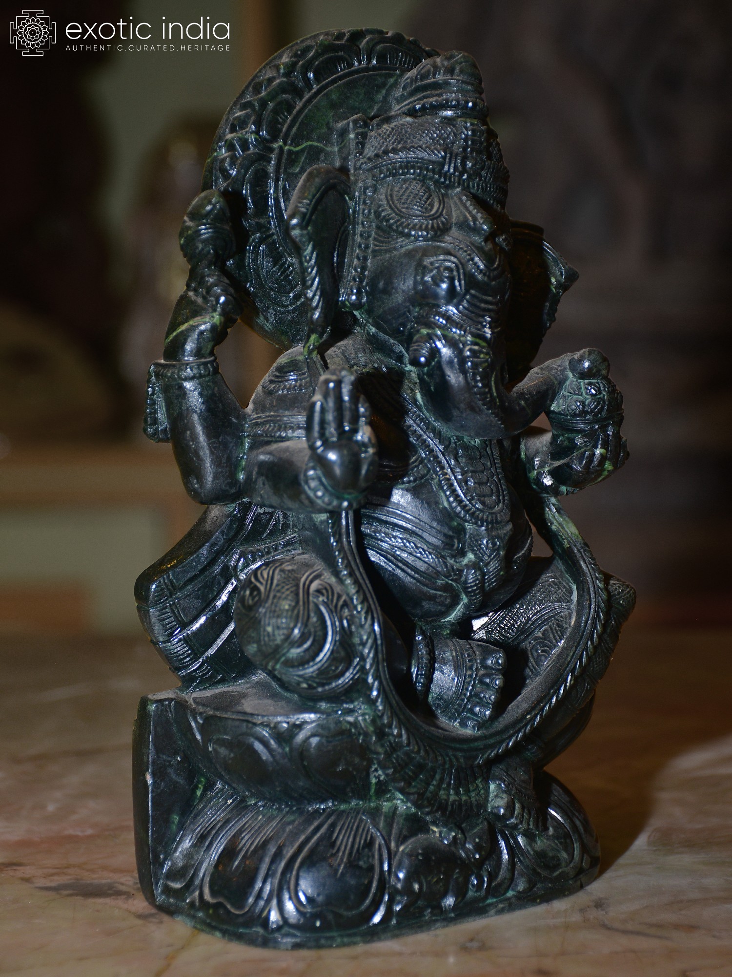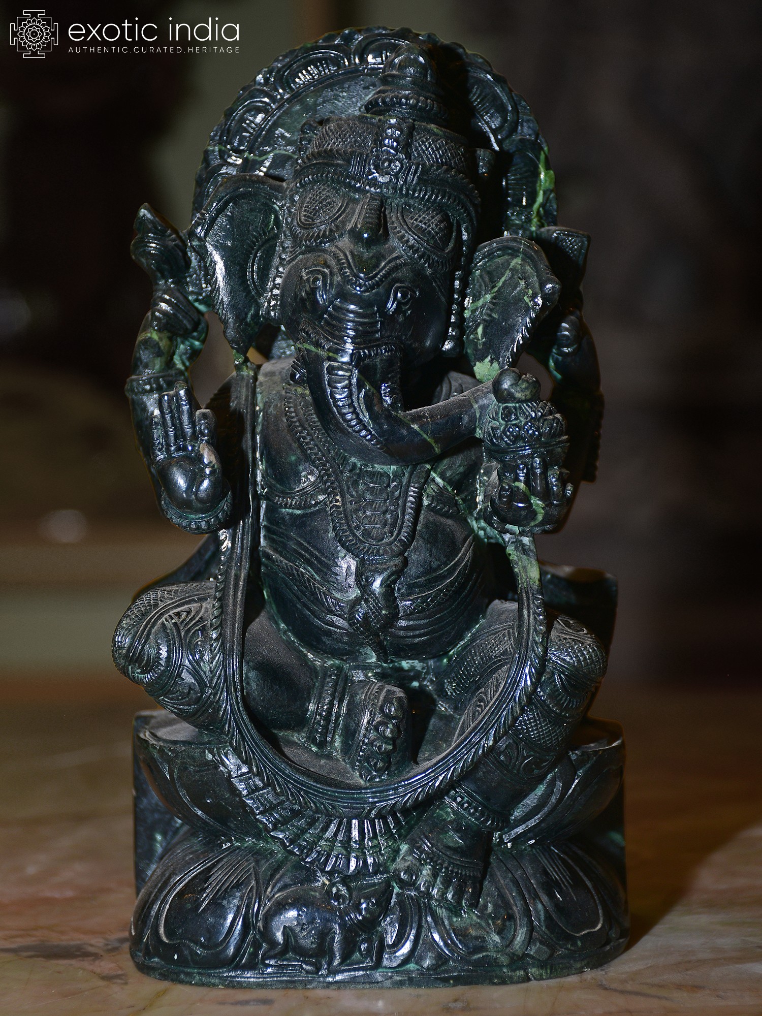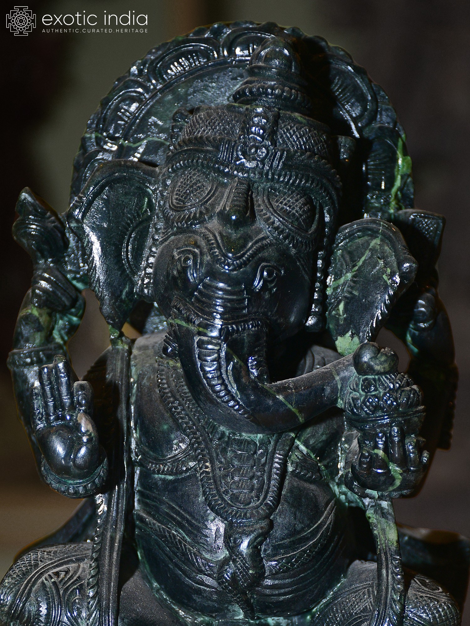 12" Chaturbhuja Ganesha Statue Seated on Kirtimukha Throne