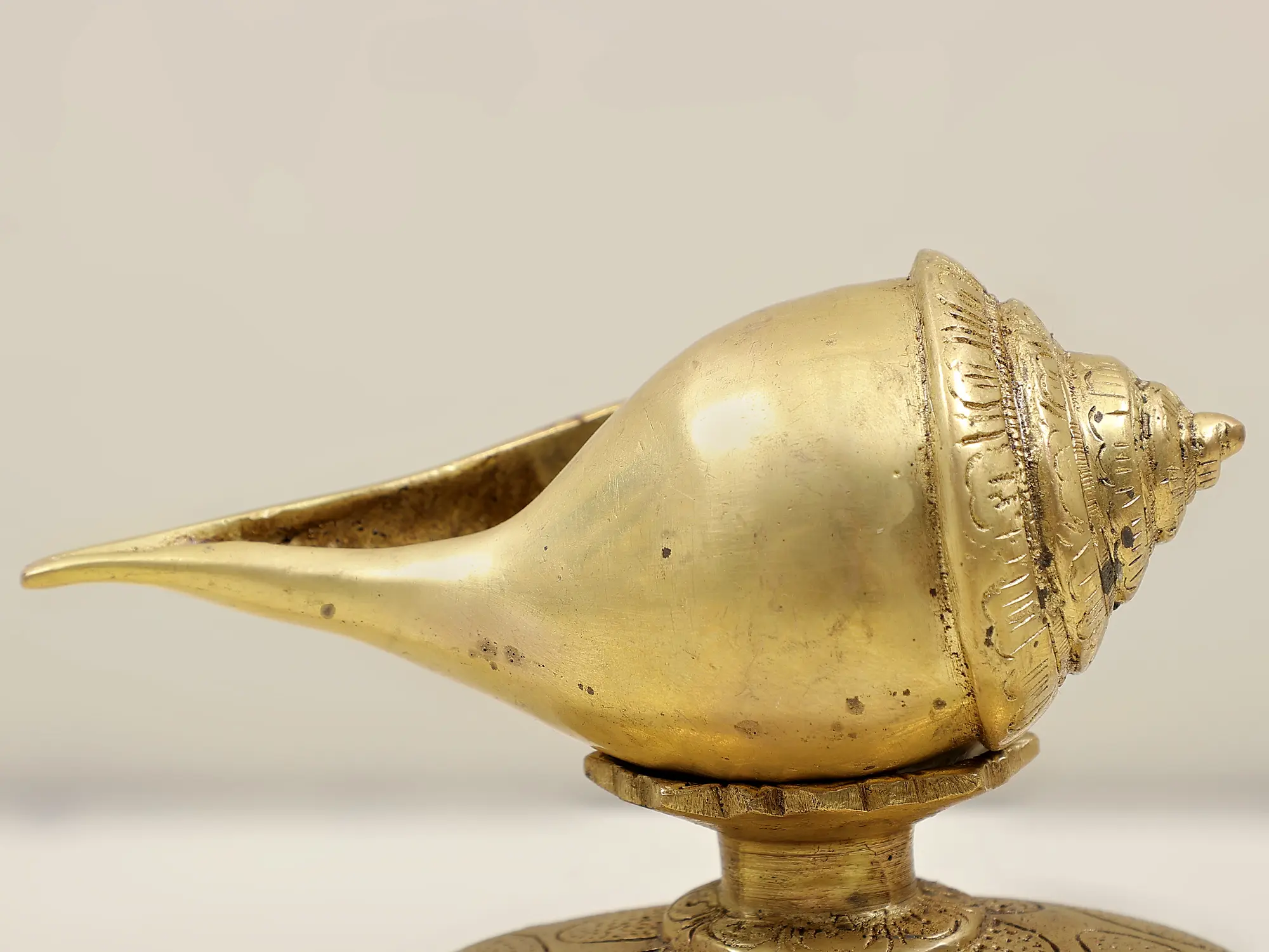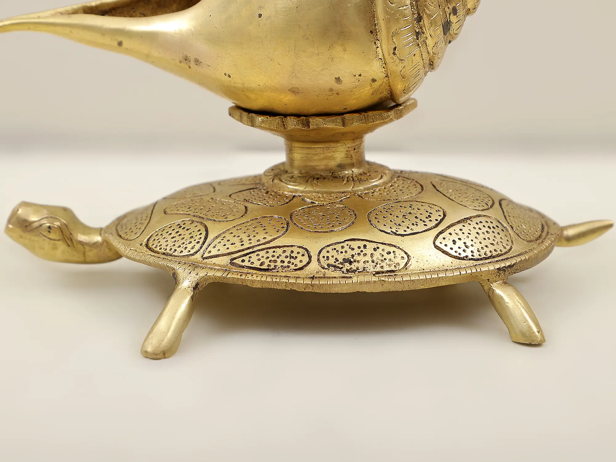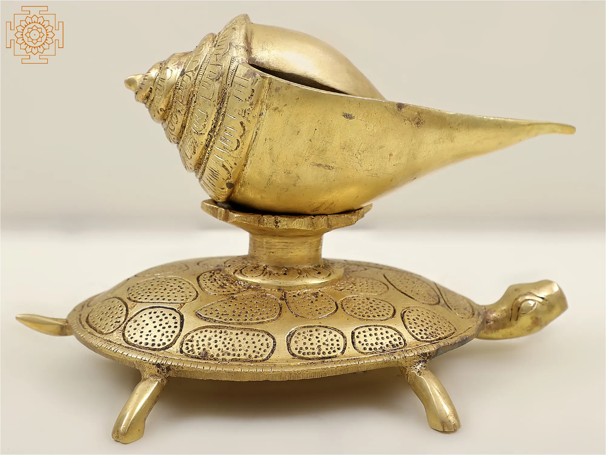 This extraordinary brass sculpture portrays a conch resting gently on the back of a majestic tortoise. The conch, an ancient symbol of cosmic sound and creation, emits vibrations that resonate with the very fabric of existence. The tortoise signifies stability and endurance. Together, they embody the essence of balance and harmony in the universe. The sculpture invites you to listen closely to the conch's whispers, guiding you toward self-discovery and inner peace. Embrace the wisdom of this art, unleashing vast mysteries that lie within the cosmos.