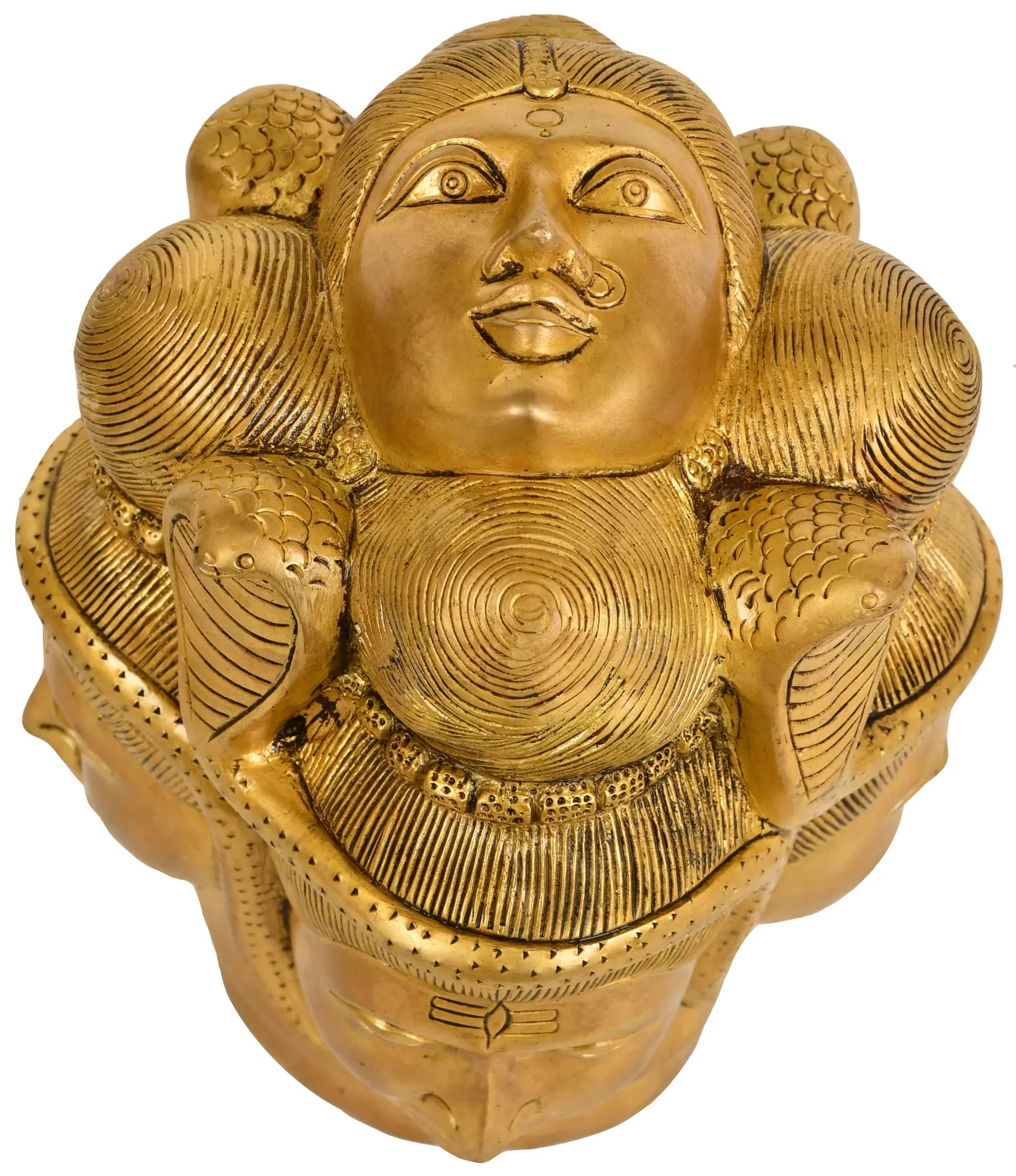 Embark on a spiritual journey into the Bharmanda with the Cosmic PanchaMukha Lingam, a stunning representation of Lord Shiva in his five-faced form. Handcrafted with reverence in India, this brass sculpture delves into the multifaceted nature of Lord Shiva. Each face of the PanchaMukha Lingam symbolises a different aspect of the divine, from creation to destruction. By placing this artwork in your sacred space, you beckon the blessings and profound wisdom of Lord Shiva, creating an atmosphere of spiritual transformation and enlightenment.
