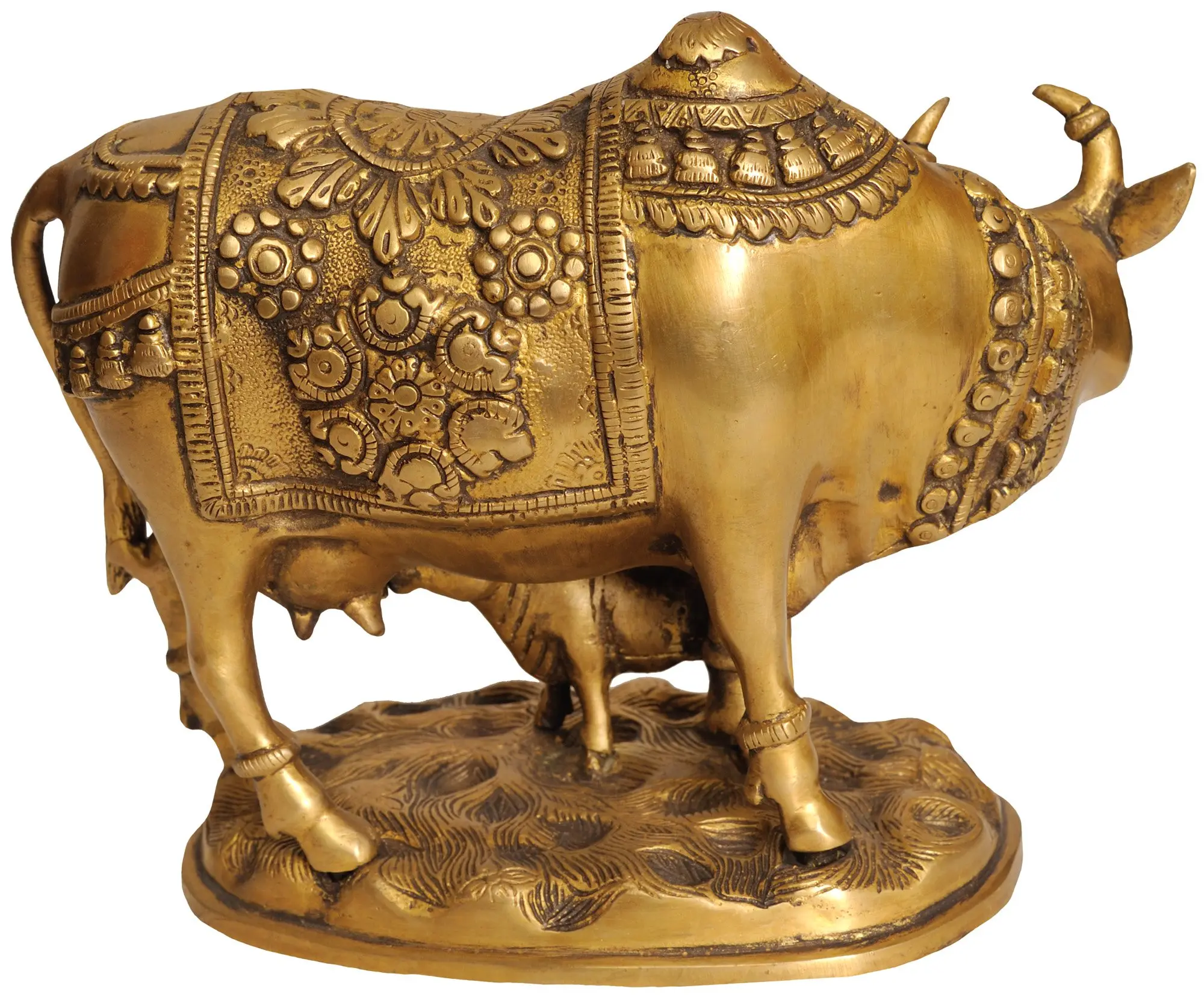 The reverence for cows in Indian culture is deeply rooted in ancient scriptures and mythology. In Hinduism, the cow is associated with numerous deities and plays a pivotal role in many narratives. Lord Krishna, often depicted as a cowherd, had a special affection for cattle. The Kamadhenu, a celestial wish-fulfilling cow, is another significant figure, representing abundance and spiritual nourishment. Furthermore, the very act of a mother cow nursing her calf symbolizes selfless love and the provision of essential life force, mirroring the nurturing aspect of the divine feminine. This statue serves as a tangible reminder of these enduring beliefs and the sanctity of life.