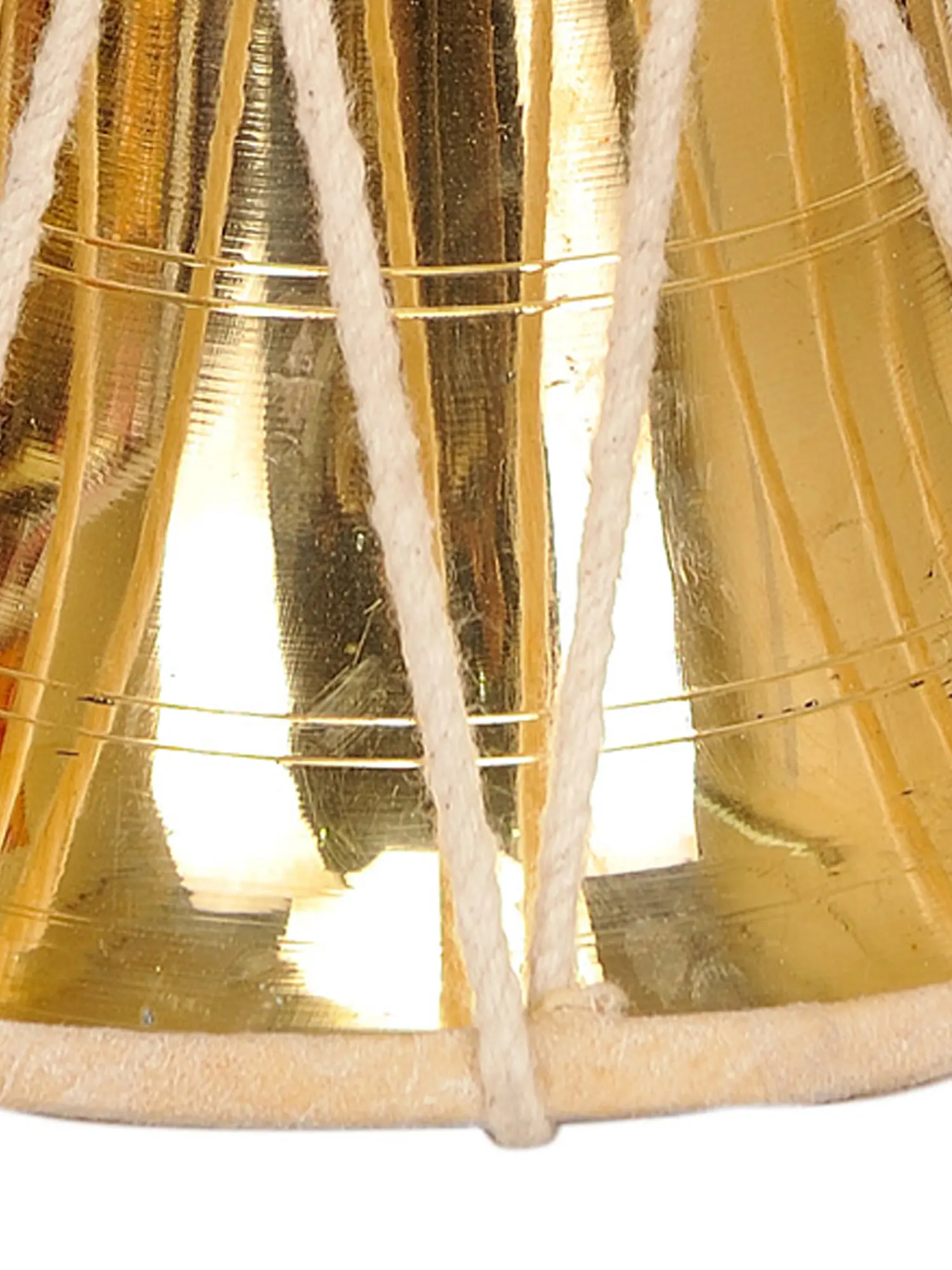 The brass Damaru is a powerful musical instrument used in Indian culture, particularly in the worship of Lord Shiva. Shaped like an hourglass, it consists of two small drums joined in the middle, stretched taut over the openings. When played, it produces a unique, rhythmic sound that resembles the cosmic sound of Om, believed to be the source of creation. The Damru holds spiritual significance, symbolizing the eternal cycle of creation and destruction, making it a cherished instrument in both religious rituals and cultural traditions.