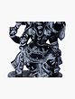 This exquisite stone statue captures the divine energy and playful spirit of Lord Ganesha, the remover of obstacles and the patron of arts and sciences. Crafted from rich, dark stone in the ancient sculptural tradition of South India, specifically from Mahabalipuram, this piece is a testament to timeless artistry and profound spiritual significance. The intricate carvings and dynamic posture of the deity evoke a sense of movement and celebration, making it a captivating focal point for any space. The depiction of Ganesha in a dancing pose, known as Nritta Ganapati, is particularly auspicious. In Hindu mythology, Lord Ganesha is believed to dance to relieve the world of suffering, his movements imbued with divine bliss and cosmic rhythm. His dance is not merely a physical act but a representation of the eternal cycle of creation, preservation, and destruction. His four arms, each carrying symbolic items, are in active motion, further emphasizing his vibrant and engaged presence. The ladle in one hand represents his ability to bestow rewards, while the pot of sweets signifies his capacity to nourish and satisfy. The broken tusk, a symbol of his sacrifice and dedication to preserving sacred texts, is also a powerful reminder of his wisdom and determination.