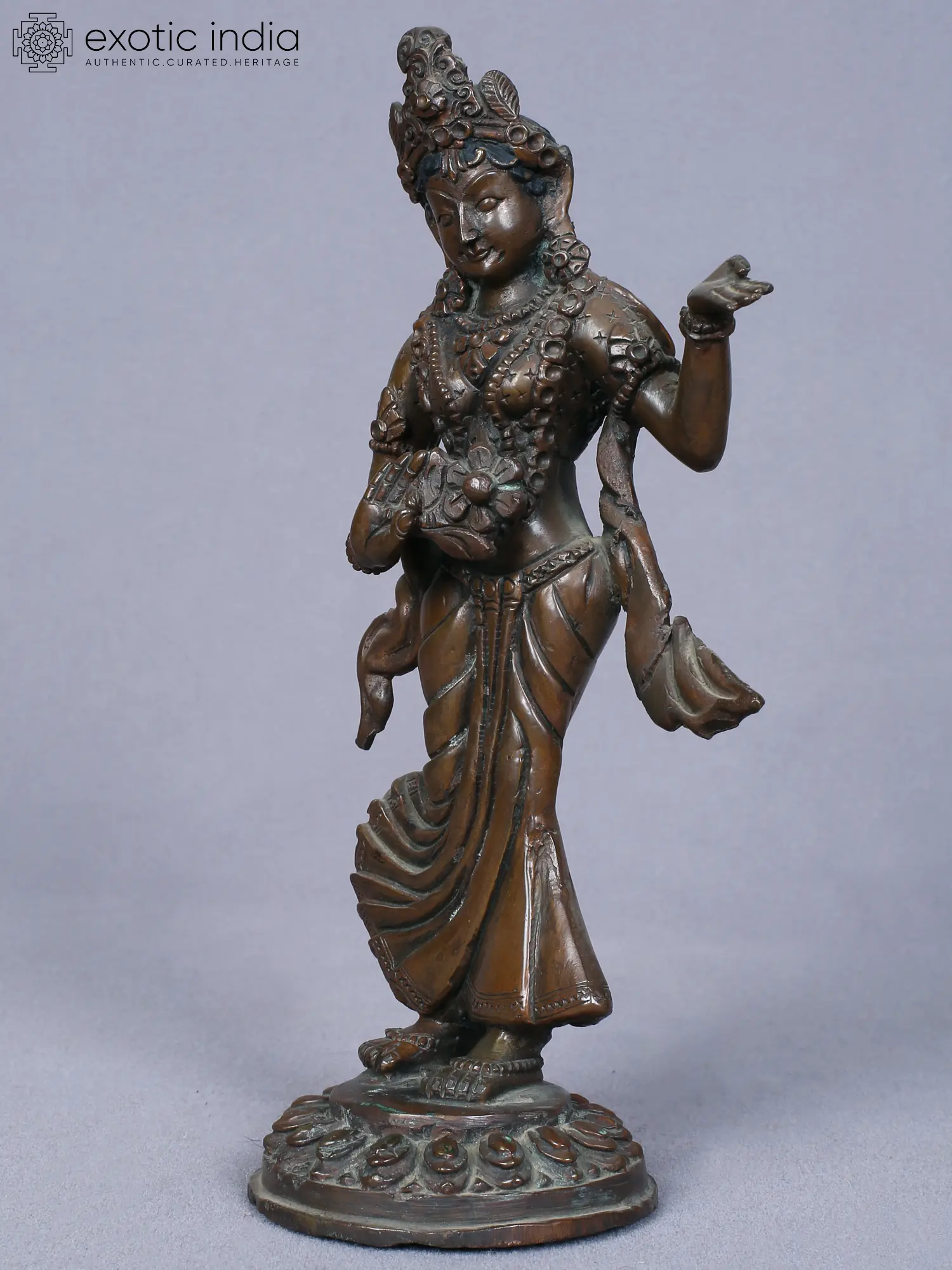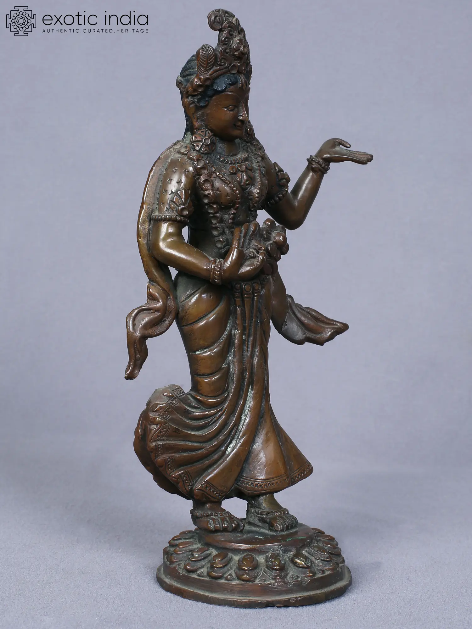 With her home situated in the lap of the Himalayas, Parvati in Nepal is a beloved Hindu deity, revered as the supreme female principle- Prakriti, from whom emerges the entire Universe. She is the pinnacle of auspiciousness, beauty, strength, and fortune. In this copper statute, the heavenly aura of Parvati and her presence in Nepalese culture has been perfectly captured. The goddess stands on a lovely Padmasana or lotus pedestal, which represents the Universe. A stunning dynamism flows from the statue, from the swaying folds of Parvati’s saree, the flow of her upper body garment, and the interactive gesture of her left hand.