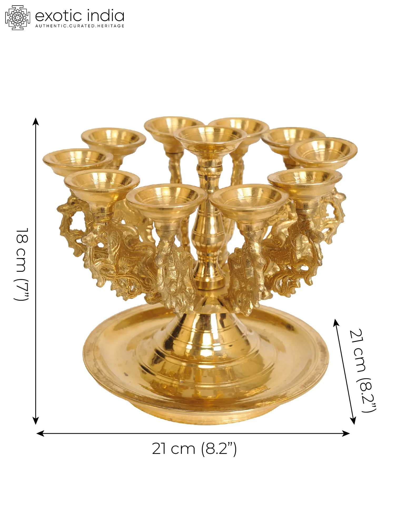 This ceremonial lamp with Yali figures is rich in iconography and cultural symbolism. It is crafted of bronze and features Yali, a legendary monster inspired by Indian traditions. A Yali is a sign of strength, bravery, and fearlessness. Its commanding presence implies power and protection. The combination of Yali with an item for giving prayers conveys the sense of protection granted by the almighty to those who invoke him with all their hearts. The Yali’s are shown here carrying a flame over their heads and circling the main lamp. This lamp represents the interaction of power, knowledge, and the quest for greater awareness.