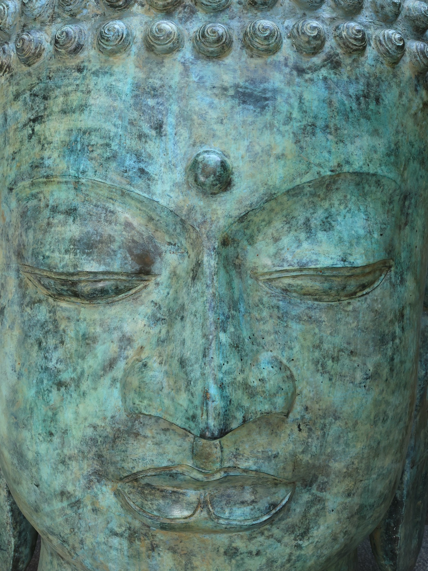 Large Brass Sculpture: Meditating Buddha Head
