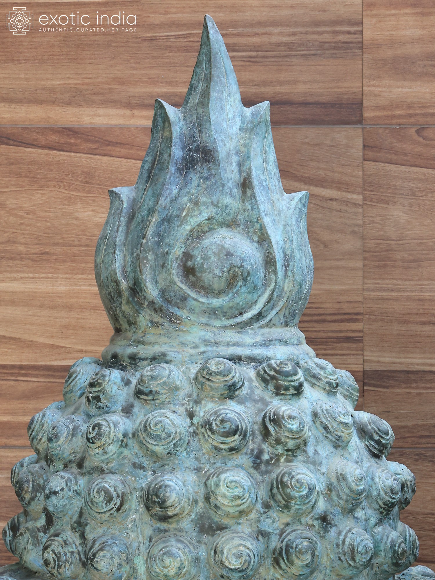 Features a striking patina, indicative of aged metal and classic artistry.