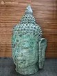 31" Thai Buddha Head on Wood Base - Balinese Brass Statue