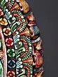Showcases detailed iconography and traditional motifs characteristic of religious artistry.