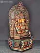 Depicts Ganesha seated majestically on a Kirtimukha (face of glory) throne, symbolizing divine protection.