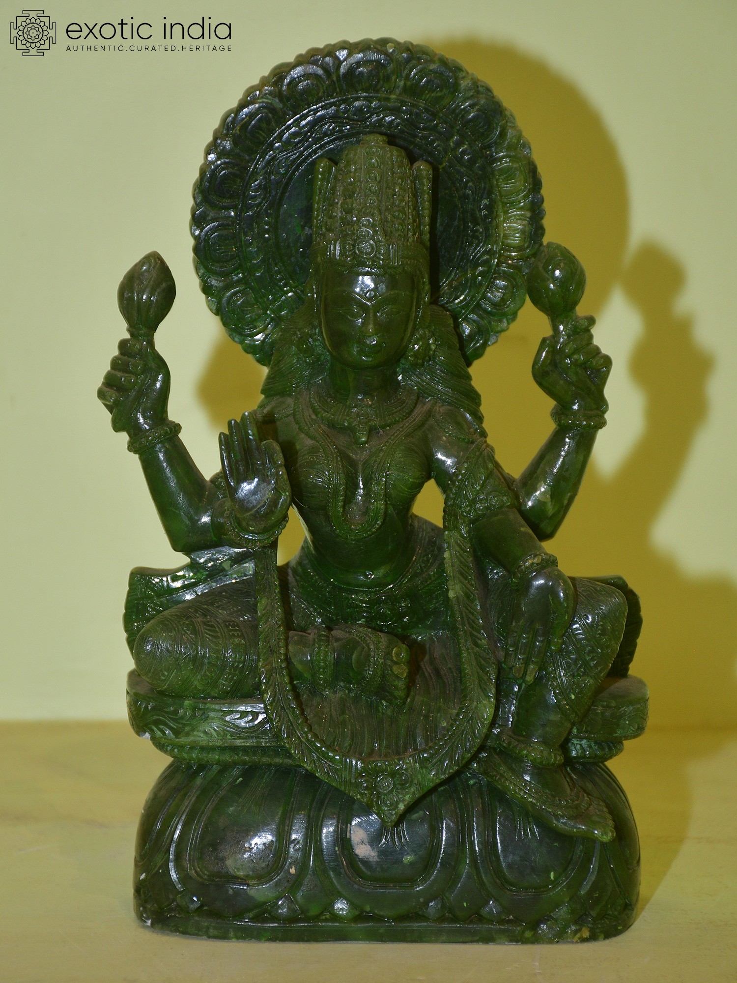 9" Standing Goddess Lakshmi Statue with Prabhavali in Brass