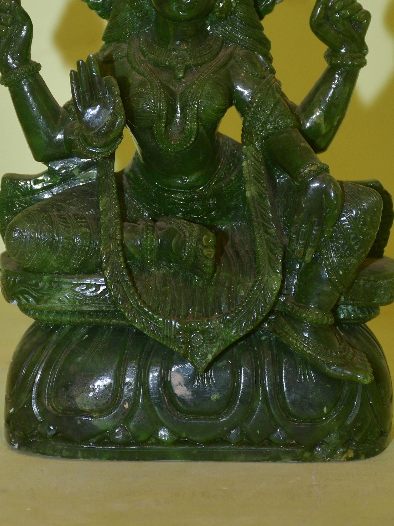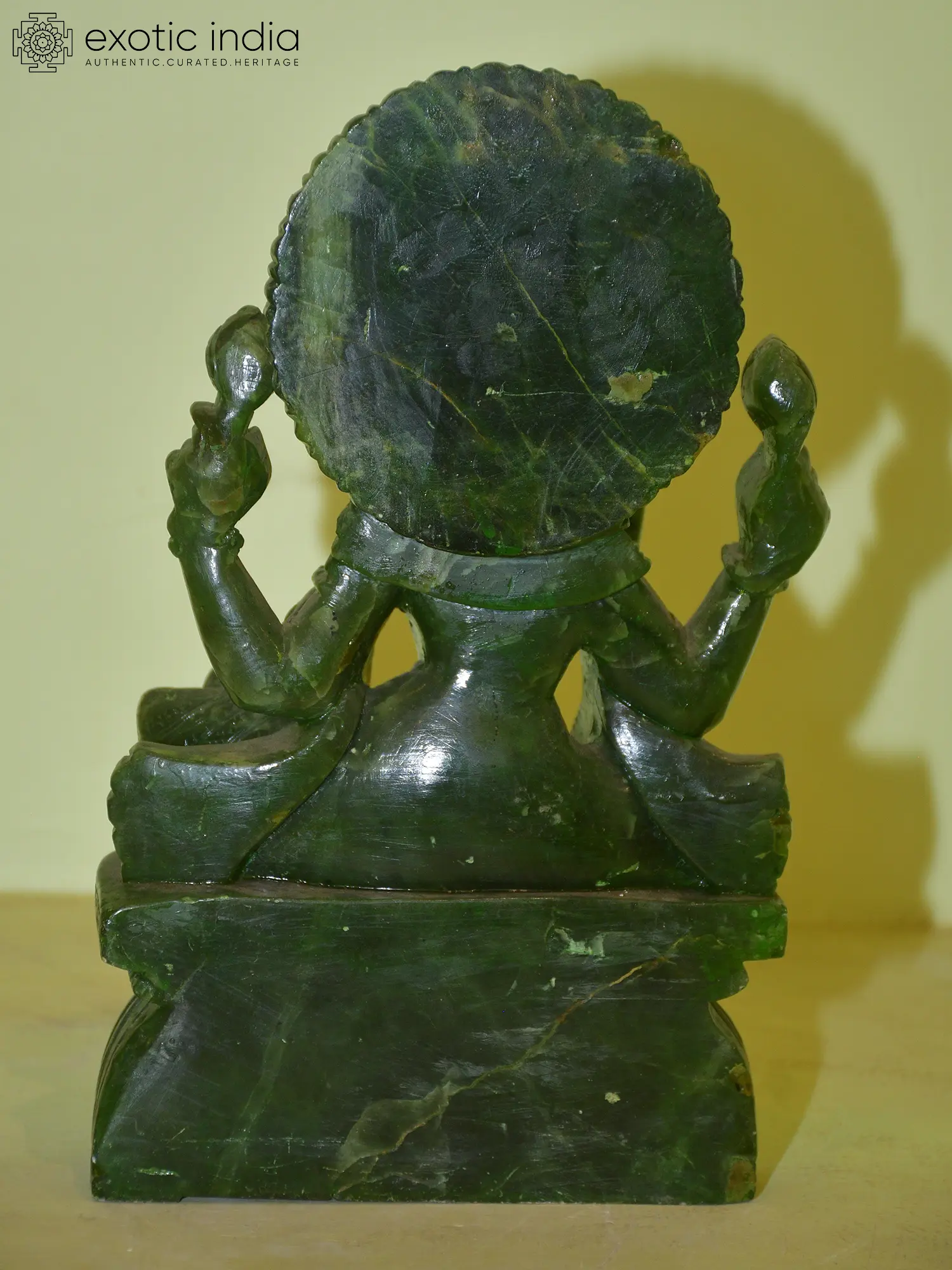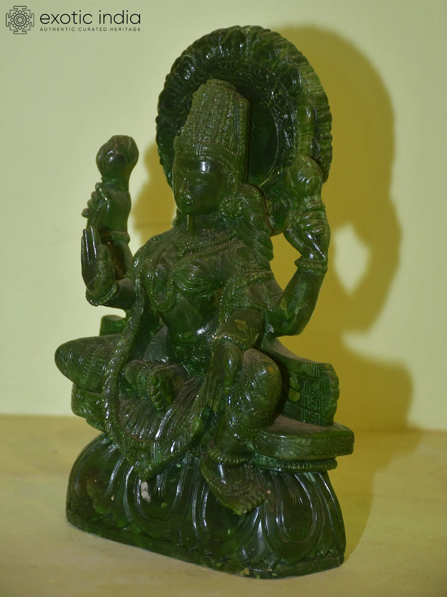 7" Superfine Buddhist Goddess Green Tara Seated with Tree of Life on Wood Base | Brass Statue