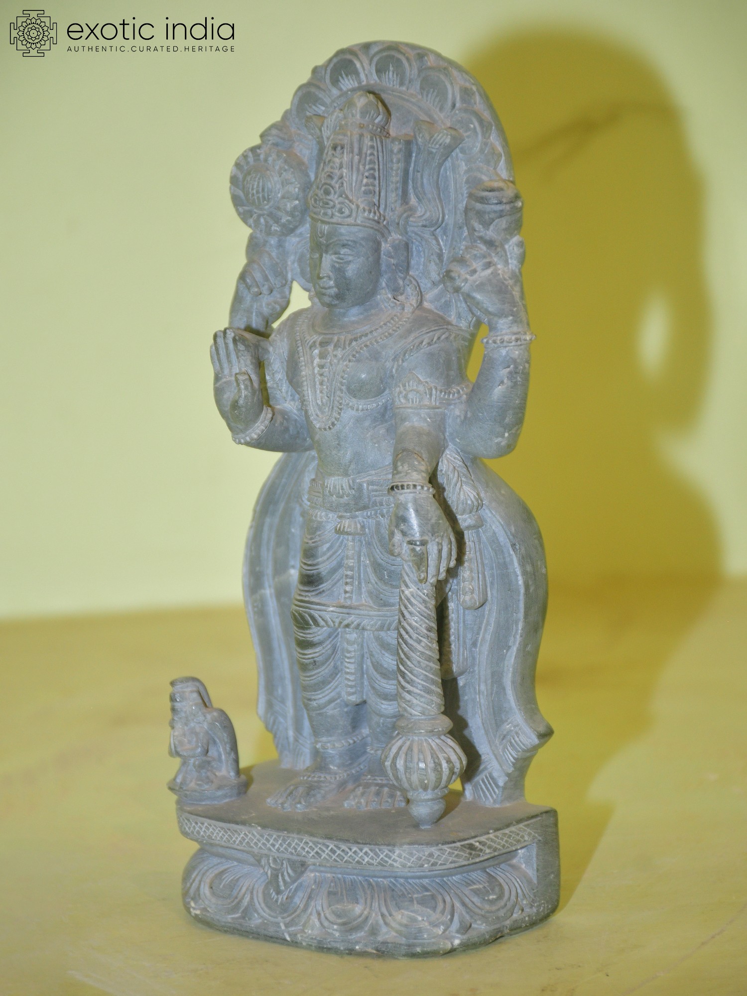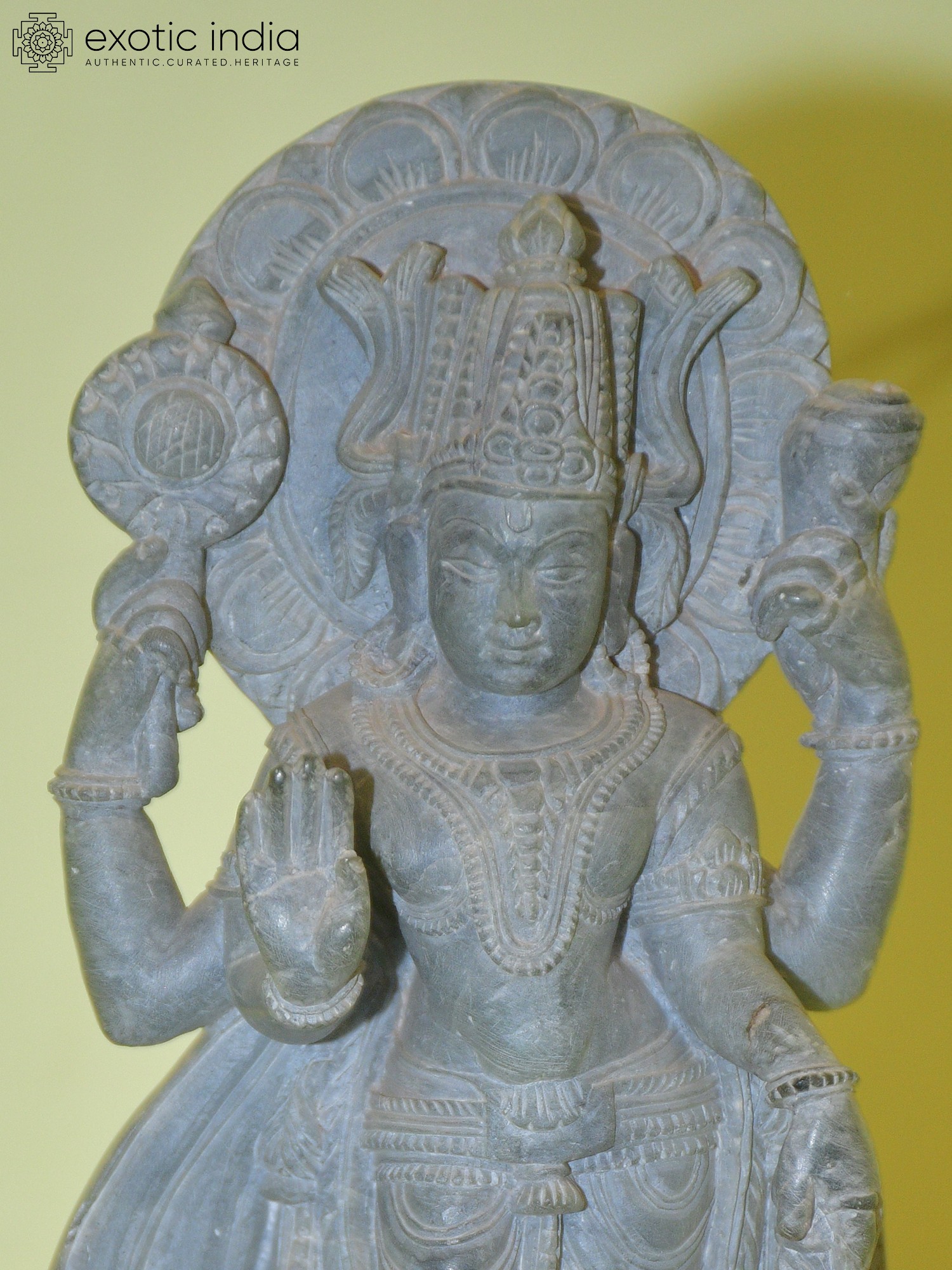 12" Chaturbhuj Lord Ganesha Holding Modak in Hand | Orissa Stone Statue | Exquisite Handmade Indian Art