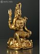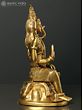 This exquisite 8.5 x 5.5 x 4.7-inch brass statue depicts Lord Shiva, the supreme deity in Hinduism, in a captivating four-armed seated posture. The intricate details and rich golden hue of the brass bring to life the powerful and serene presence of this iconic figure. Shiva, the destroyer and transformer, is here shown in a benevolent aspect, embodying his role as both a force of destruction and a source of creation and regeneration. The statue is a testament to the artistry and devotion poured into its creation, reflecting centuries of tradition in Indian metalwork. The meticulous craftsmanship is evident in the finely etched details of his clothing, jewelry, and the implements he holds, each imbued with deep symbolic meaning.