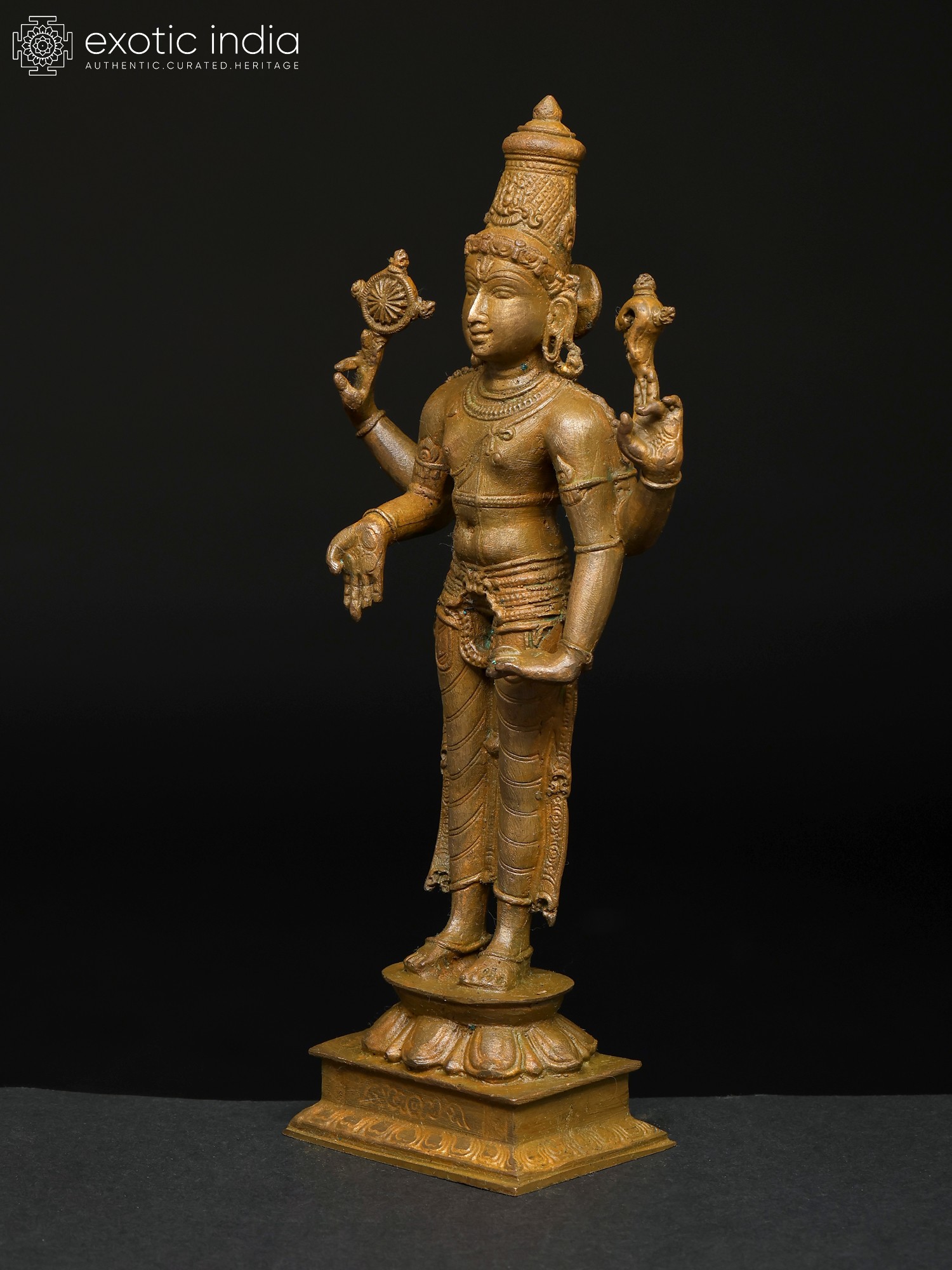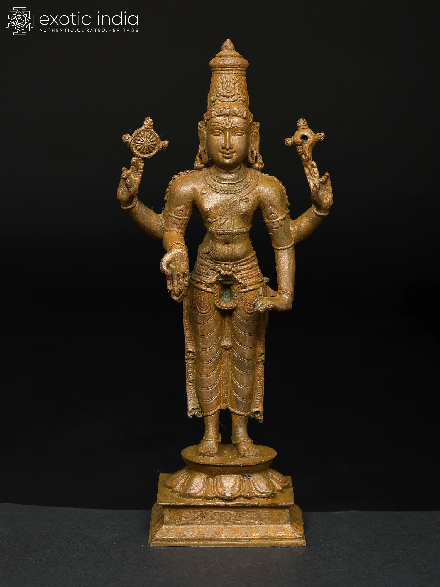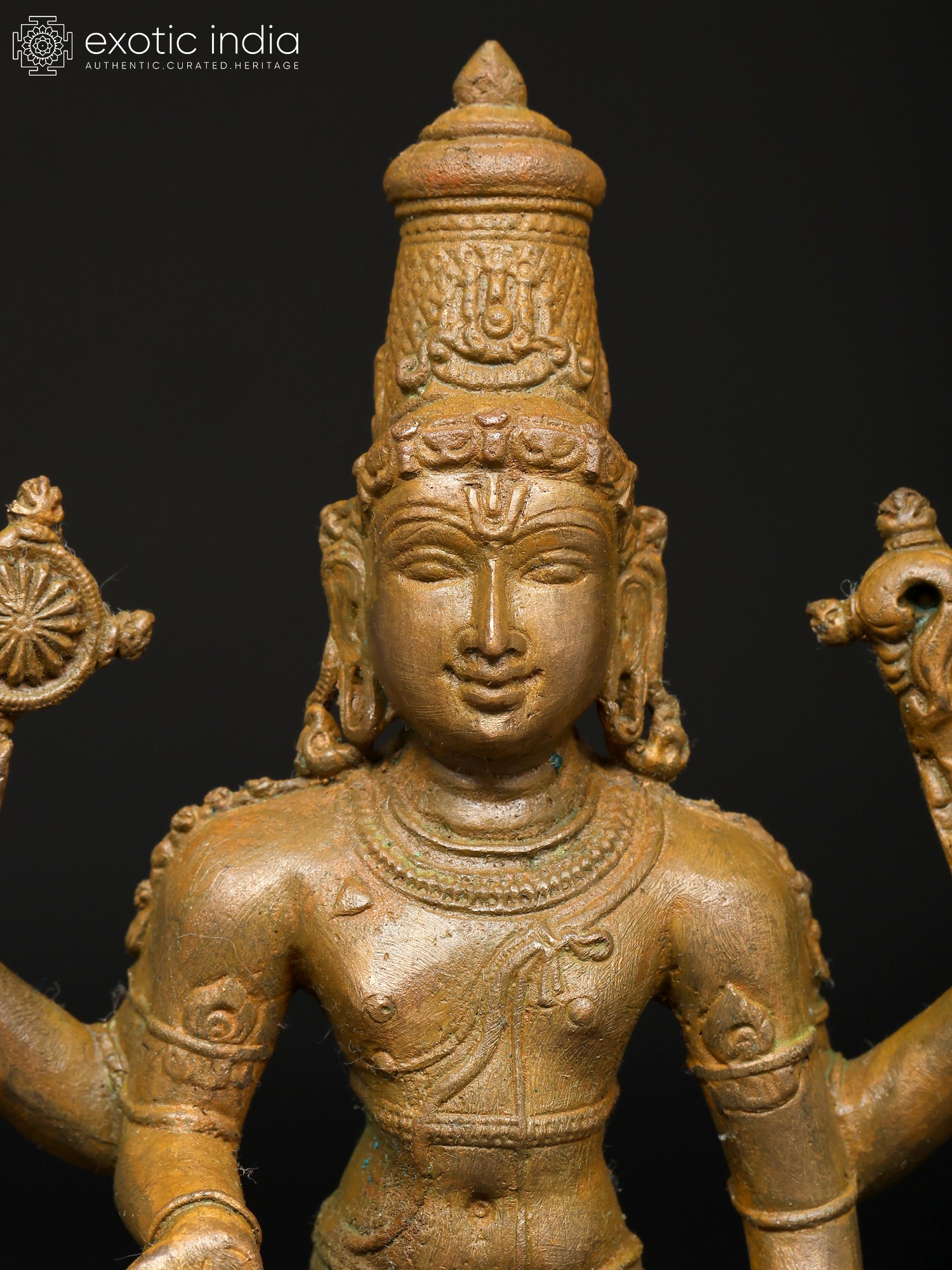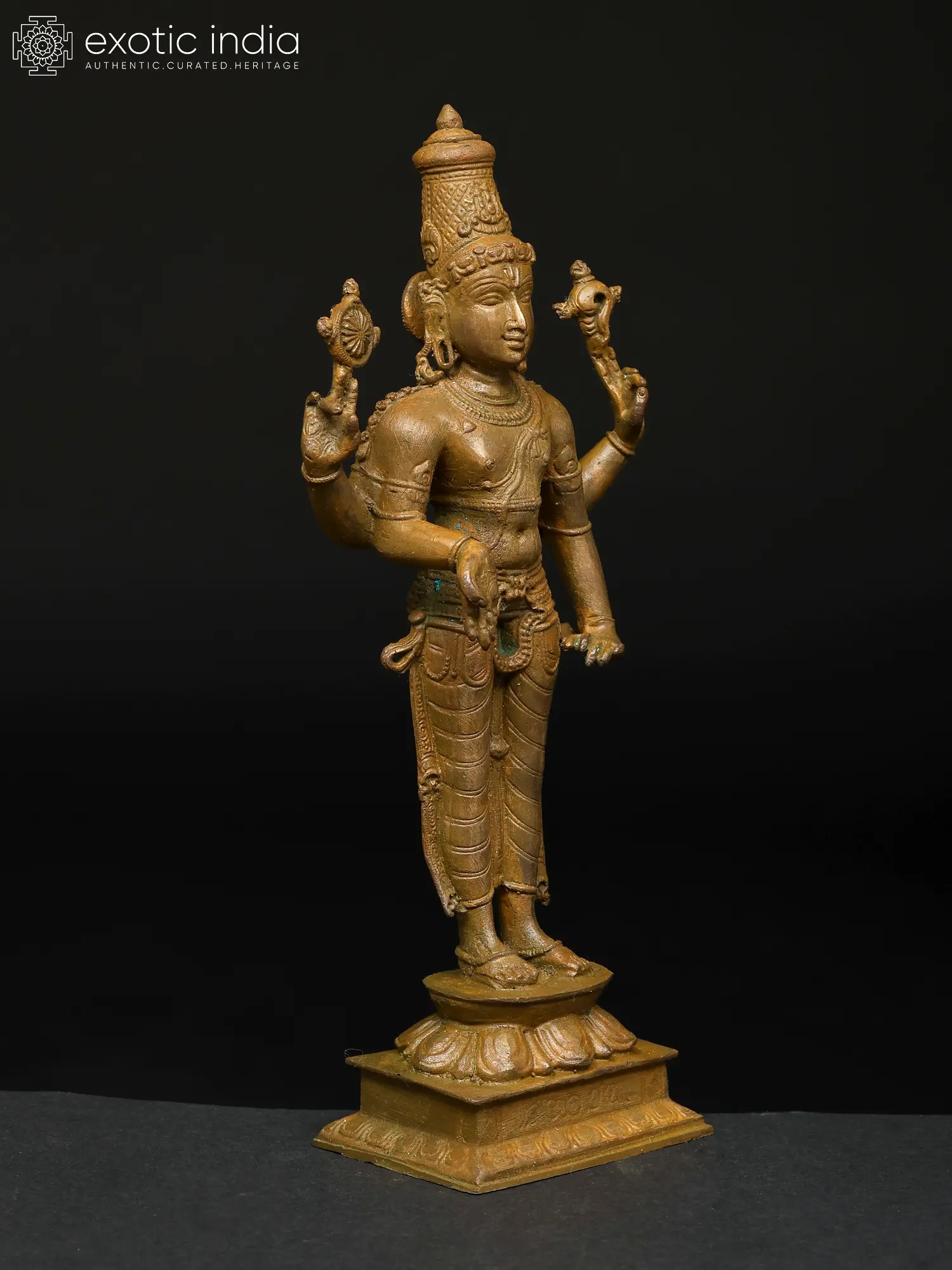 13" Bronze Standing Lord Vishnu Panchaloha Bronze Statue from Swamimalai | Madhuchista Vidhana (Lost-Wax)