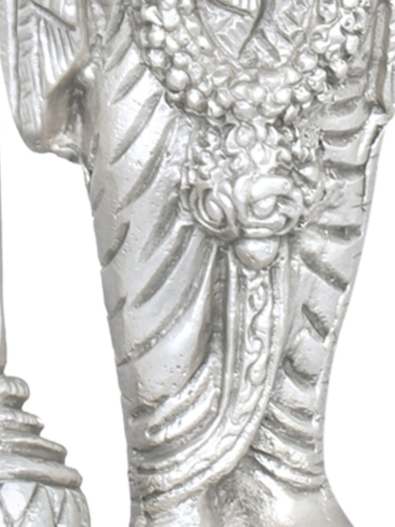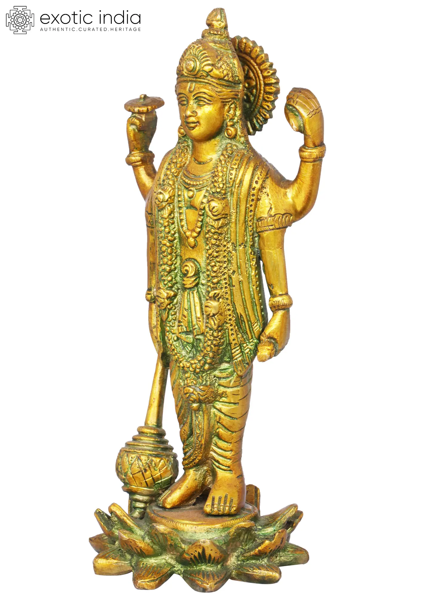 The portrayal of Chaturbhuja Swami Vishnu in brass signifies the omnipresent nature and divine power of Vishnu. This sculpture captures the four-armed form of Vishnu, symbolising his omnipresence and cosmic influence. The intricate details within this sculpture foster an ambiance of divine presence and power, encouraging viewers to reflect on the cosmic influence and the omnipresence of Swami Vishnu. Each detail invites contemplation on the all-pervading nature and the cosmic influence of Lord Vishnu, creating an ambiance of divine omnipresence and influence.