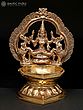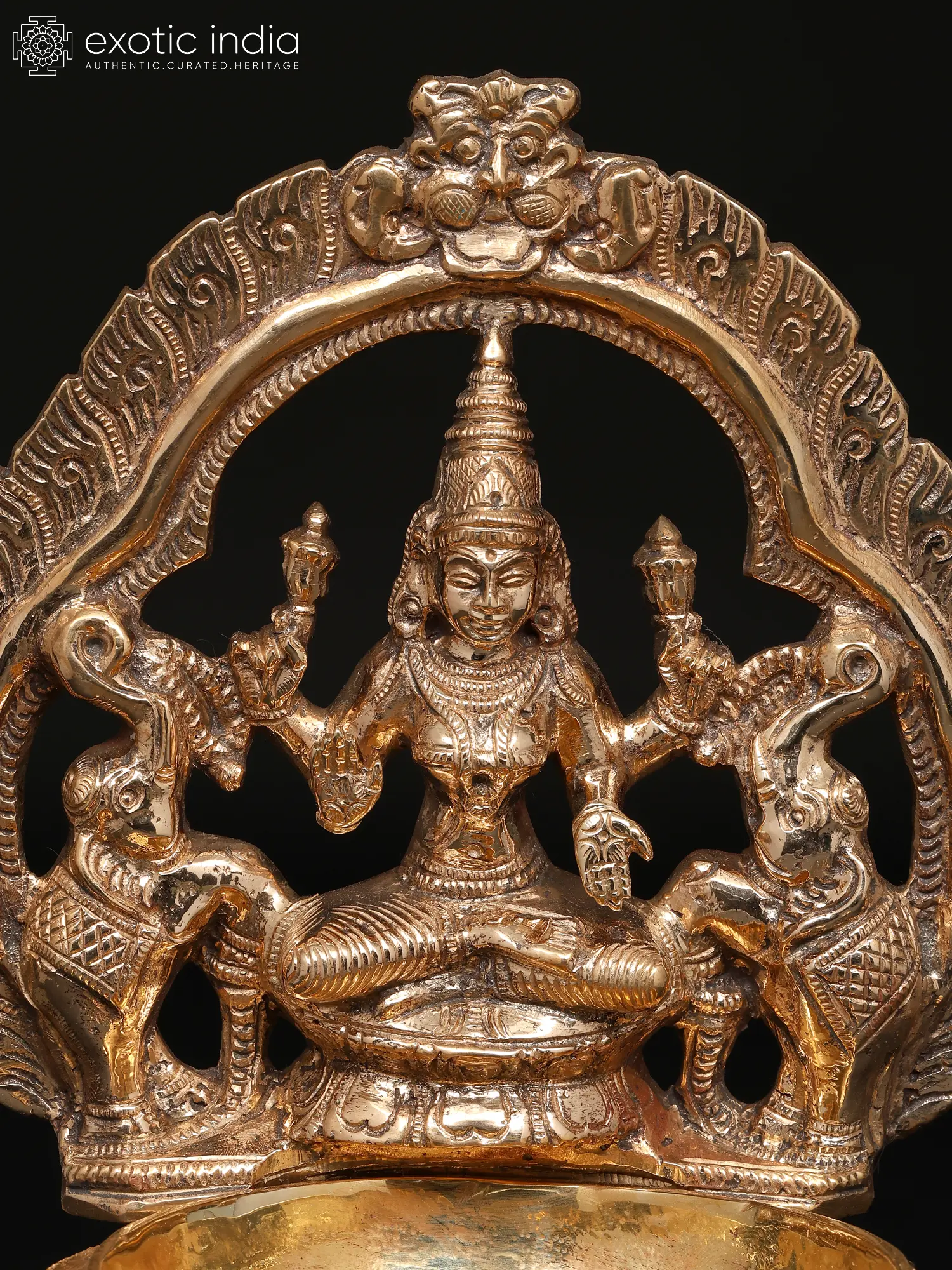 13" Four-Armed Goddess Lakshmi Seated on Kirtimukha Throne | Hoysala Bronze Statue