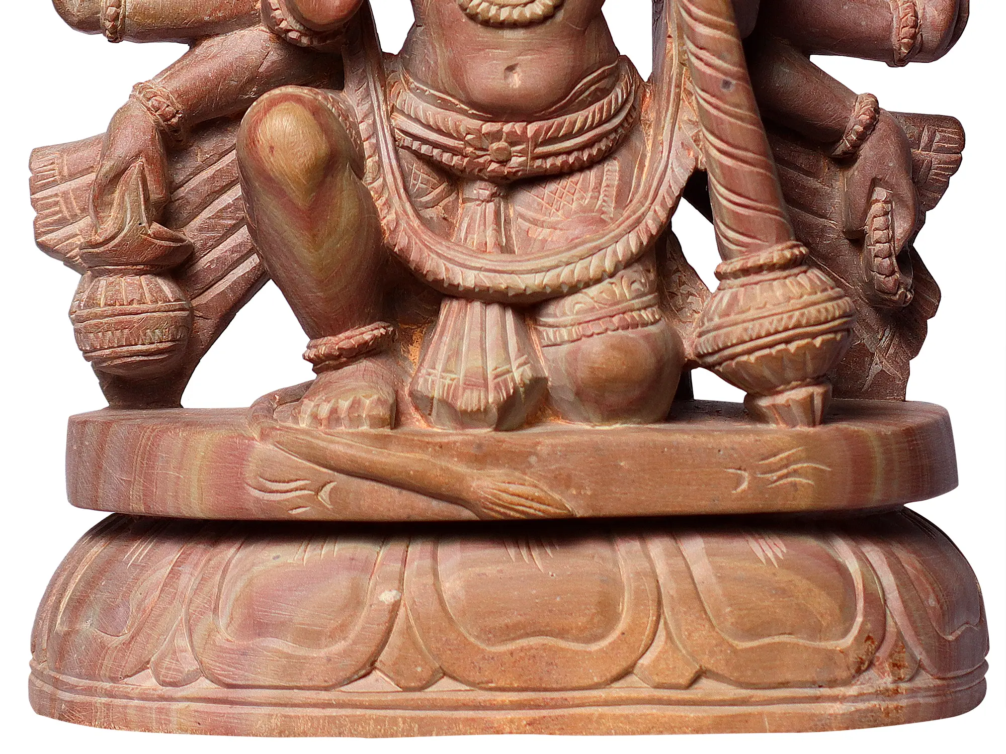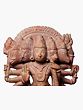 Hailing from the rich artistic traditions of Odisha, this sculpture is a testament to the region's heritage of stone carving. The skillful rendition of the multiple faces, the dynamic posture, and the decorative elements, including the intricate weaponry and adornments, highlight the profound skill of the artisans. The natural beauty of the pink stone itself adds a unique warmth and character to the piece, making it a striking addition to any spiritual space or collection of fine art. This statue is not merely an object of worship but a masterpiece that bridges the gap between the earthly and the divine.