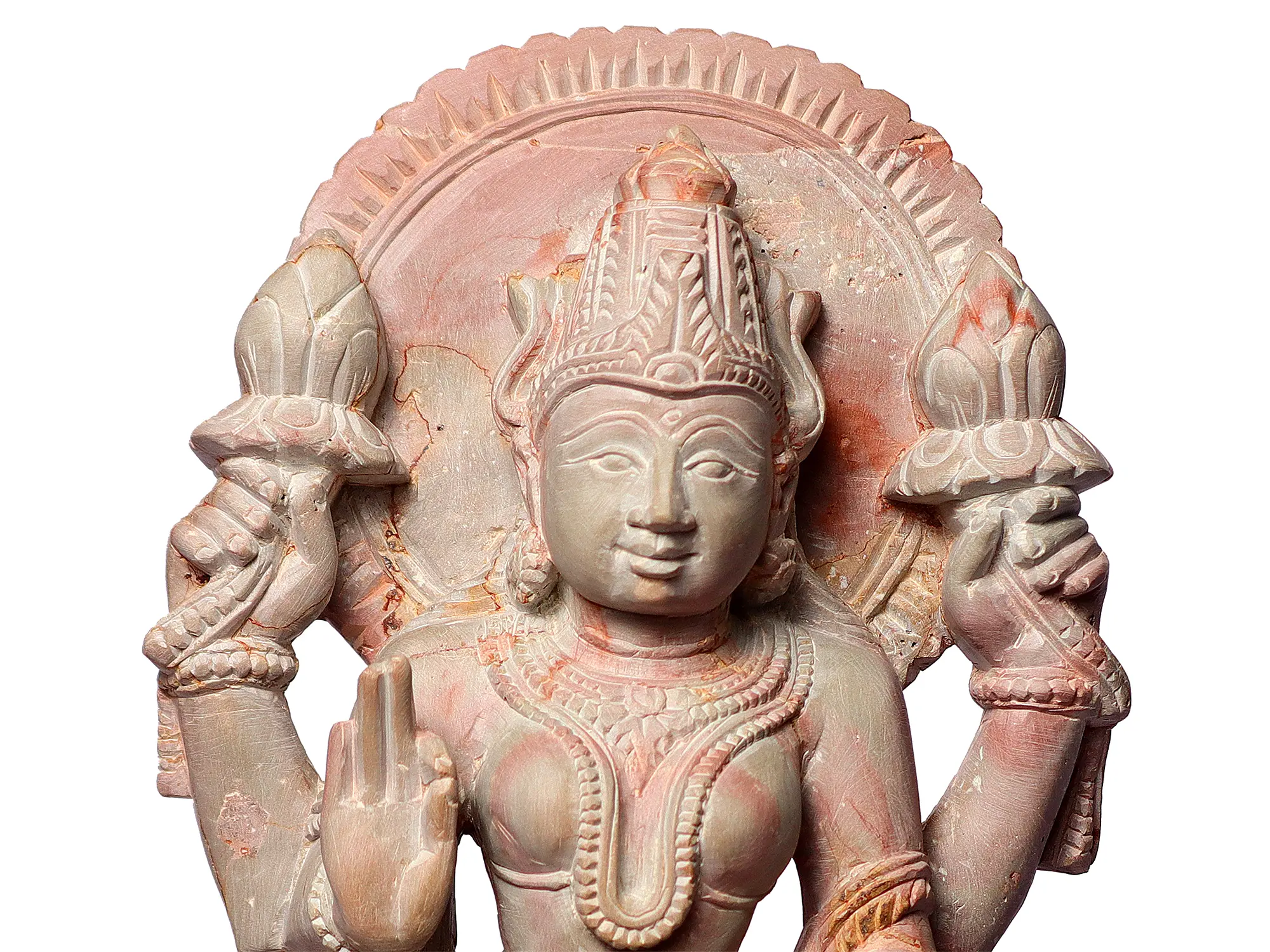 5" Small Brass Lord Vishnu with Shridevi and Bhudevi