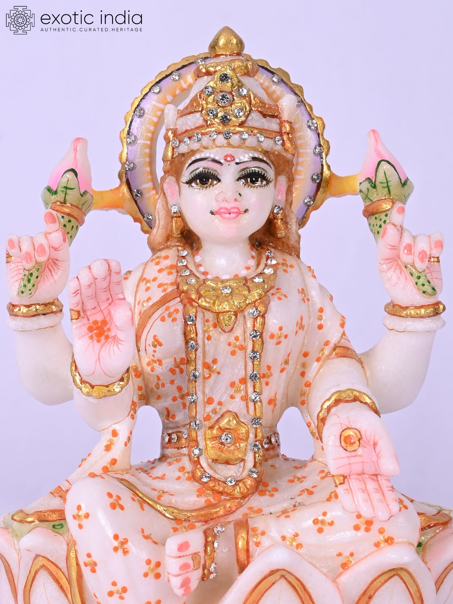 18" Hindu Goddess Lakshmi Statue in Super White Makrana Marble