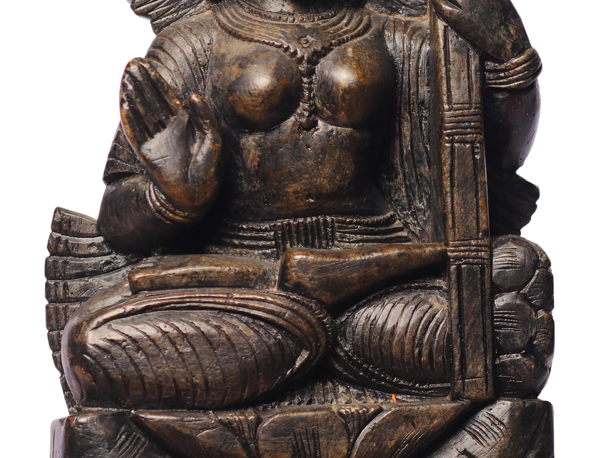 8" Goddess Saraswati Holding Veena | Red Stone Statue | Hand Carved