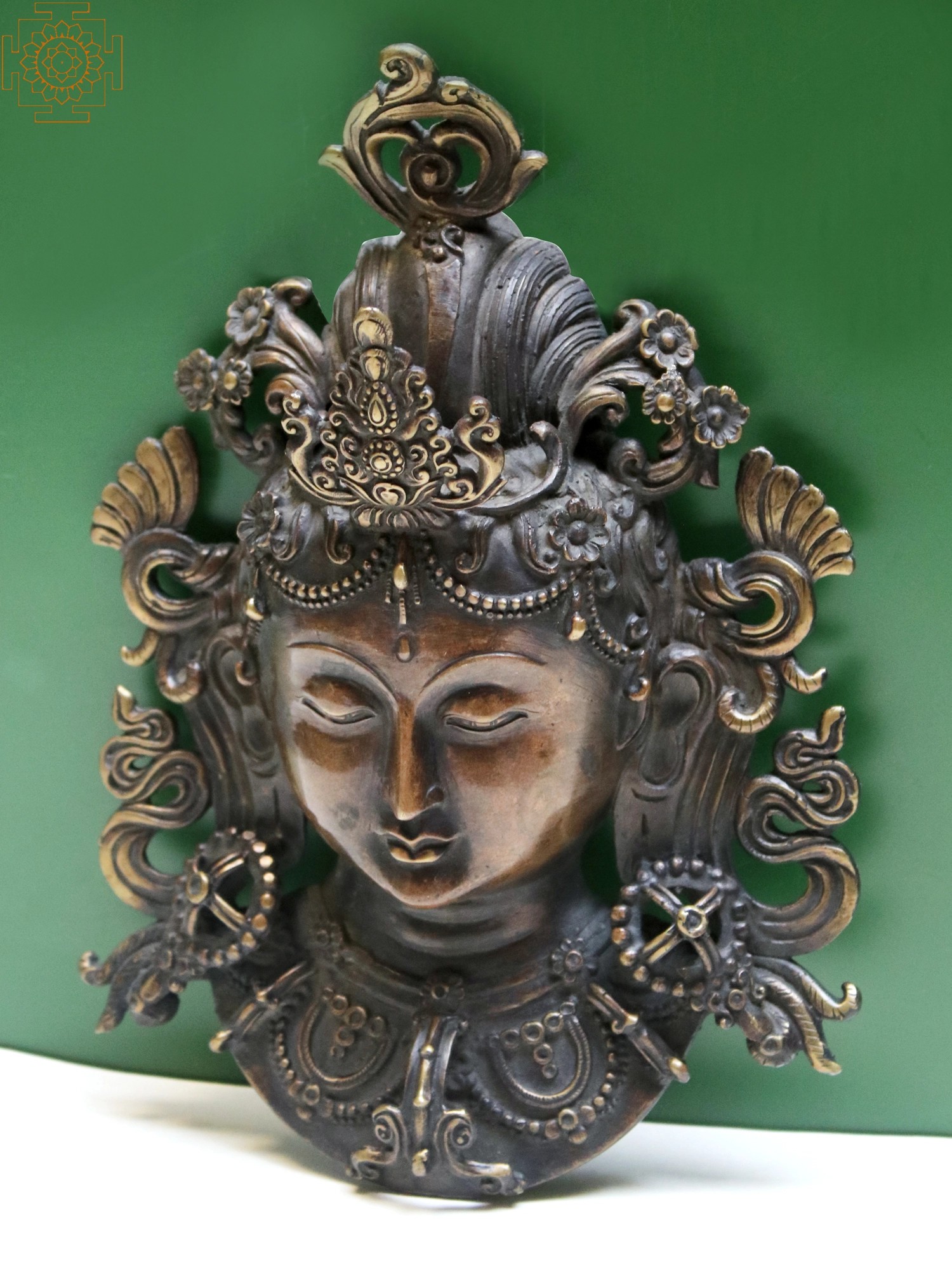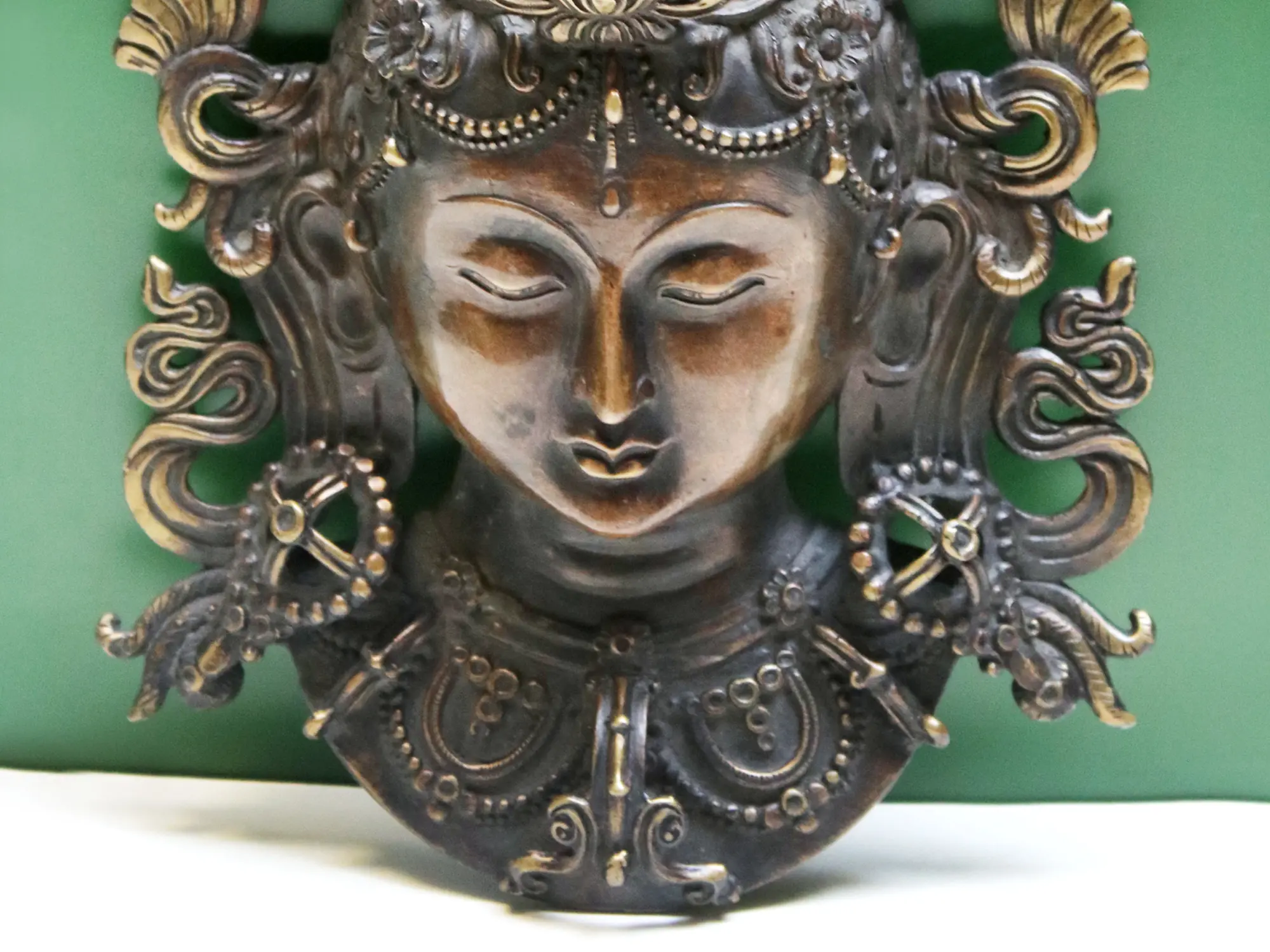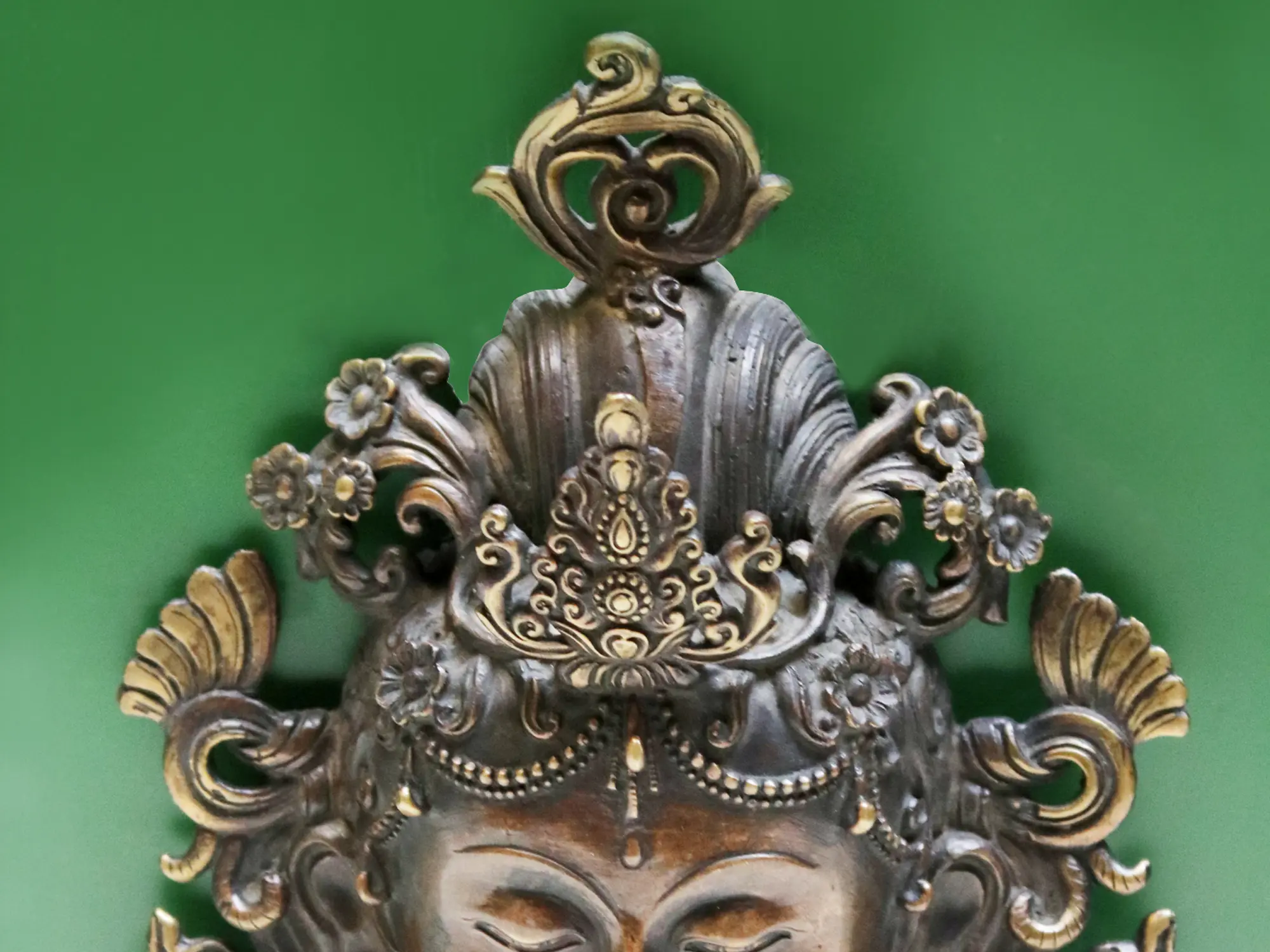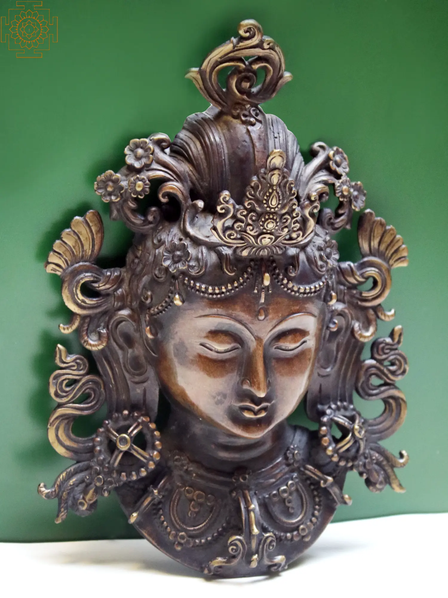 Copper Idol of Goddess Tara Head With Five Crested Crown
