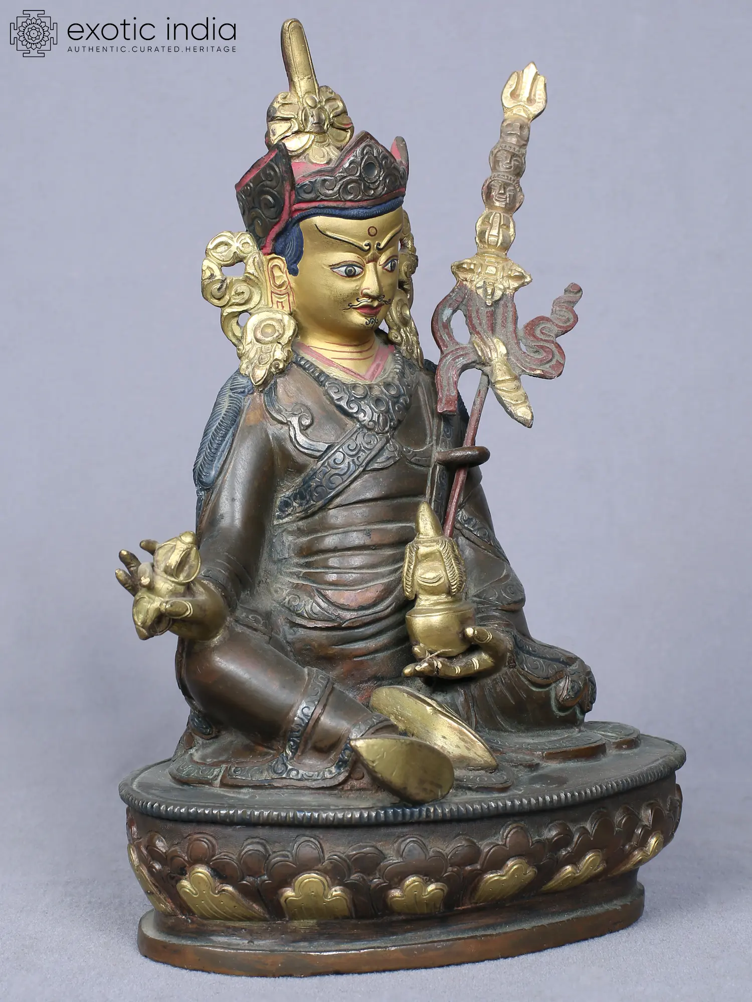8" Guru Padmasambhava Idol | Copper Statue Gilded with Gold
