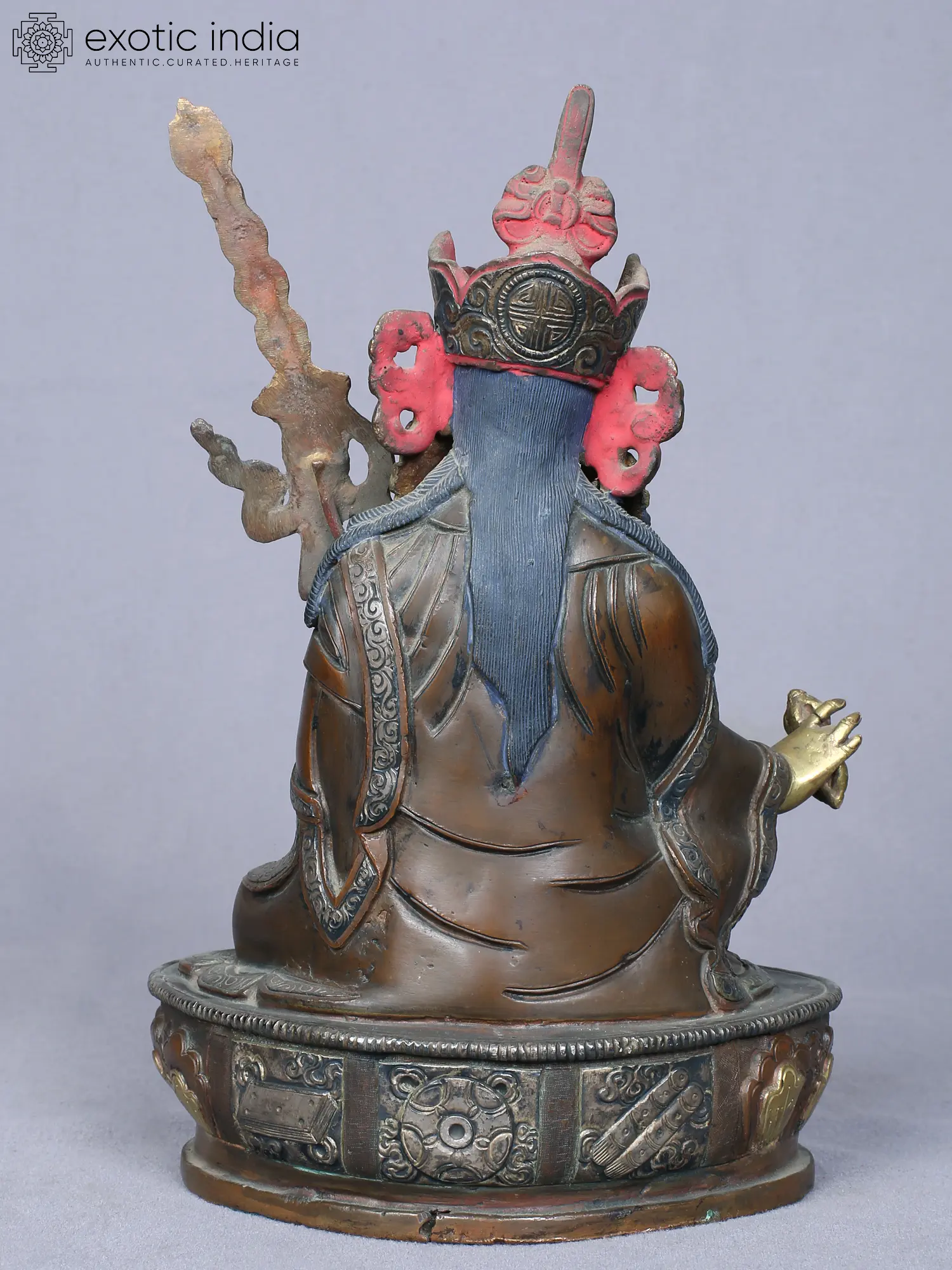 This exquisite statue depicts Guru Padmasambhava, the revered "Lotus-Born" master who is credited with establishing Buddhism in Tibet. Crafted from durable copper and meticulously gilded with gold, this 8-inch idol captures the serene yet powerful presence of this pivotal figure in Vajrayana Buddhism. Padmasambhava, known as Guru Rinpoche, is not just a historical figure but a deeply spiritual entity, often invoked for protection, wisdom, and the removal of obstacles. His arrival in Tibet in the 8th century is a celebrated event, marking the infusion of tantric practices and the dissemination of Buddhist teachings that continue to flourish today.