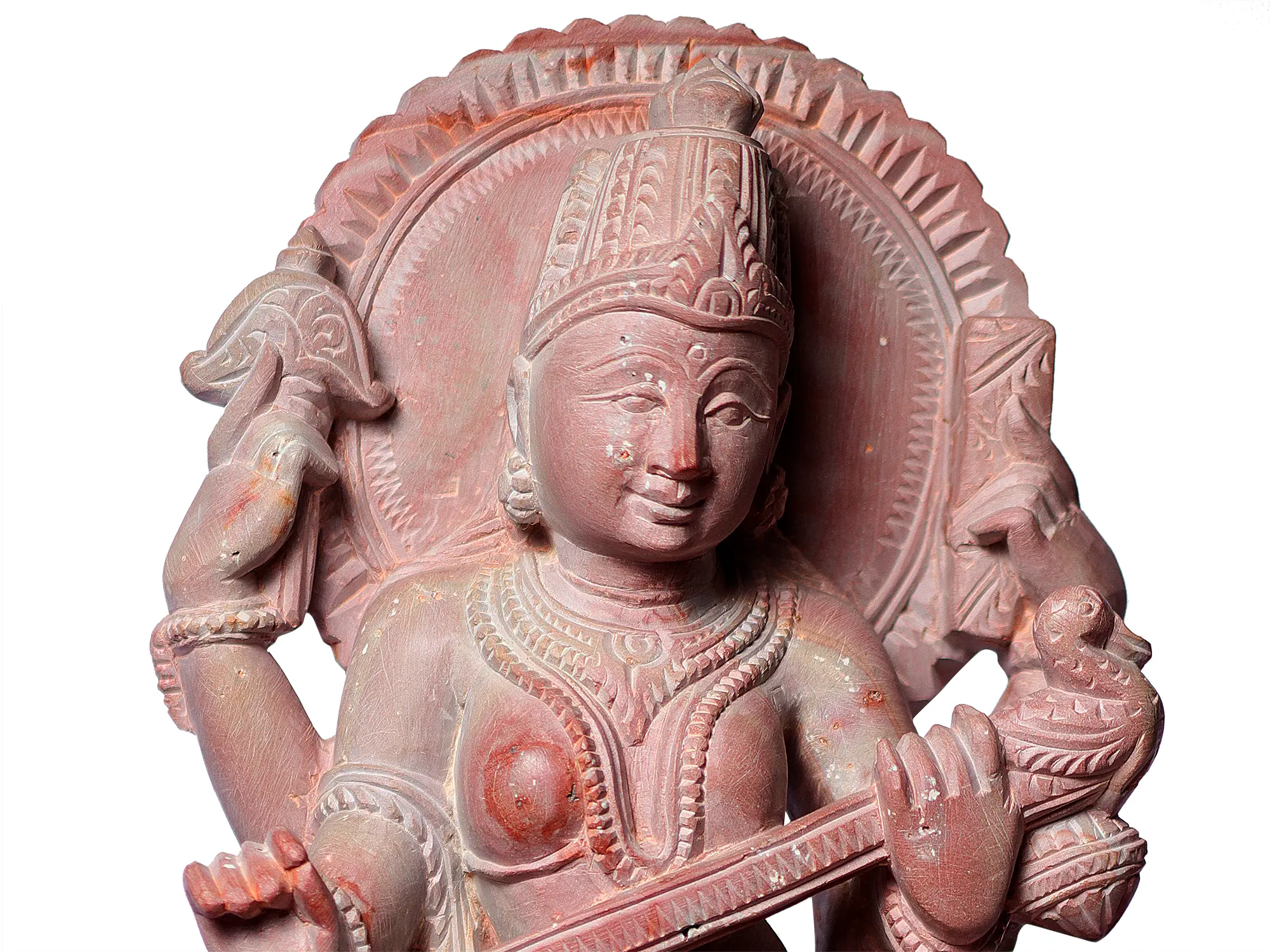8" Goddess Saraswati Standing with Veena | Orissa Stone Statue | Hand Carved