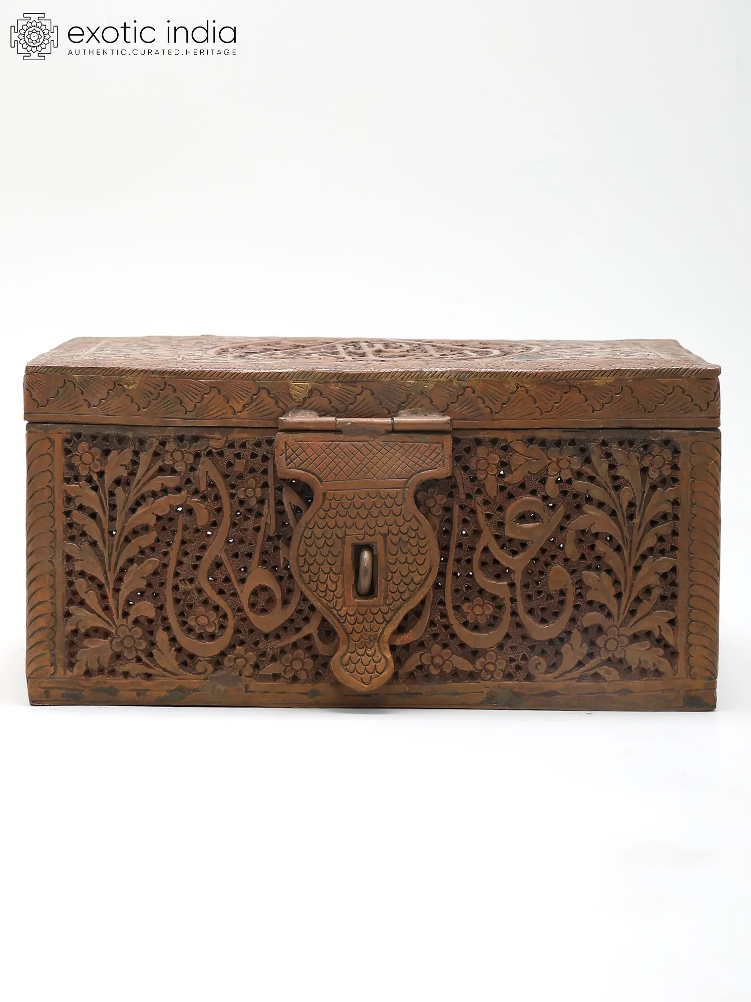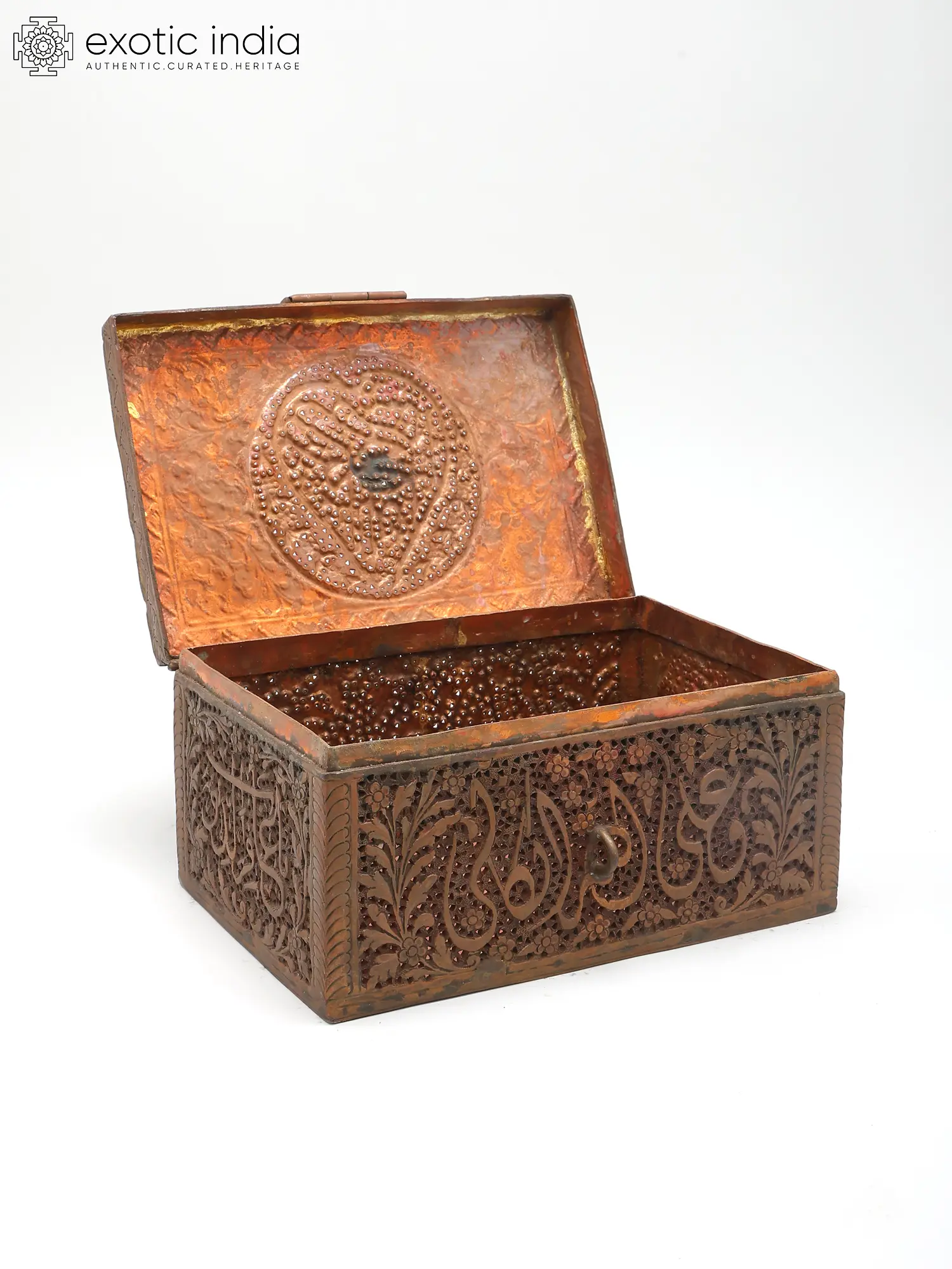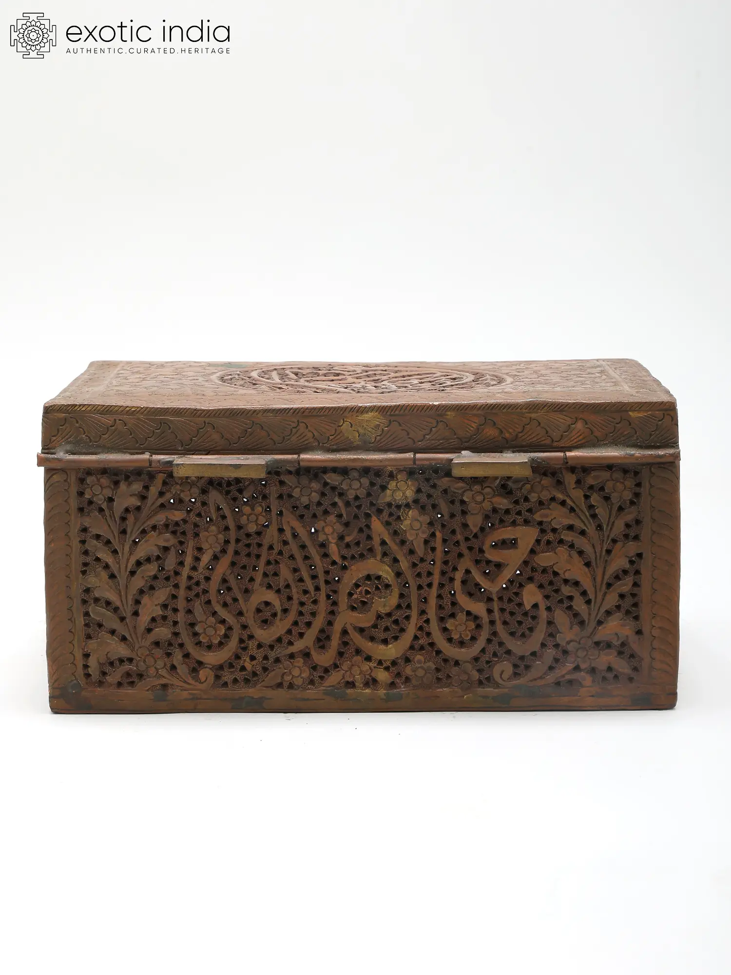 This exquisite brass box is a masterpiece of traditional Indian craftsmanship, imbued with the profound beauty and spiritual resonance of Islamic art. Handcrafted in India, it serves not merely as a container, but as a venerated vessel, a tangible connection to centuries of artistic and religious heritage. The intricate carvings that adorn its surfaces are a visual symphony, a testament to the skill of artisans who have honed their craft through generations.