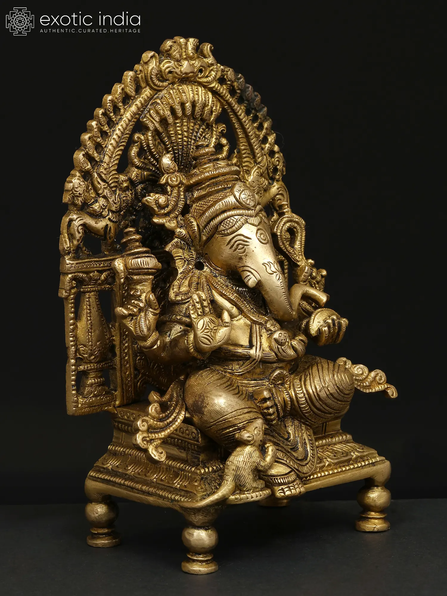 8" King Ganesha In Brass | Handmade | Made In India