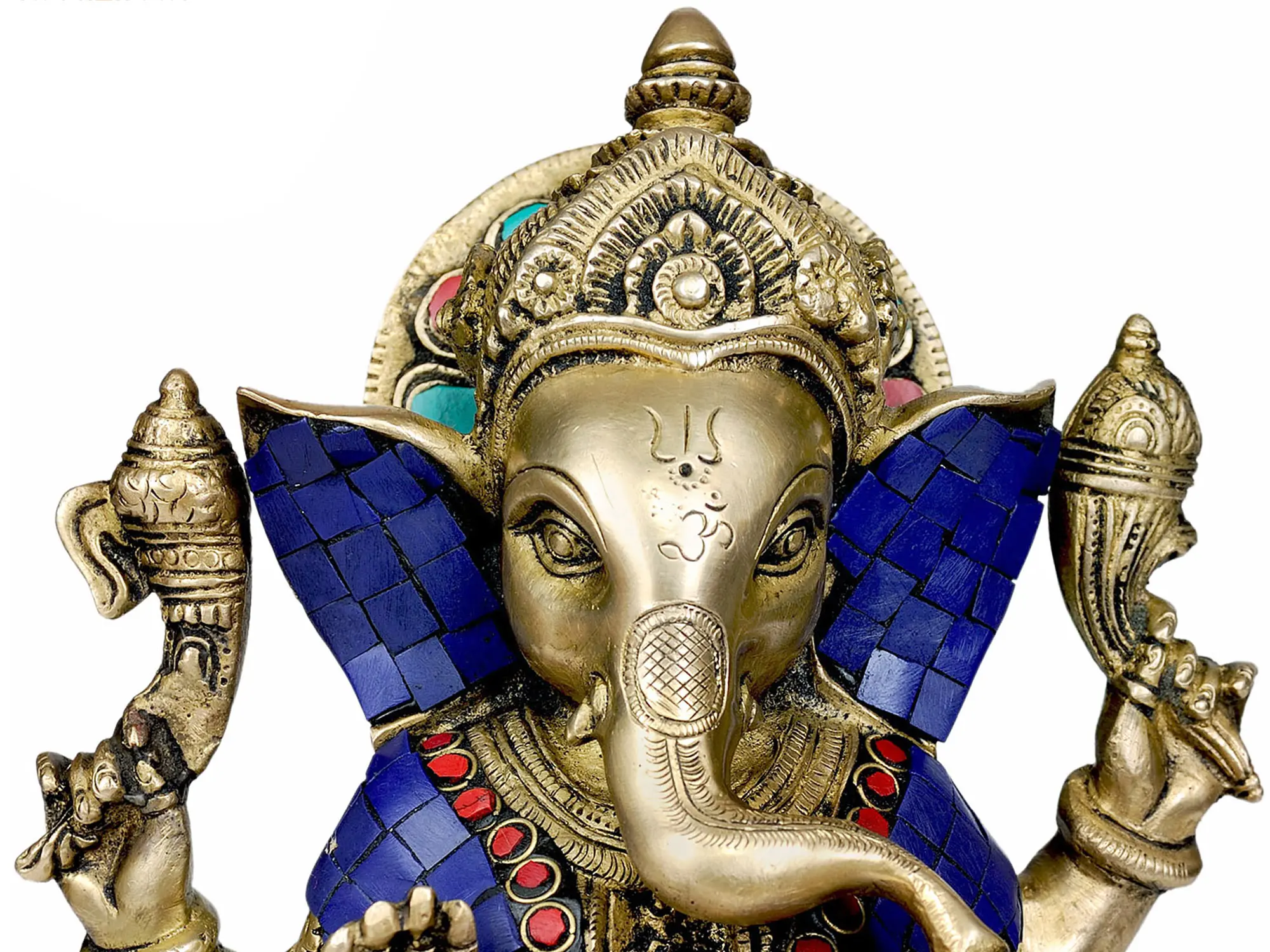This brass Ganesha statue is a testament to the skill and artistry of Indian craftsmen. Meticulously handcrafted, the statue reflects the rich cultural heritage and spiritual traditions of India. The intricate detailing, from the delicately carved features of Ganesha to the carefully placed lapis lazuli inlays, showcases the dedication and expertise of the artisans who created it. Owning this piece is not only acquiring a beautiful work of art but also supporting a legacy of craftsmanship passed down through generations. It serves as a tangible connection to the vibrant spiritual landscape of India.