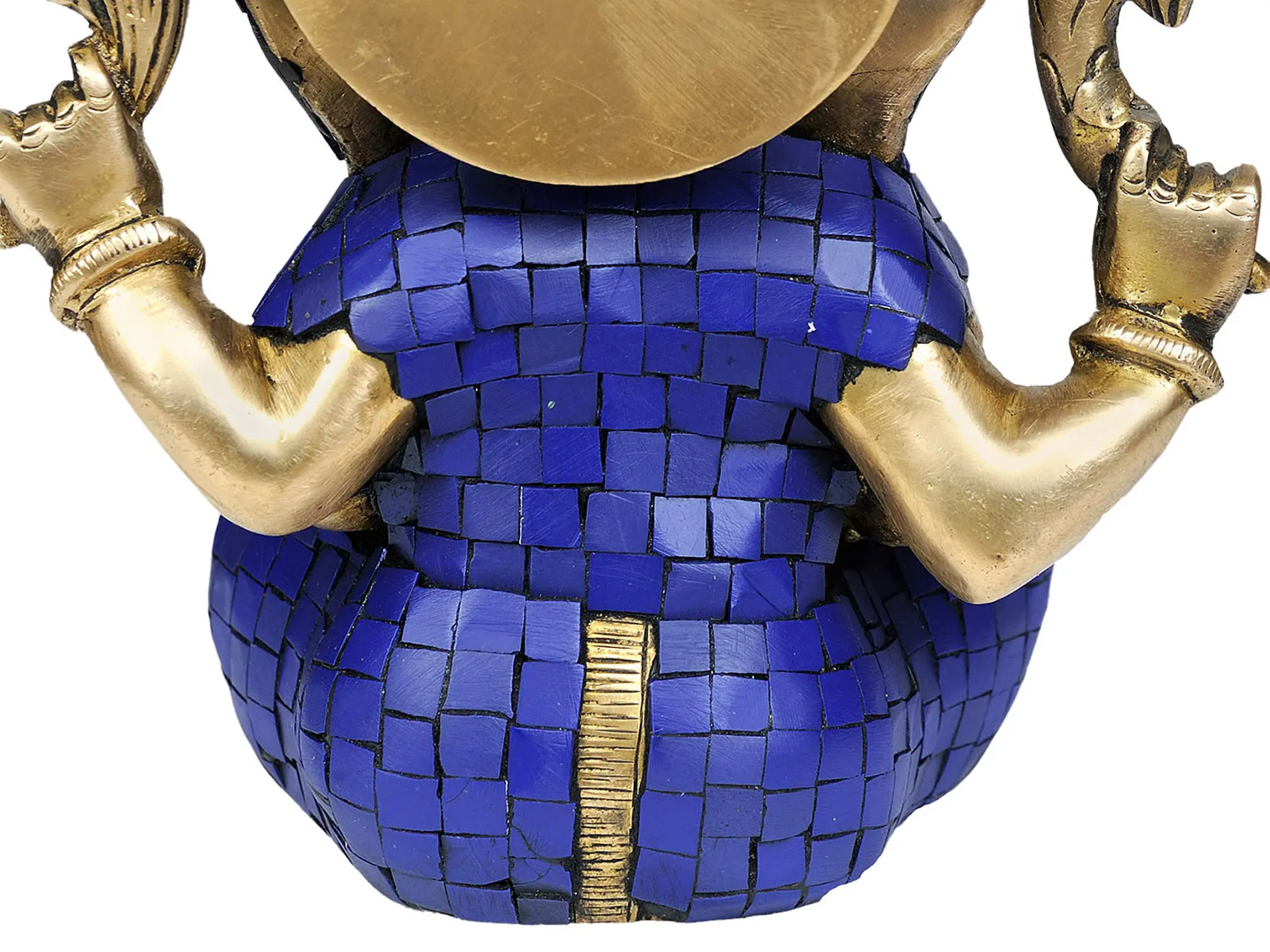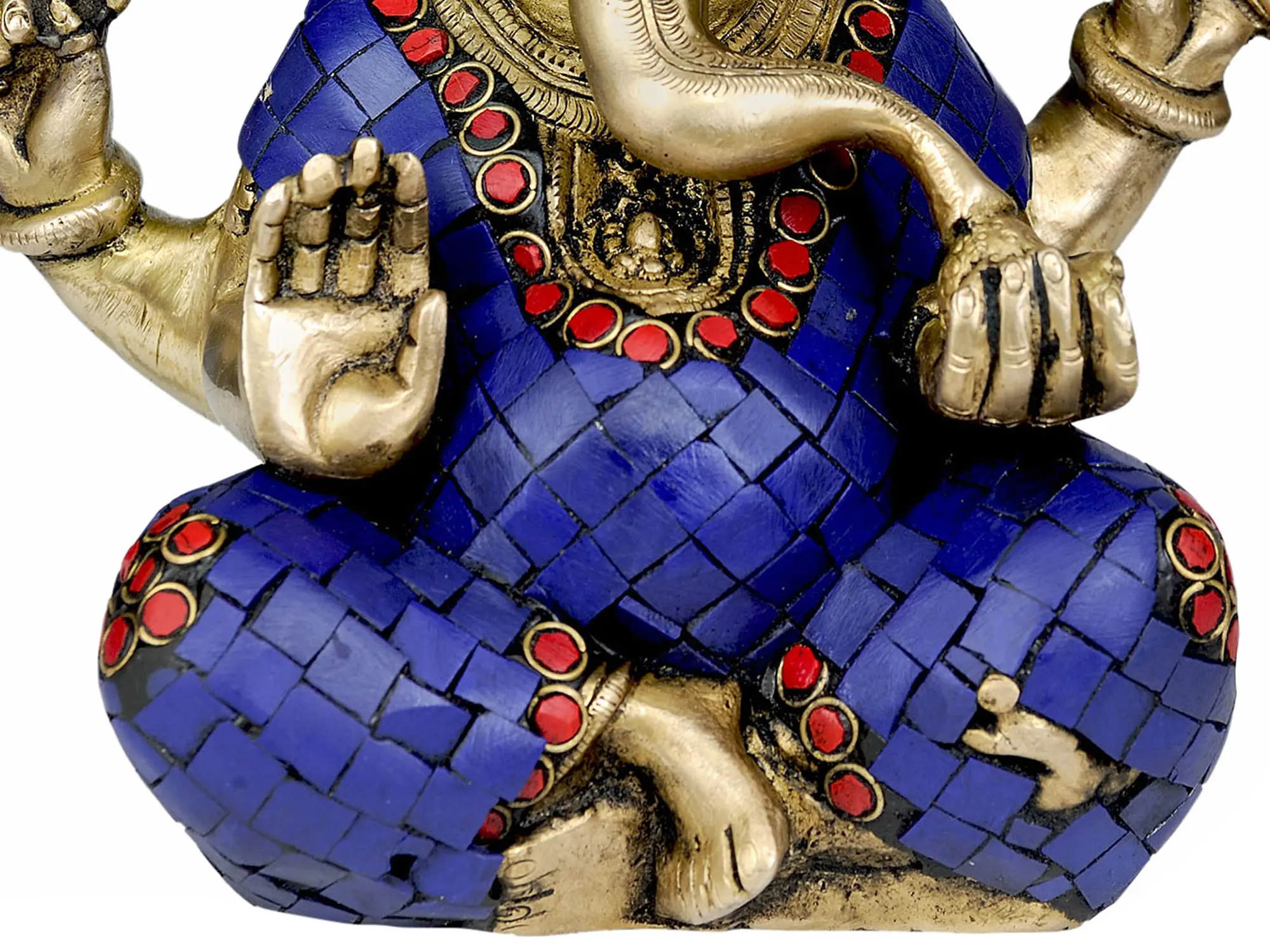 8" Lapis Ganesha Granting Abhaya In Brass | Handmade | Made In India