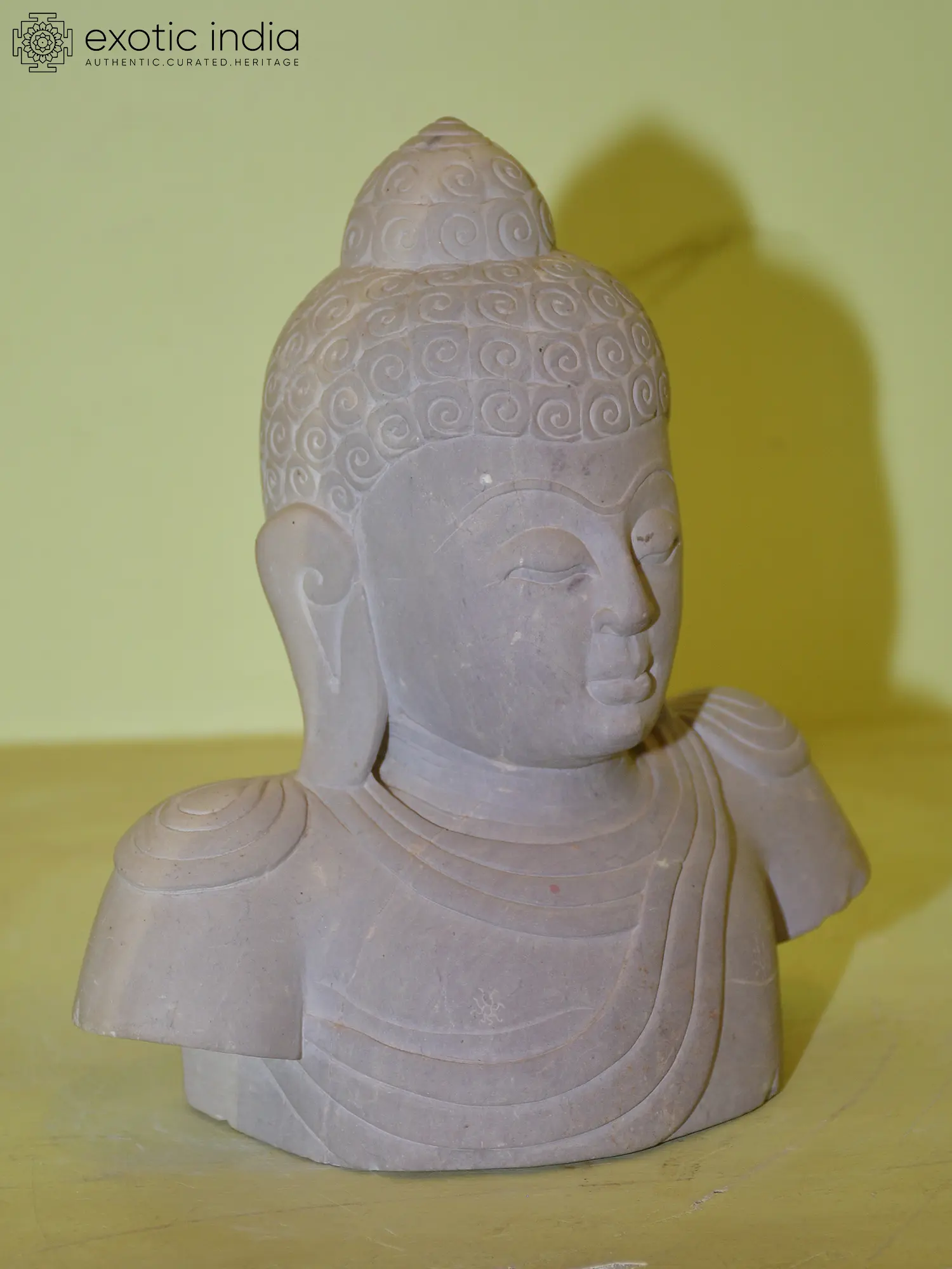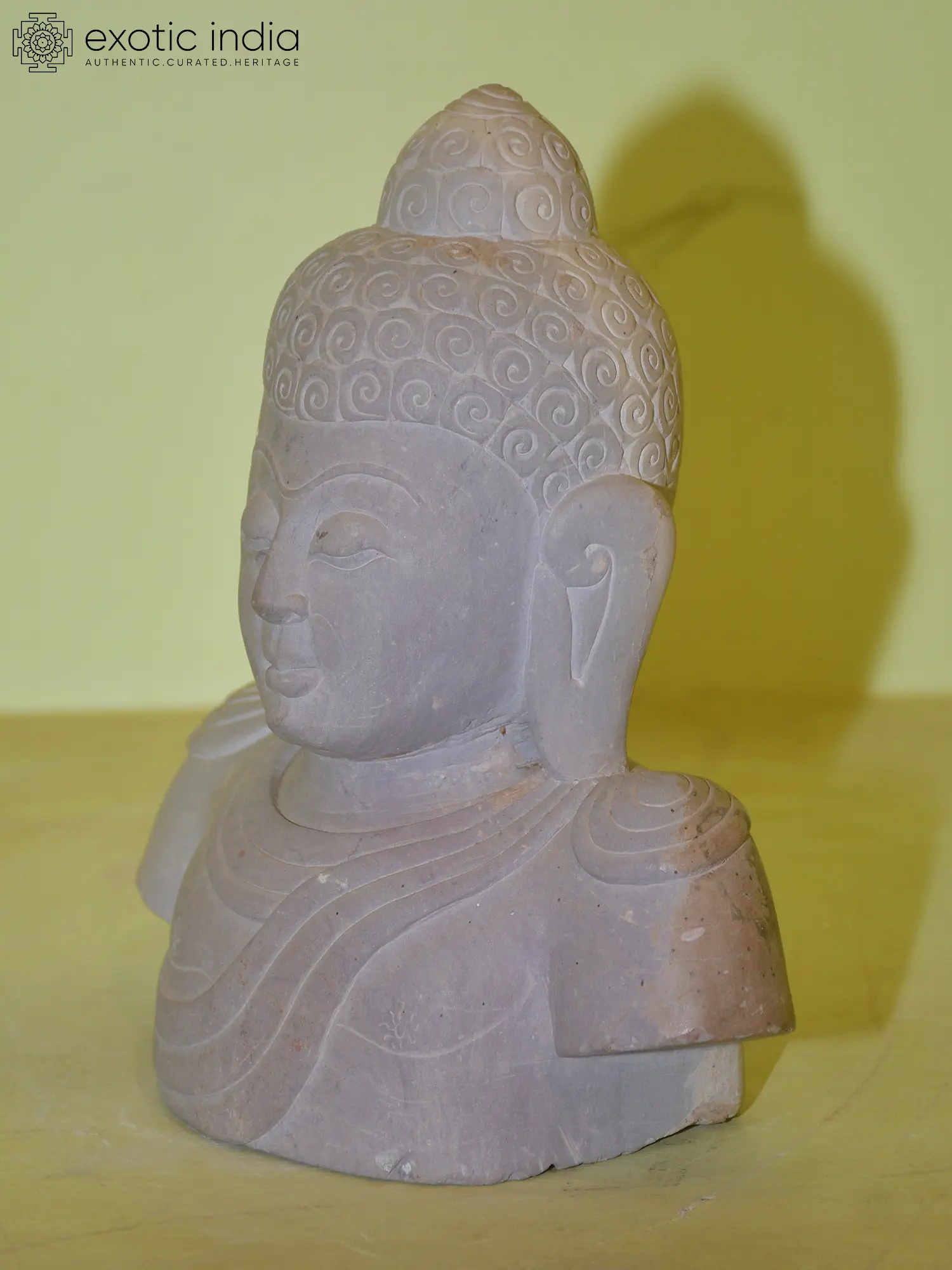 This 8-inch Buddha bust is more than just a decorative item; it is a piece of curated heritage, designed to bring a sense of sacredness and aesthetic beauty into your life. Its compact size makes it versatile, perfect for a mantelpiece, a bookshelf, or a dedicated altar. Whether you are a devout practitioner, an admirer of Buddhist art, or simply seeking a symbol of peace and mindfulness, this hand-carved Orissa stone sculpture offers a tangible connection to ancient traditions and the timeless pursuit of inner harmony. Its authentic craftsmanship ensures that each piece carries a unique character, making it a truly special addition to your personal sanctuary.