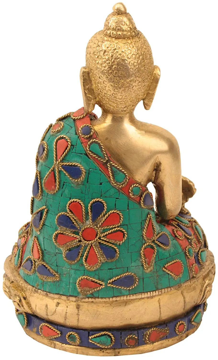 7" Brass Medicine Buddha Idol with Inlay work | Handmade Tibetan Buddhist Statue