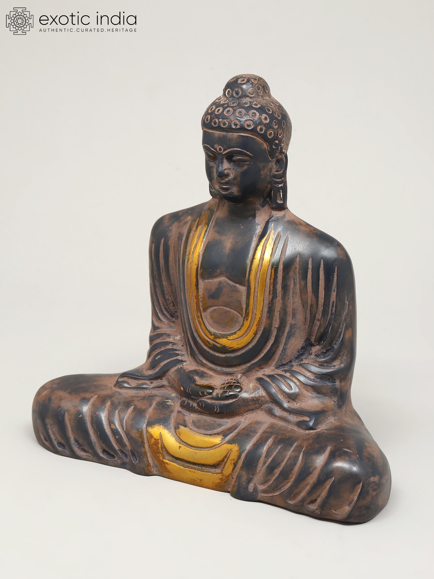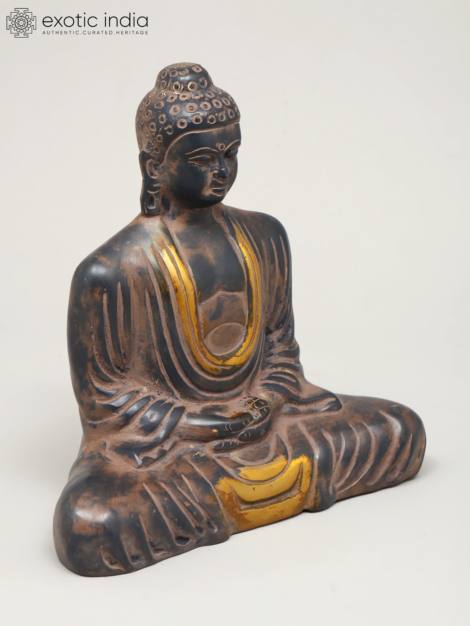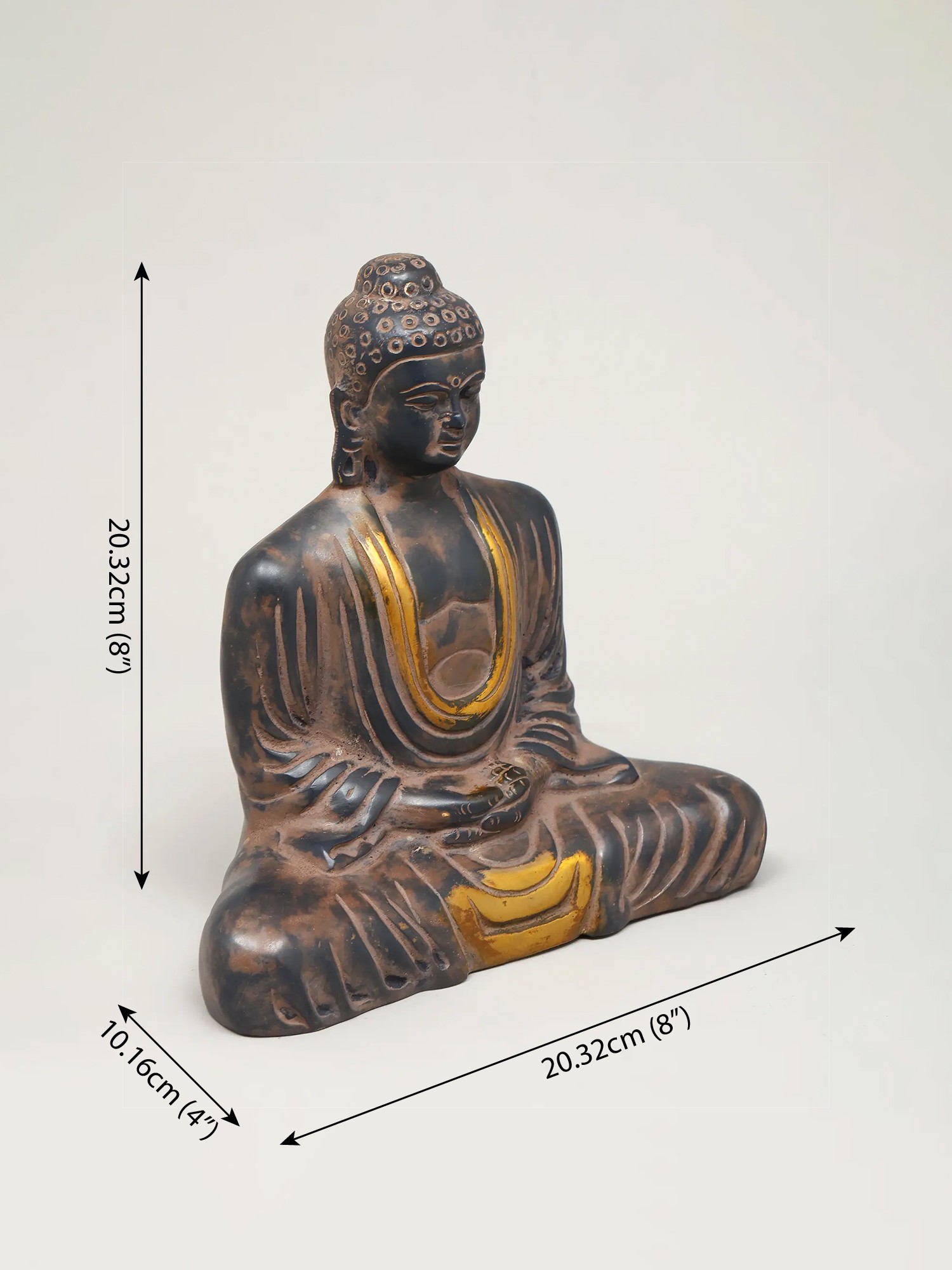 9" Stylized Meditation Buddha Idol in Brass | Handmade Buddhist Statues