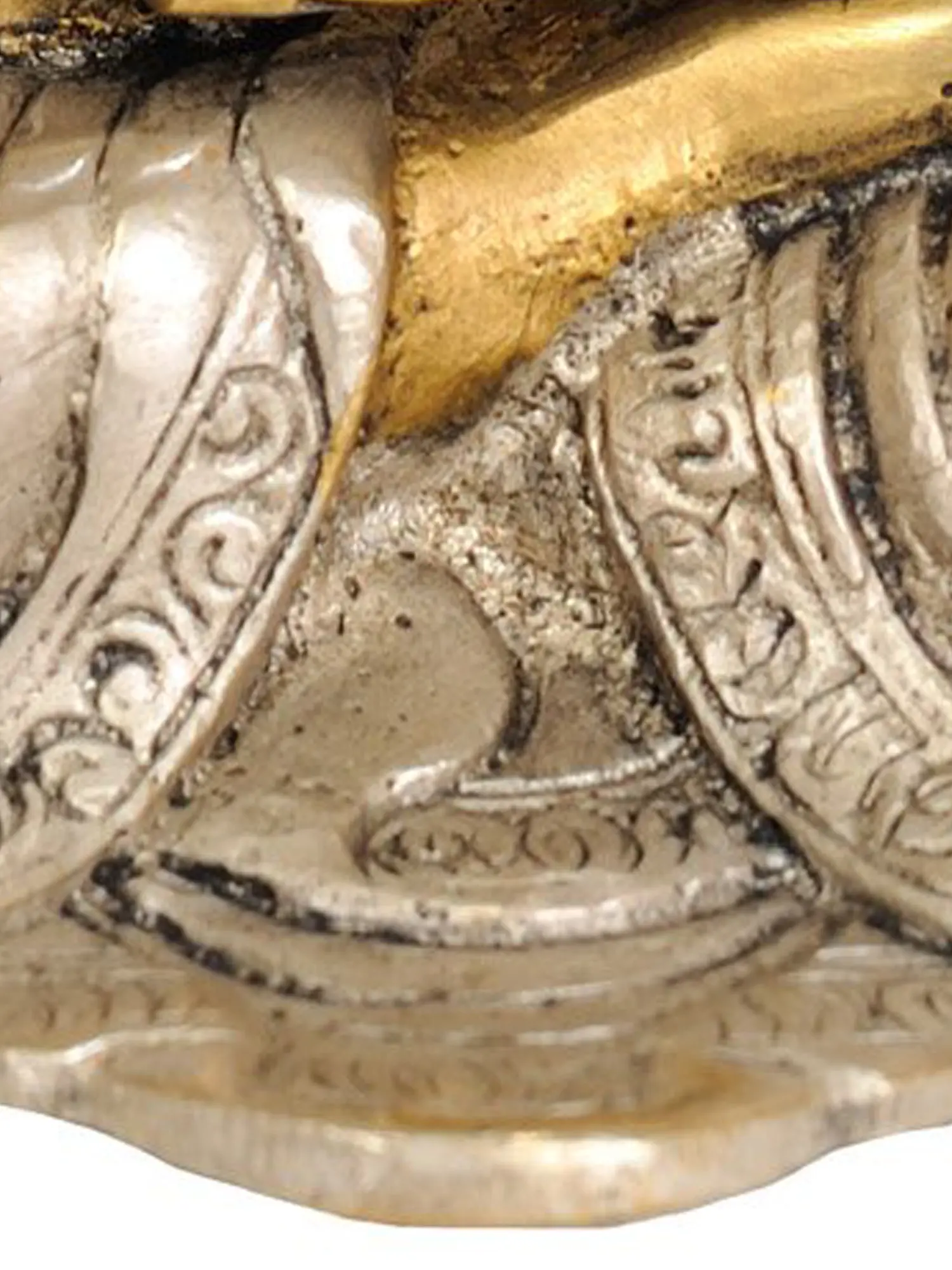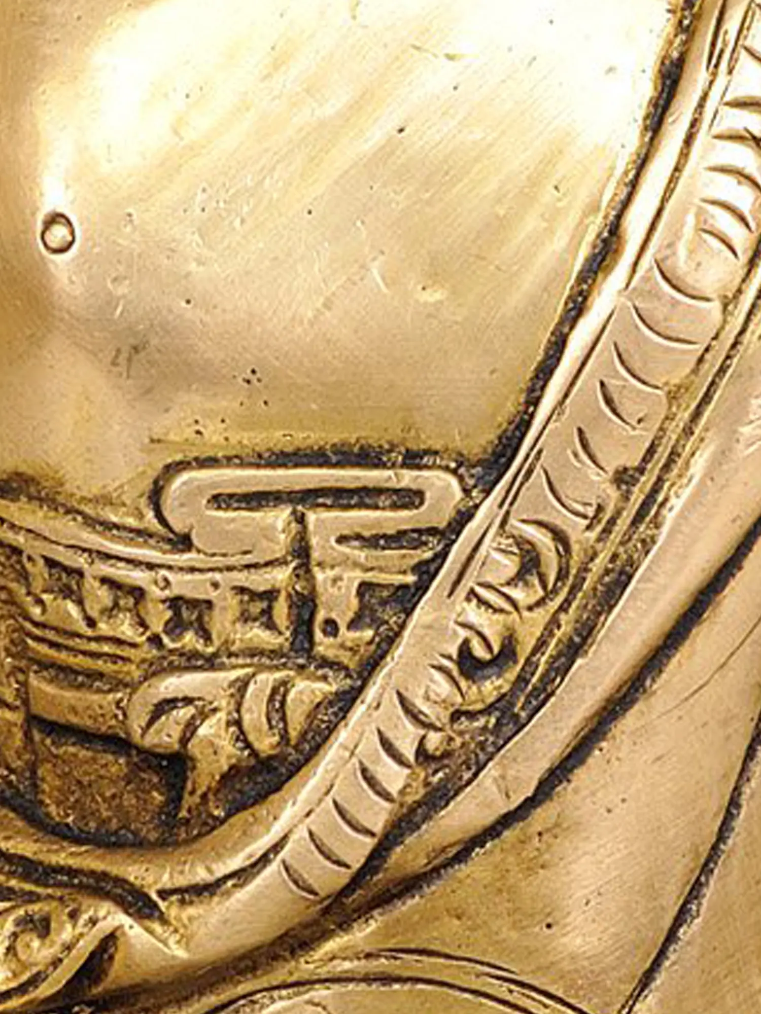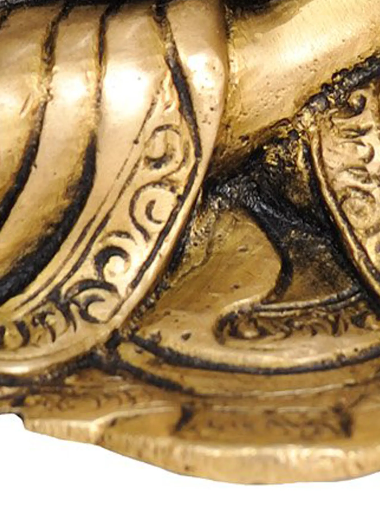 This exquisite brass statue captures Lord Buddha in a moment of profound meditative stillness, embodying the pivotal "Earth Witness" gesture, known as the Bhumisparsha Mudra. Seated in the traditional lotus posture, his serene countenance, with eyes gently closed, invites contemplation and inner peace. The meticulous craftsmanship, evident in every detail from the undulating folds of his robe to the delicate carvings on his shoulders, speaks to the rich heritage of Indian artistry.