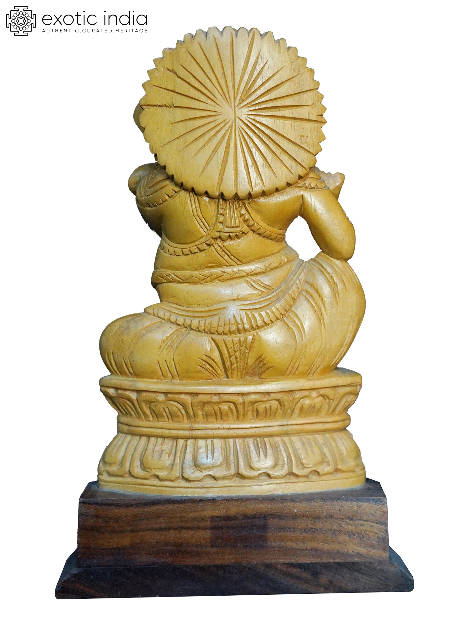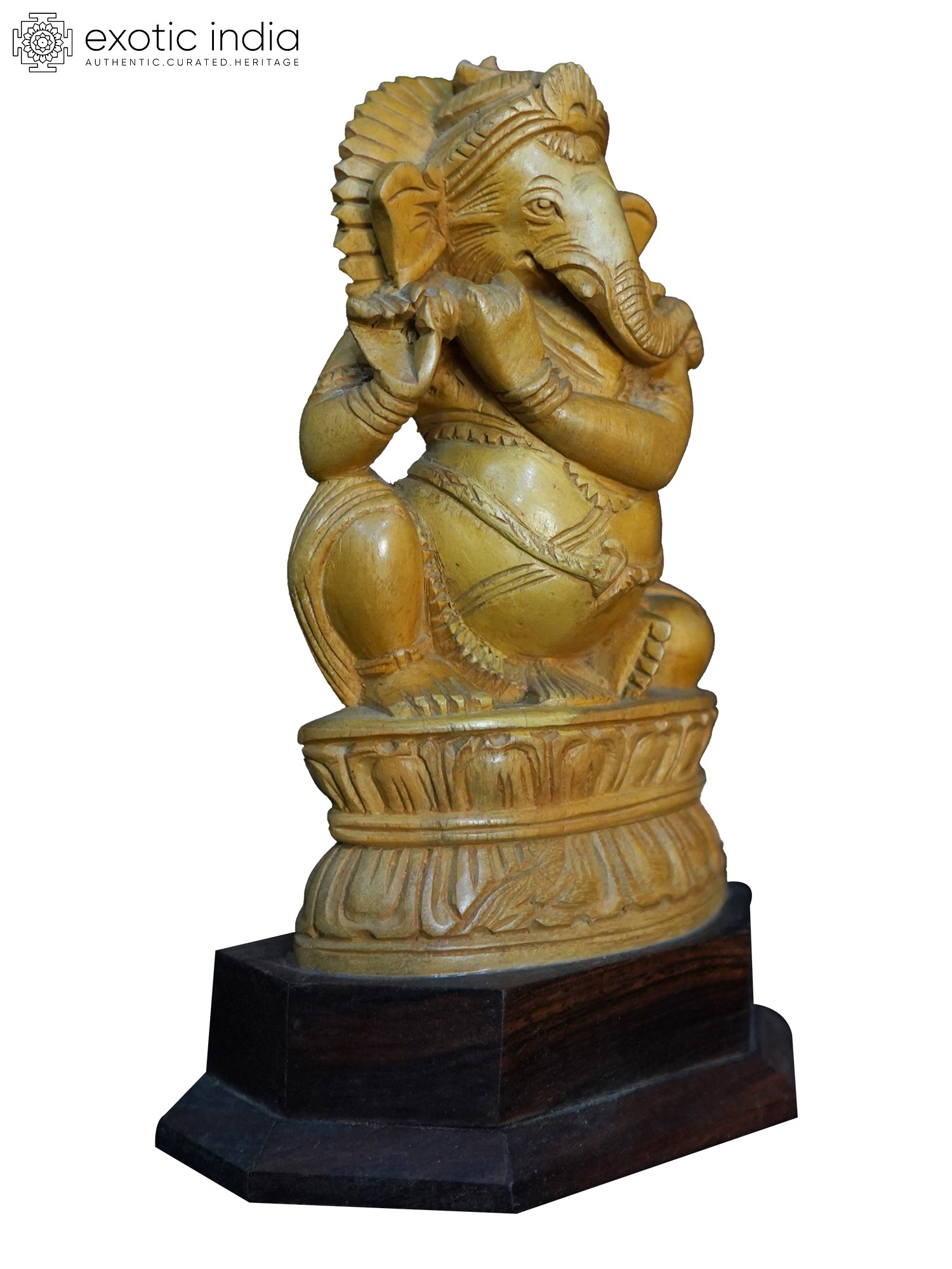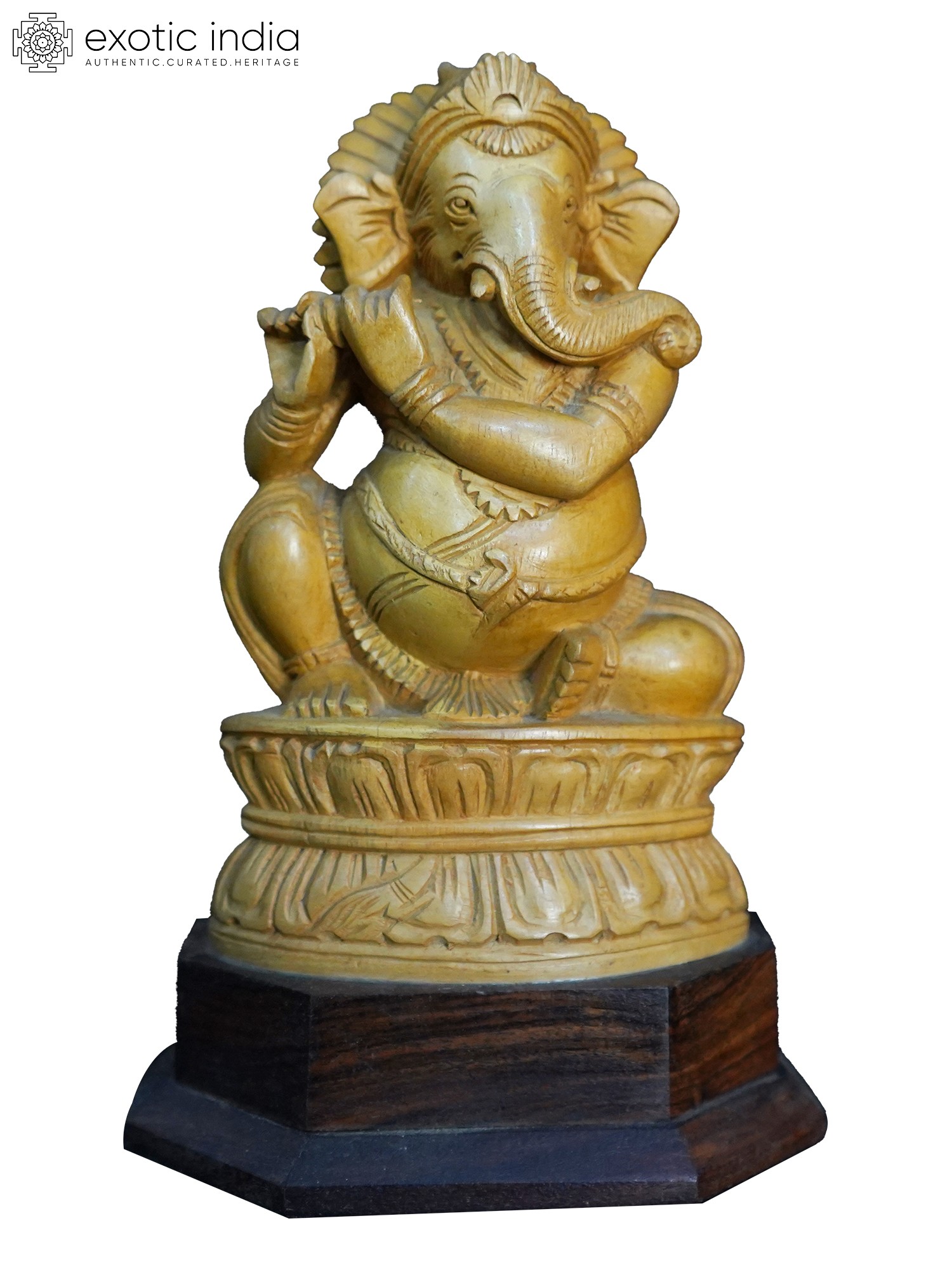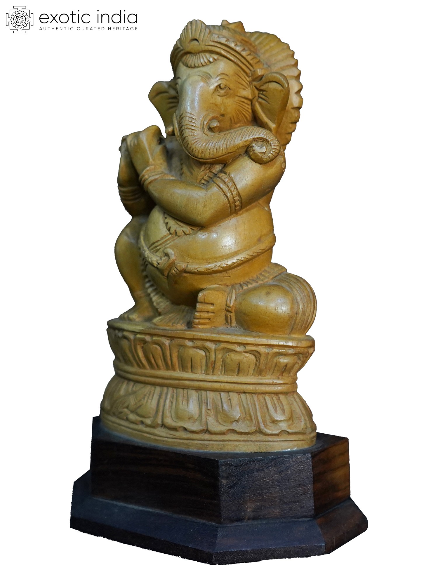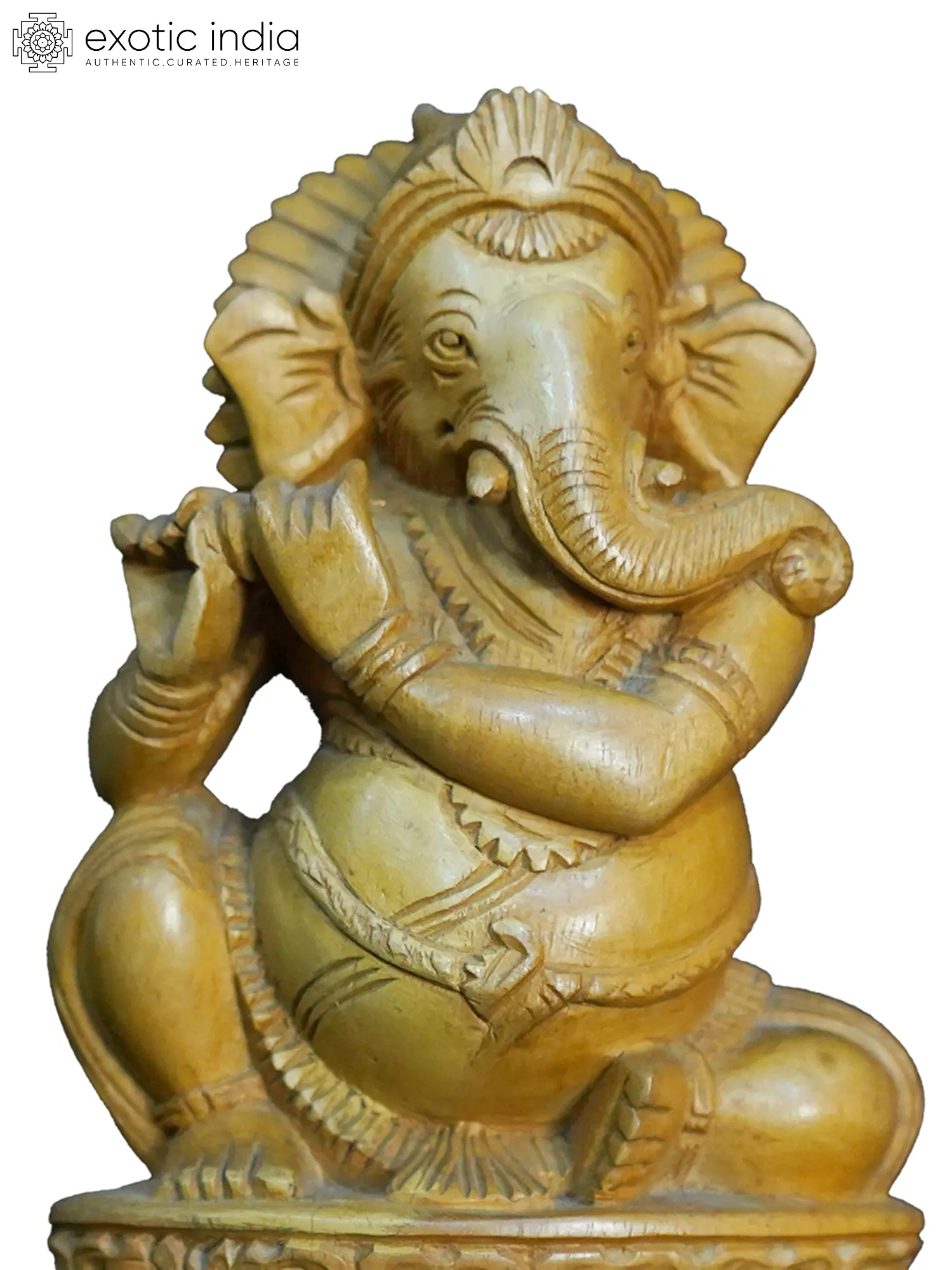 Wooden Sculpture of Lord Ganesha Plays the Shehnai