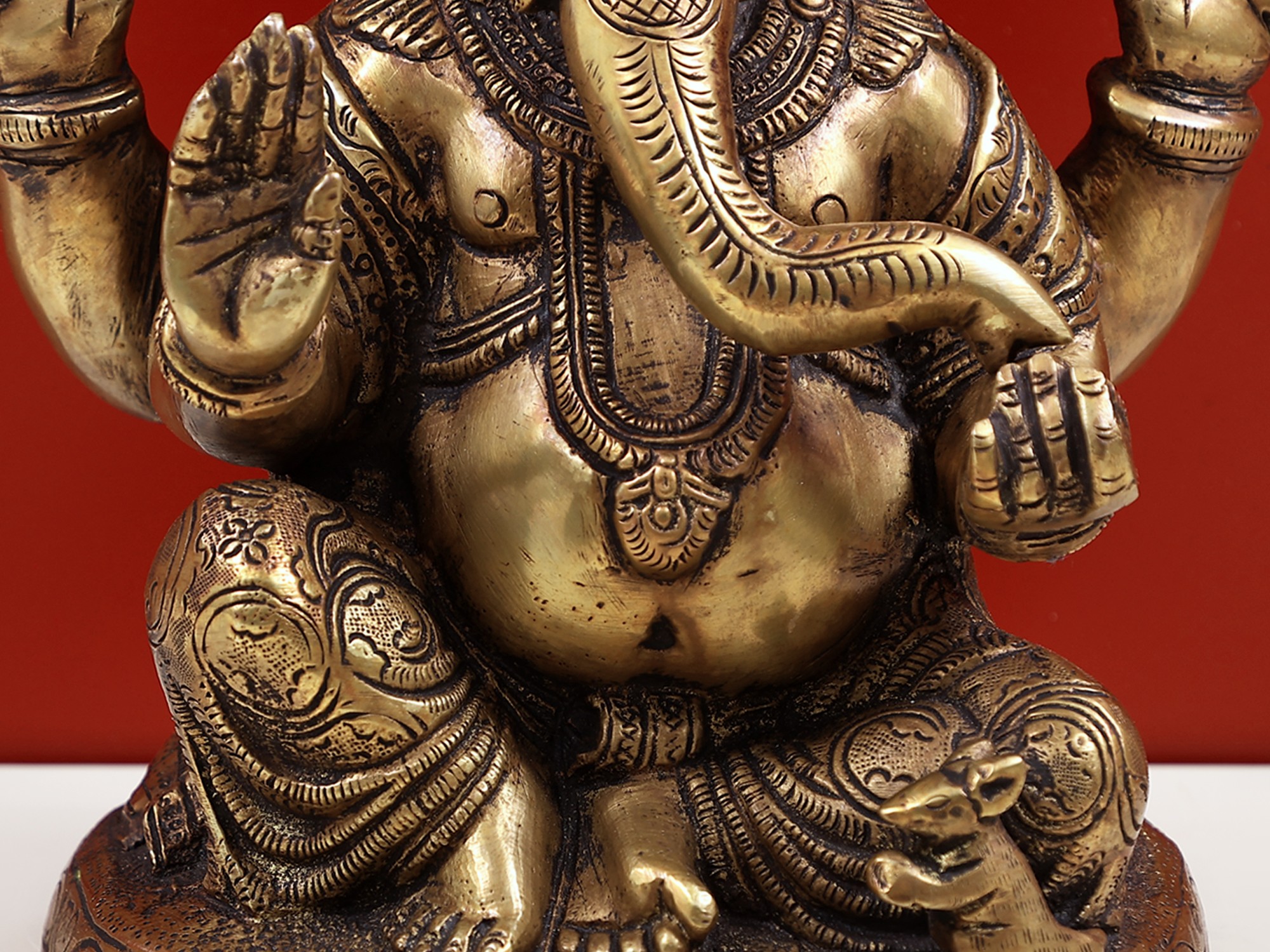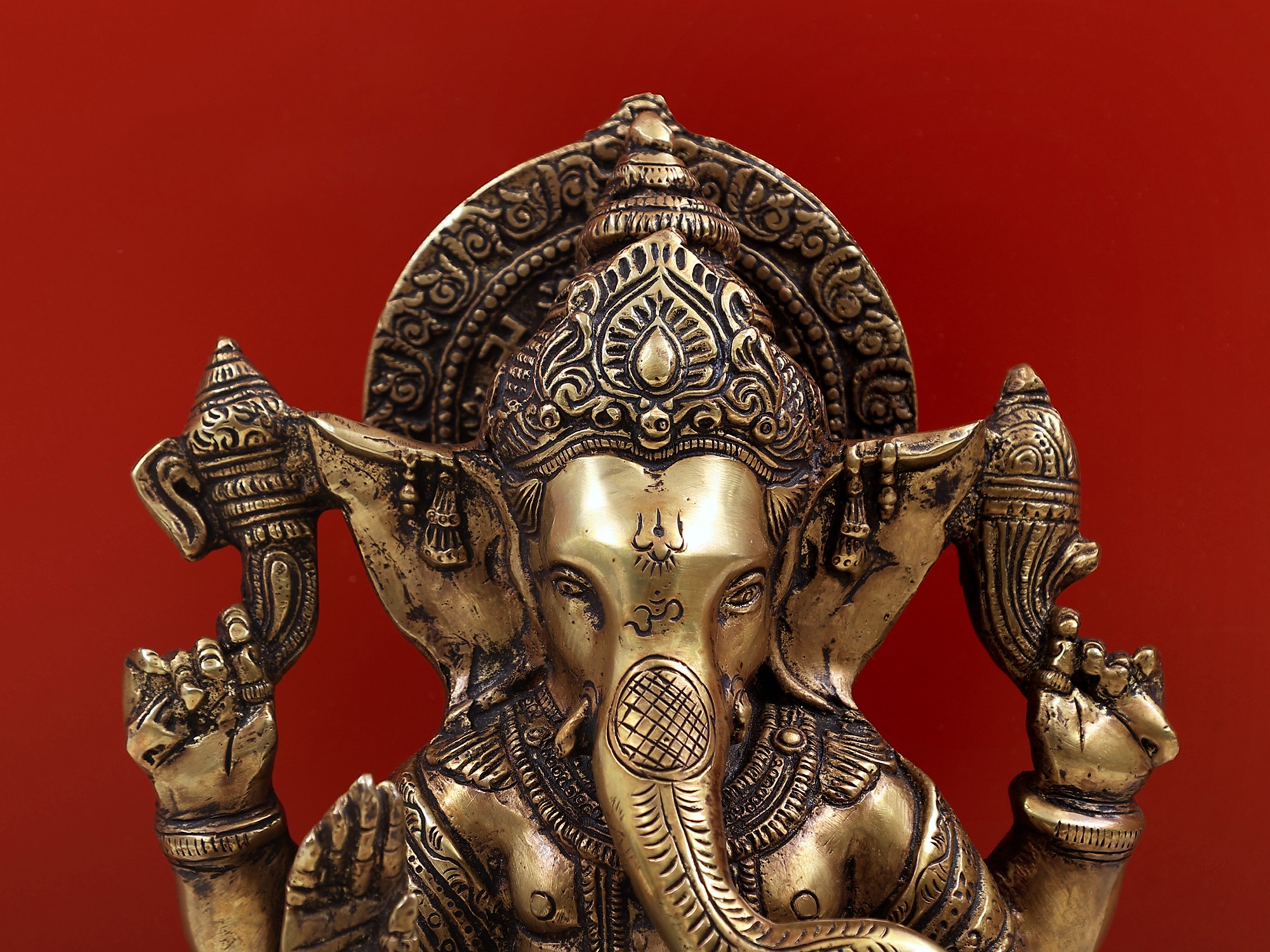 8" Lord Ganesha Brass Sculpture | Handmade Statues | Made in India