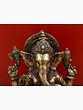 Lord Ganesha, the remover of obstacles”, the embodiment of divine grace and wisdom, exudes an enchanting aura. His upper hands hold the goad, symbolizing his power to remove obstacles, and the noose to bind negative influences. His lower right hand is poised in Abhaya Mudra”, assuring protection and fearlessness to his devotees. As He indulges in a “Modak”, his favourite sweet, his countenance radiates joy and contentment. Adorned in regal attire and jewels, he dons a majestic crown that befits his divine status. The trident (Trishul) mark on his forehead signifies his cosmic authority. This statue, carved in brass, is a portrayal of Ganesha’s benevolent presence, guiding and guarding with unwavering love.