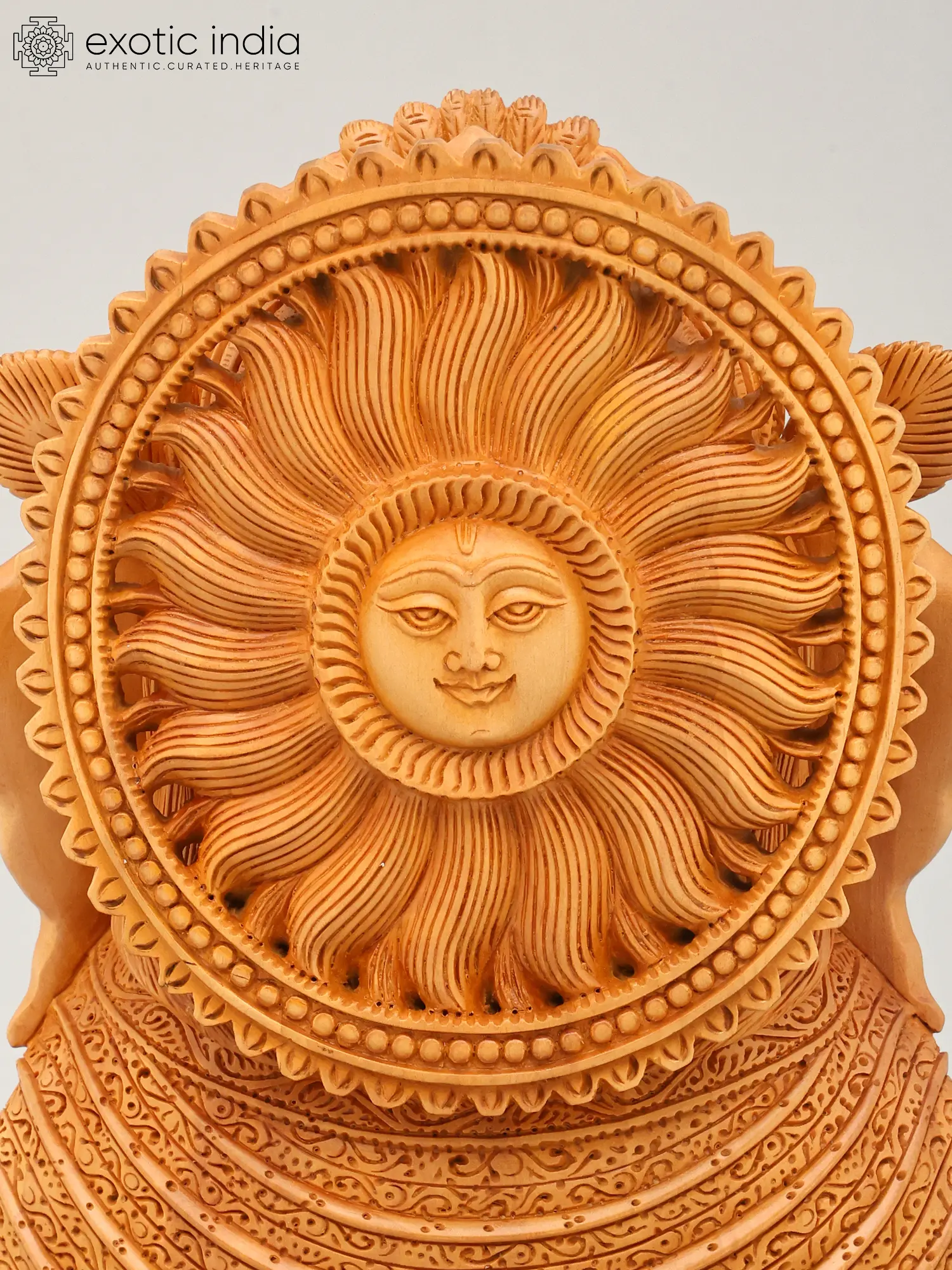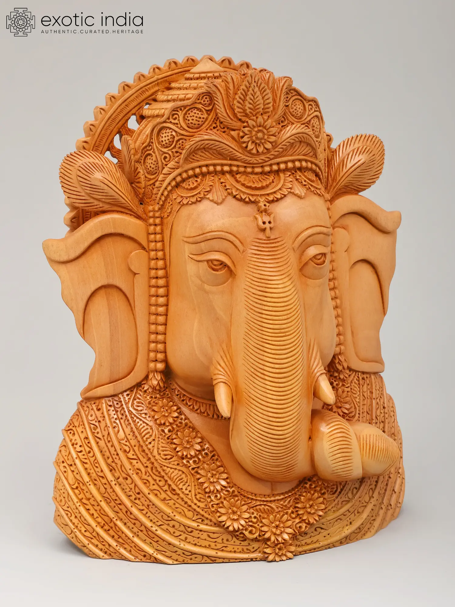 Each intricate detail is meticulously shaped by skilled artisans, transforming a humble block of wood into a masterpiece of devotional art. The natural grain of the wood is celebrated, enhancing the tactile and visual appeal of this hand-carved piece. The dedication to traditional woodworking techniques ensures a level of quality and authenticity that elevates this creation beyond mere decoration.
